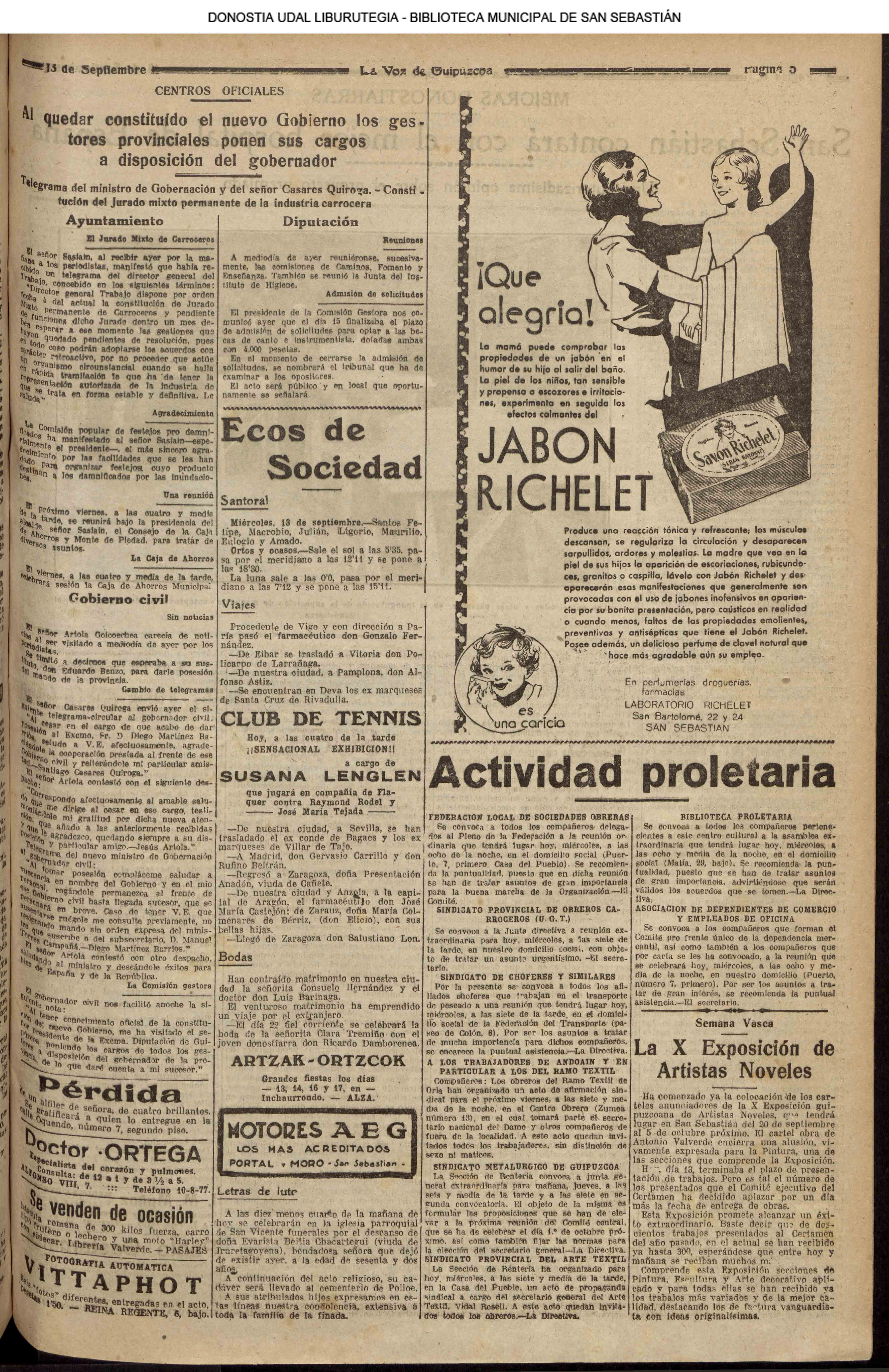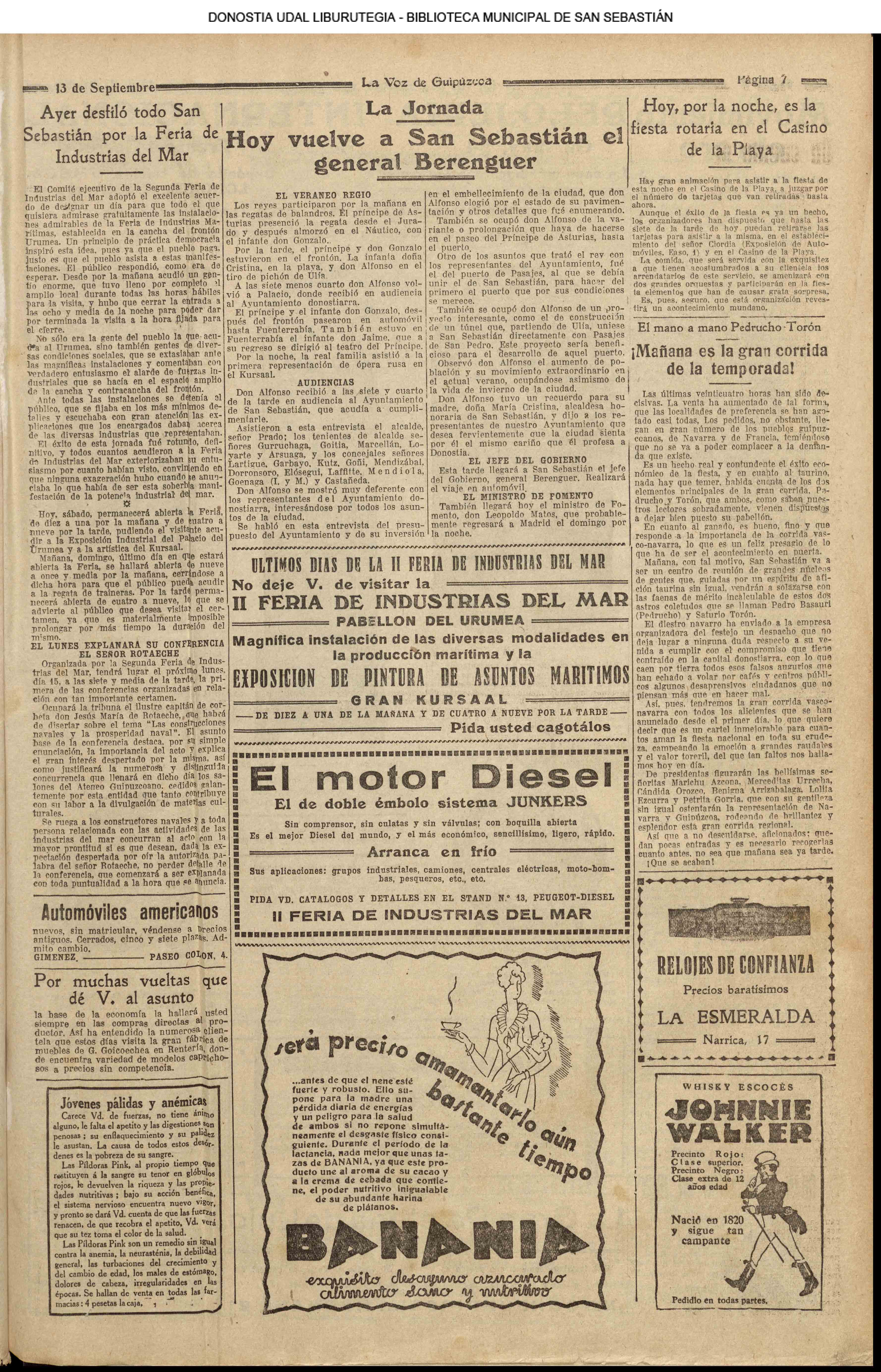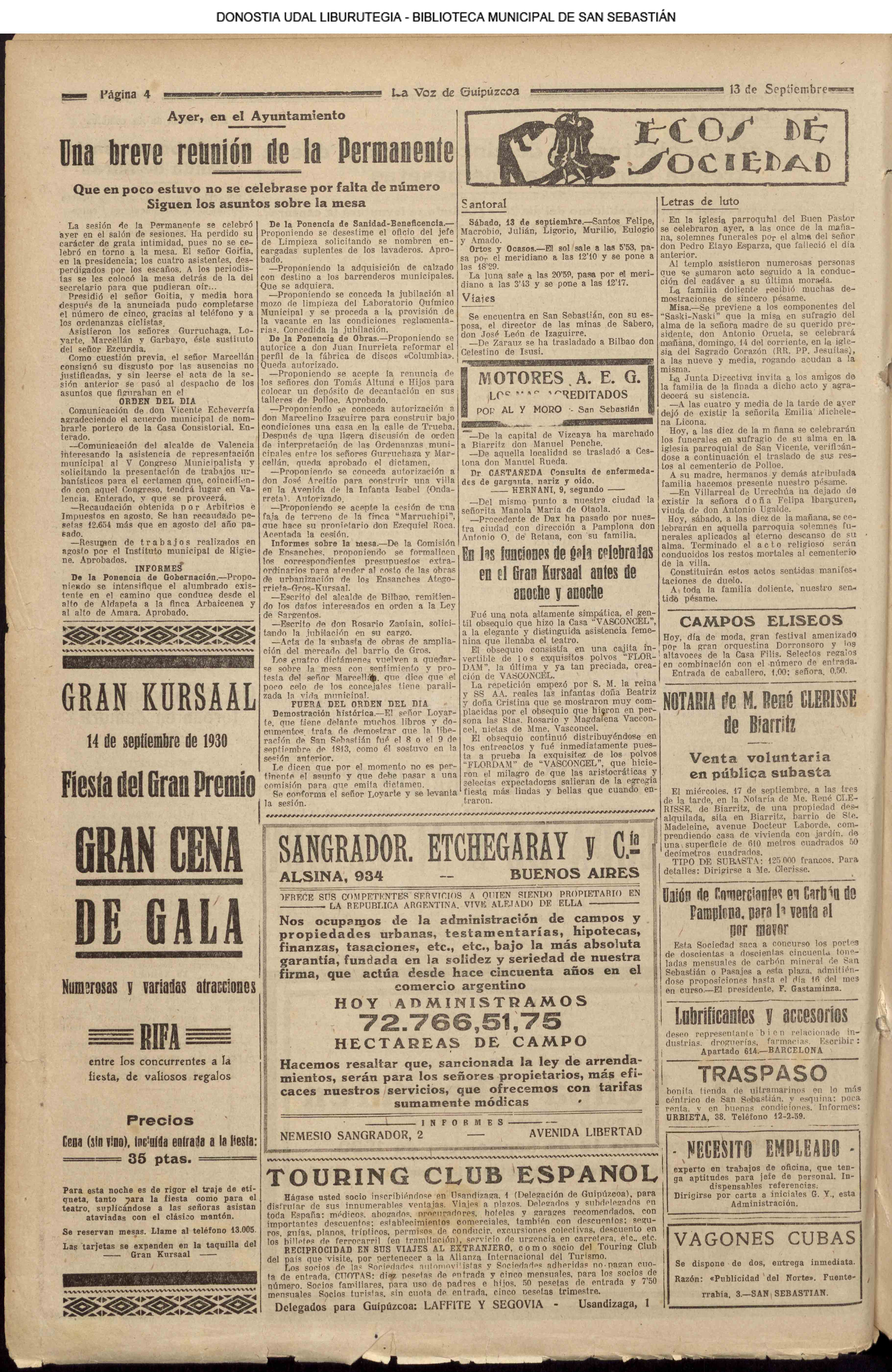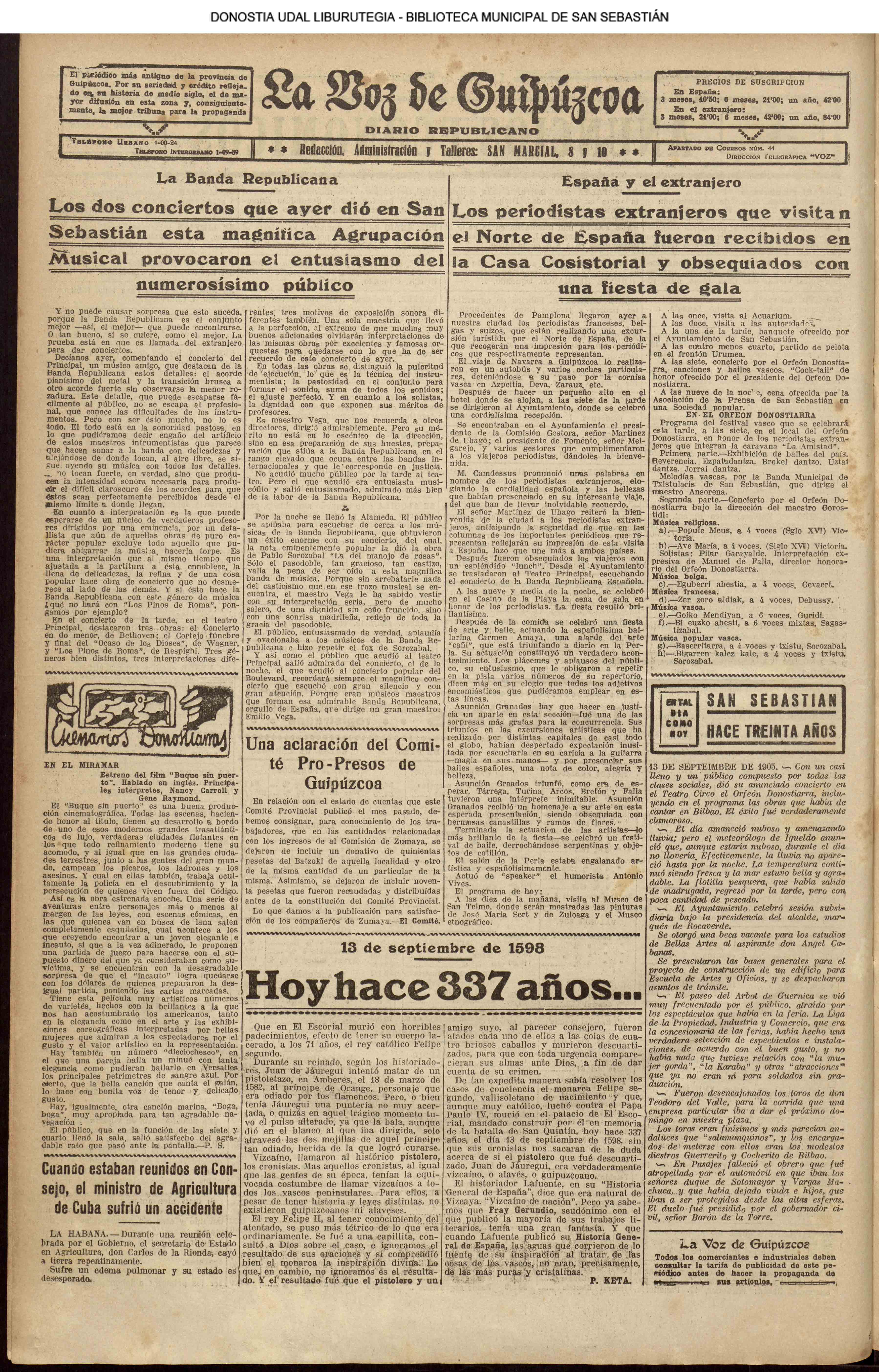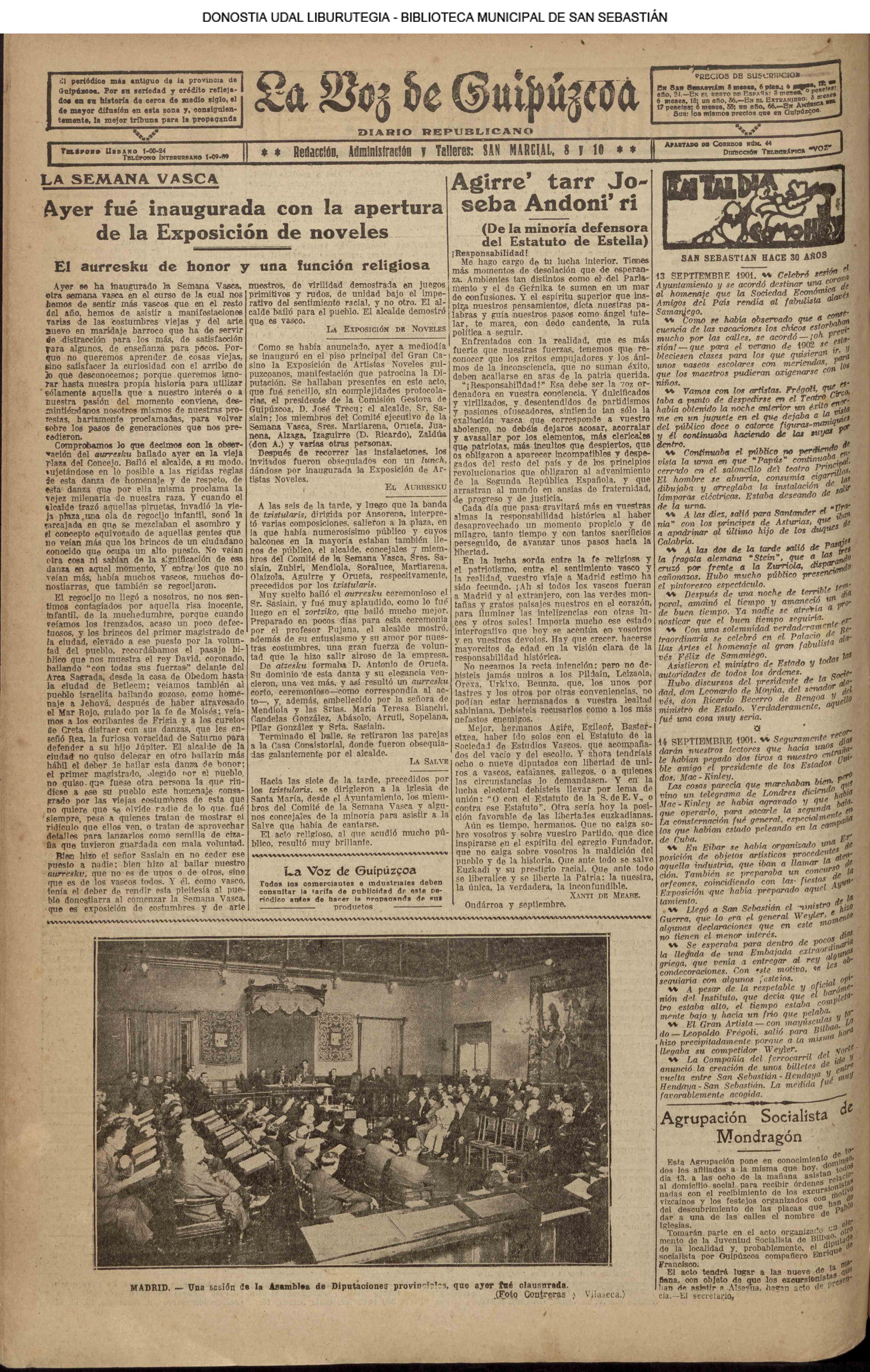 12 - septiembre![]() . | (1931) - LA VOZ DE GUIPUZCOA (CENTROS OFICIALES) SEMANA VASCA - INAUGURACIÓN