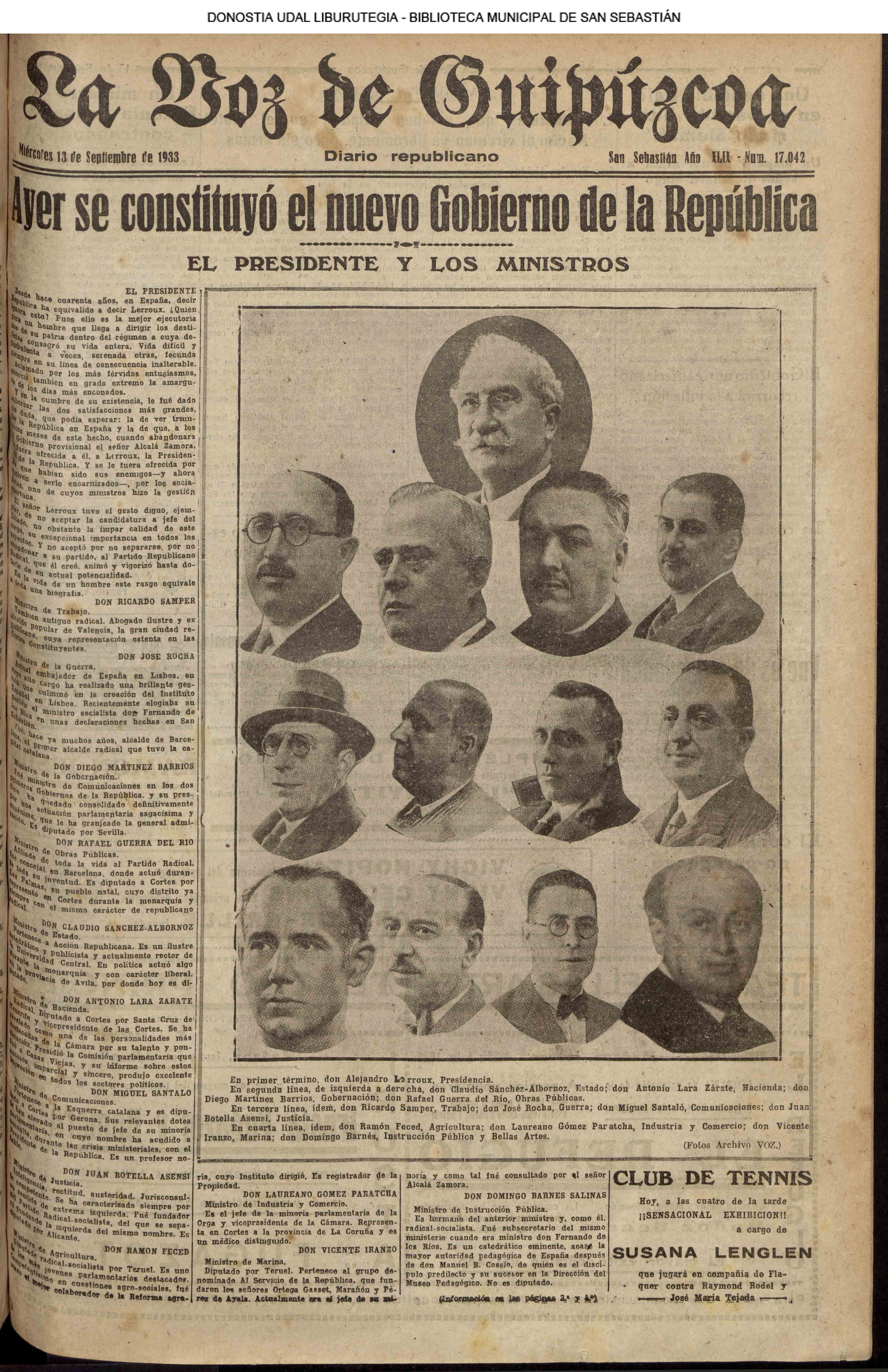(La Voz de Guipúzcoa)(El Pueblo Vasco)(El Día)(La Constancia) (La voz de Guipuzcoa)(El Pueblo Vasco)(El Día)(La Constancia) ++++++++++++++++++++++++++++++++++++++++++++++ SE CONSTITUYÓ EL NUEVO GOBIERNO DE LA REPÚBLICA