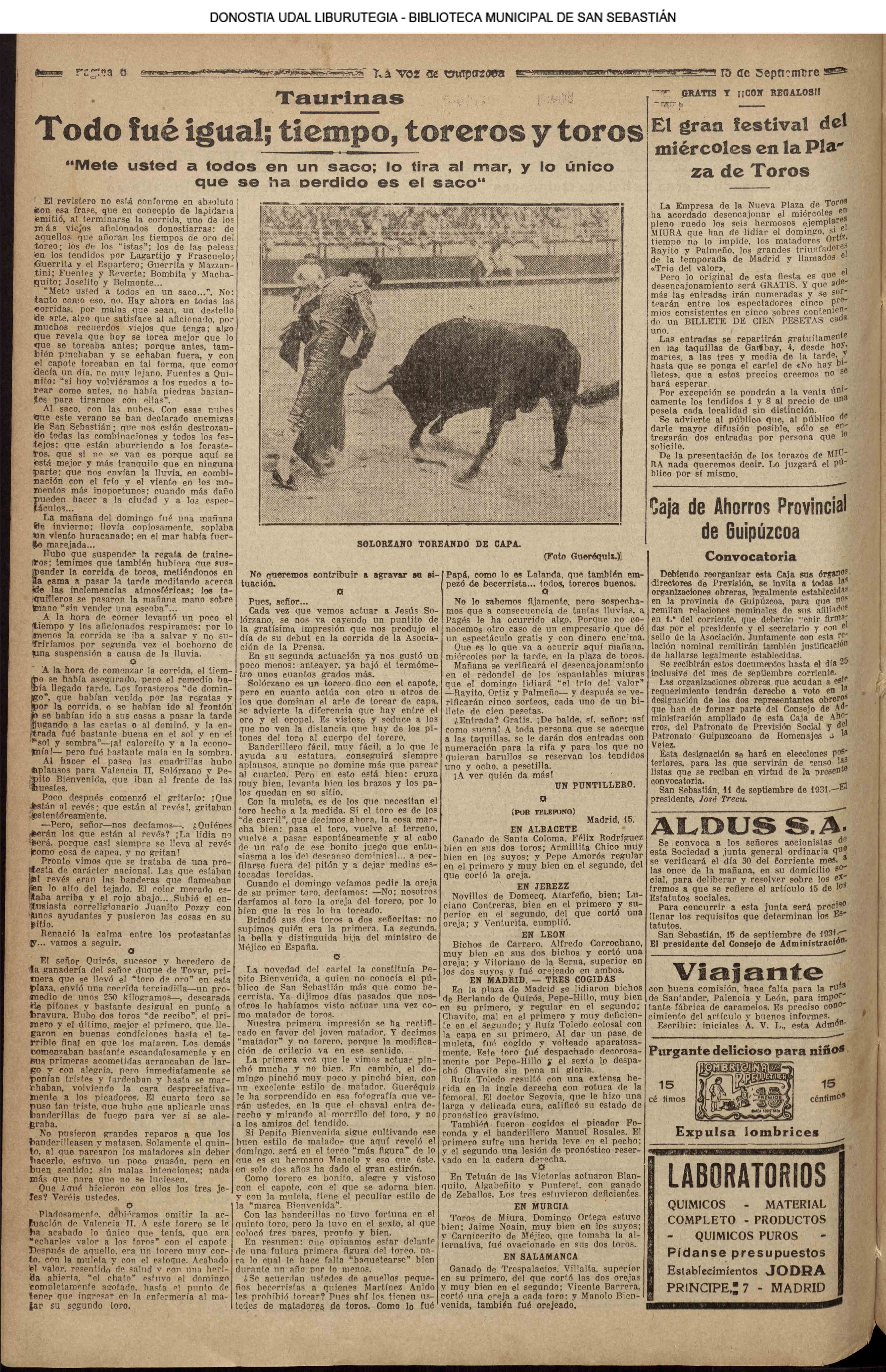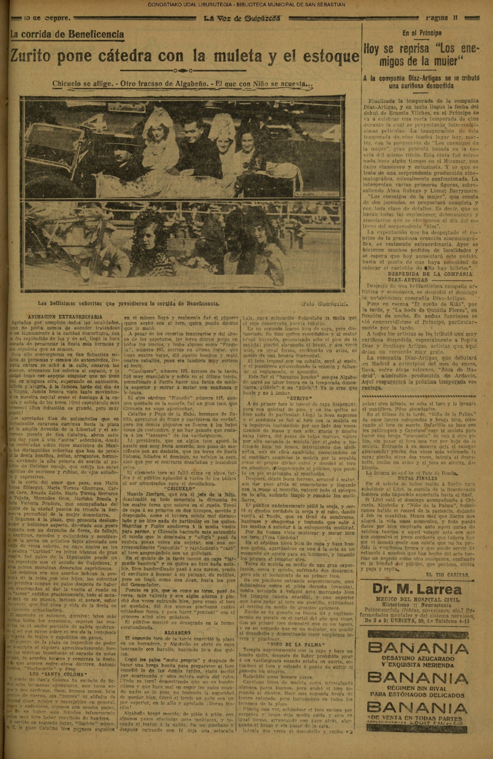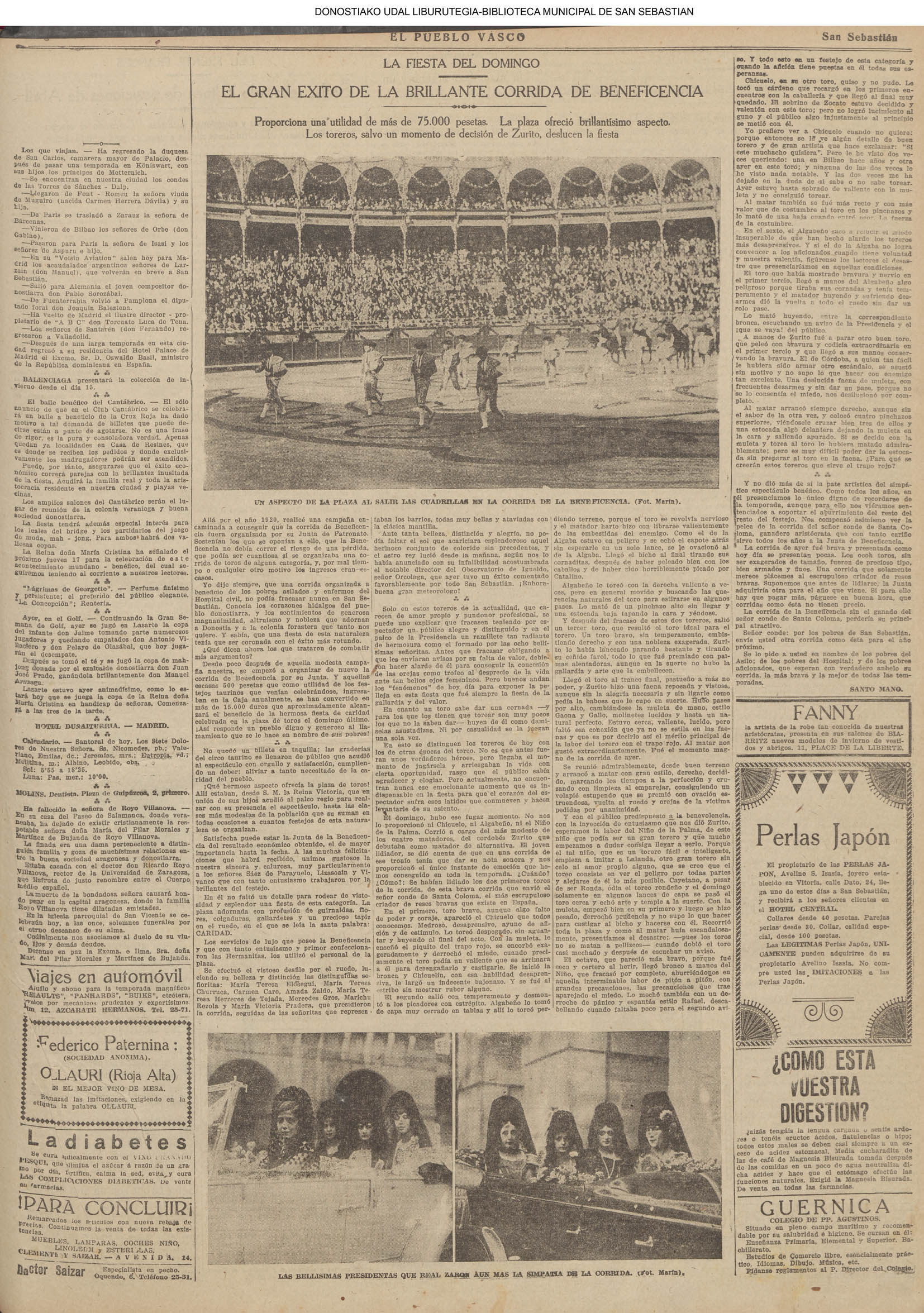 (1925) LA FIESTA DEL DOMINGO - EL GRAN ÉXITO DE LA BRILLANTE CORRIDA DE BENEFICENCIA (La Voz de Guipúzcoa)(El Pueblo Vasco)(El Pais Vasco))(La Constancia)