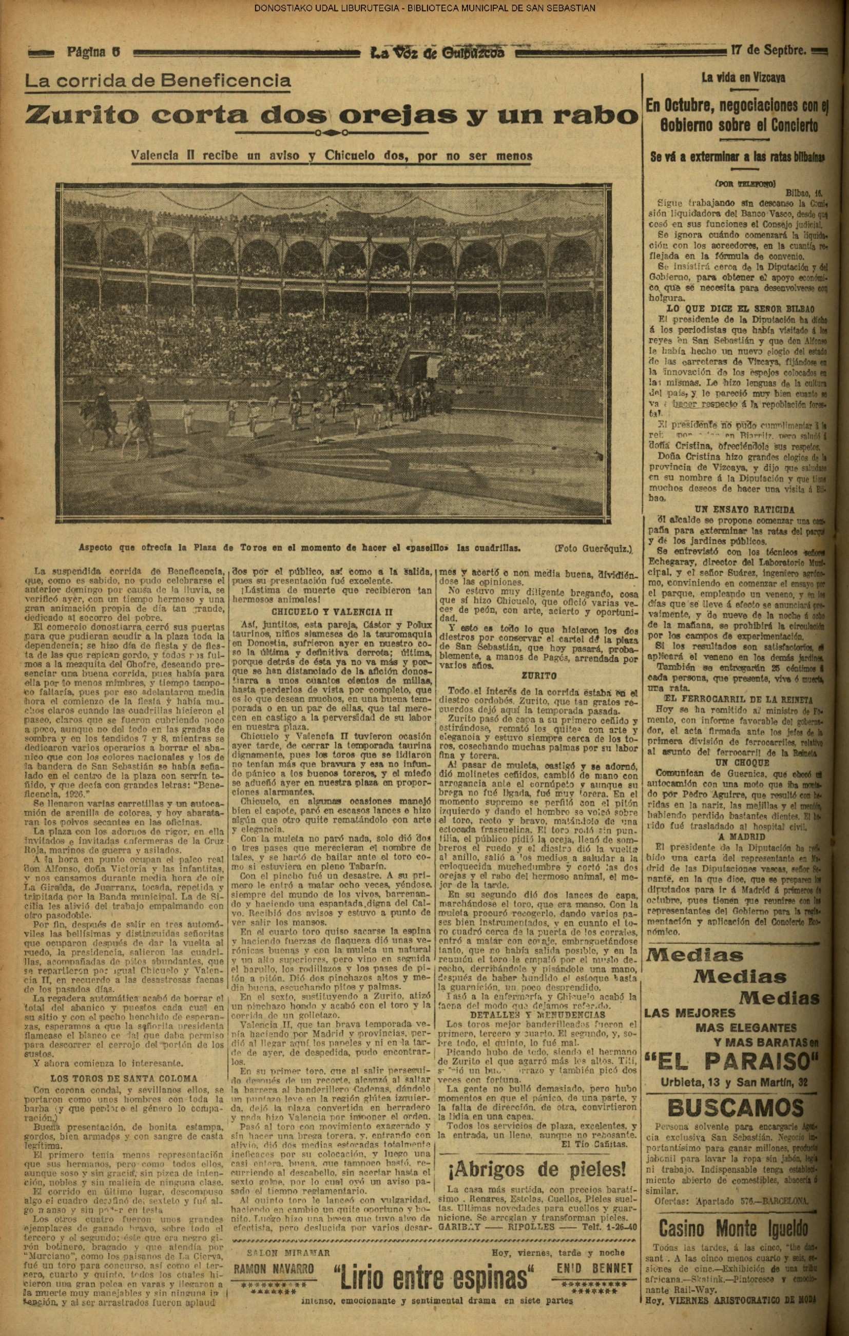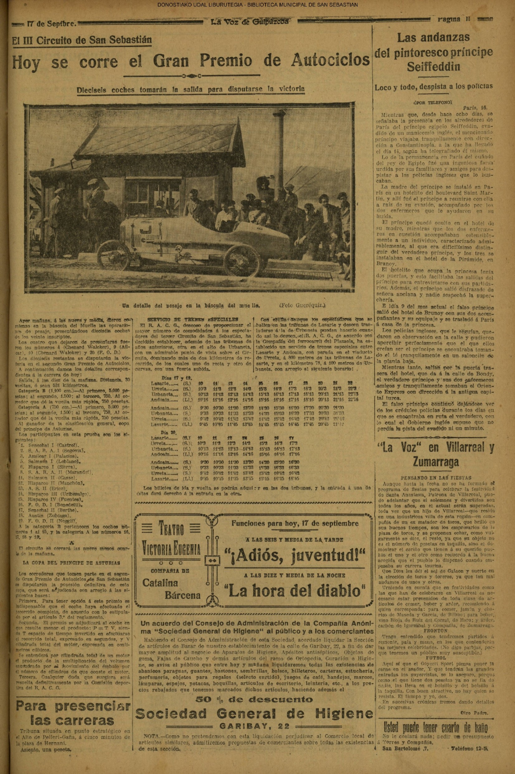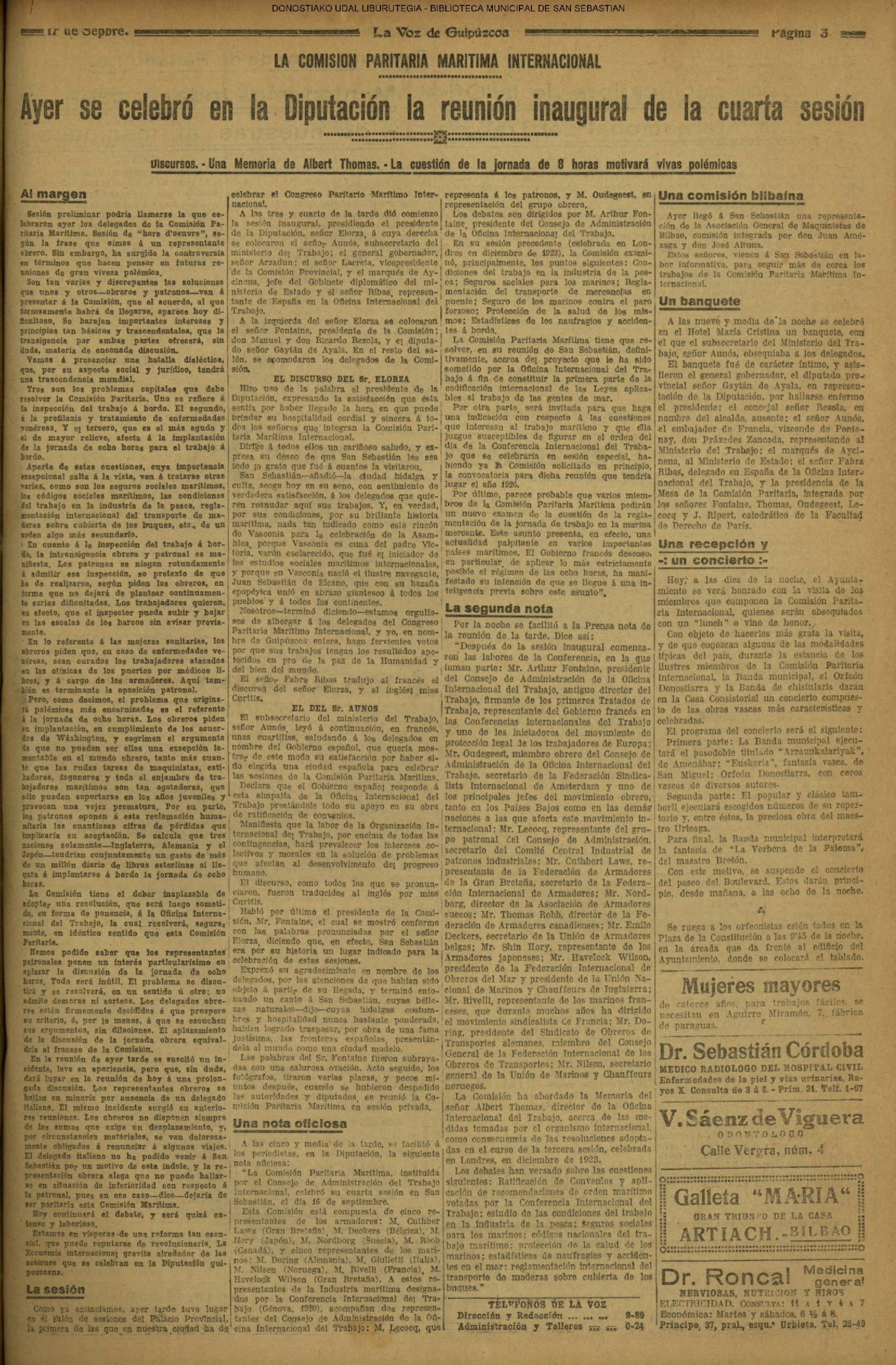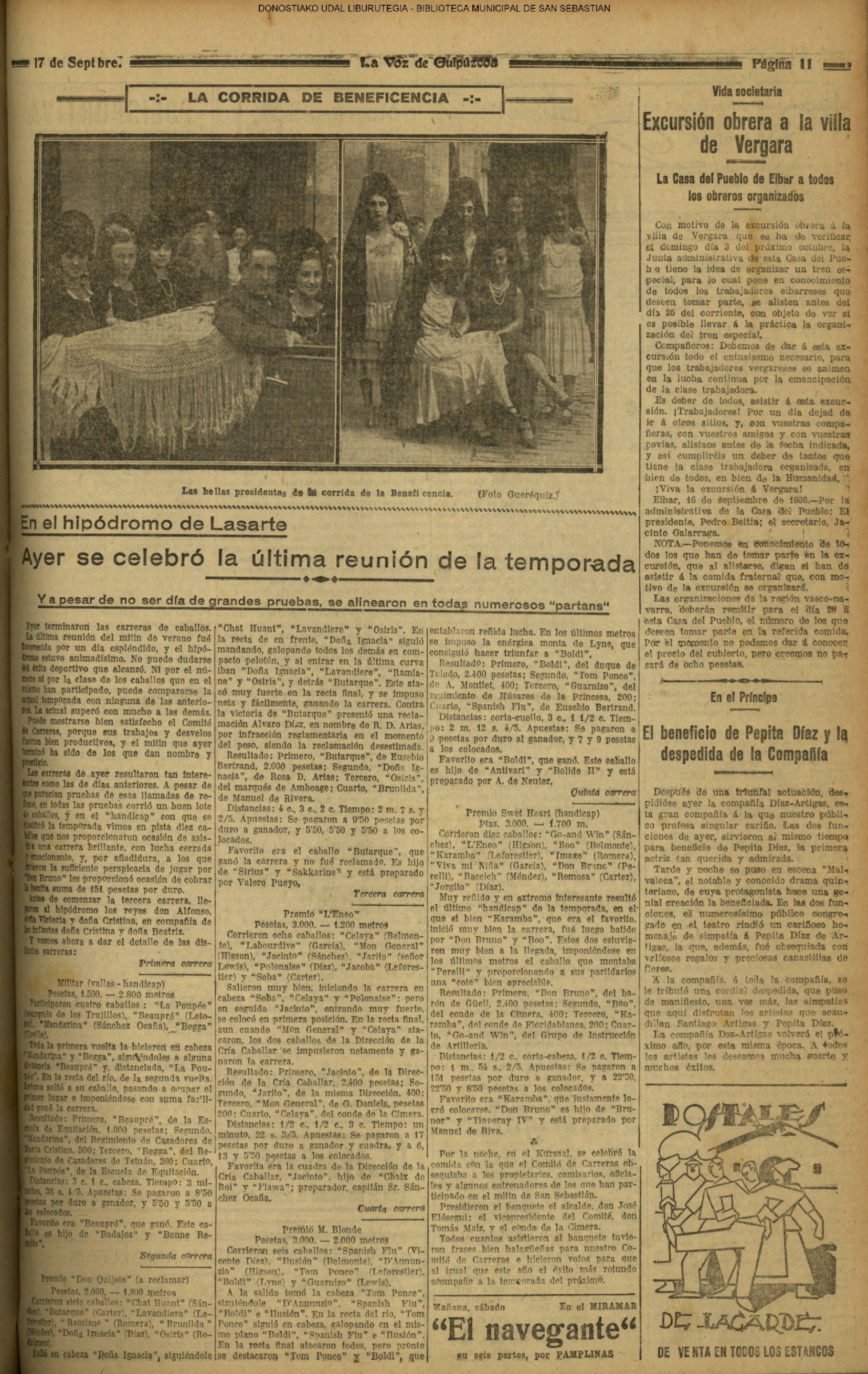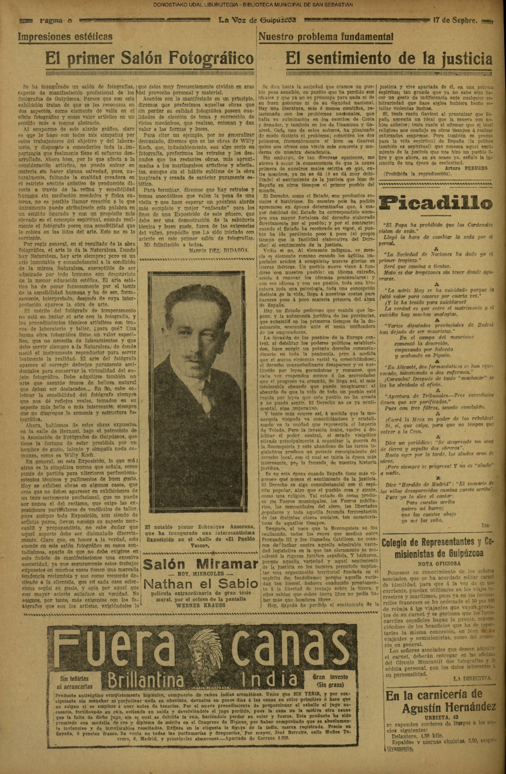 16 - septiembre![]() . | (1931) - LA VOZ DE GUIPUZCOA (CENTROS OFICIALES: Actuación gubernativa por los incidentes de la Plaza de la Constitución) # PLENO MUNICIPAL .- La represión a un guardia da lugar a un largo debate, en el que se adoptan medidas enérgicas (La voz de Guipuzcoa/cont)(El Pueblo Vasco/cont)( # V SEMANA VASCA .- La segunda eliminatoria de "aizkolaris" y la representación de la pastoral "Maitena" (La Voz de Guipúzcoa)(El Pueblo Vasco)( # FIESTAS EN INTXAURRONDO, organizadas por la Sociedad "Artzak Ortzeok" (La voz de Guipuzcoa)(El Pueblo Vasco)( ++++++++++++++++++++++++++++++++++++++++++++++ # VISITA A LOS CUARTELES DE LOYOLA DEL PRESIDENTE DE LA REPÚBLICA (La voz de Guipuzcoa)(El Pueblo Vasco)(El Día)(La Constancia) # El personal de la Fábrica de Tabacos entrega un presente al Jefe del Estado (La voz de Guipuzcoa)(El Pueblo Vasco)(El Día)(La Constancia) # La visita de S.E. el presidente de la República a la Fundación Ostolaza (Deva) (La voz de Guipuzcoa)(El Pueblo Vasco)(El Día)(La Constancia) ++++++++++++++++++++++++++++++++++++++++++++++ (La voz de Guipuzcoa)(El Pueblo Vasco)(El Día)(La Constancia) ++++++++++++++++++++++++++++++++++++++++++++++ # CONSEJO GENERAL DE COLEGIOS MÉDICOS DE ESPAÑA (La voz de Guipuzcoa)(El Pueblo Vasco)(El Día)(La Constancia) # ASAMBLEA DE MÉDICOS FERROVIARIOS (La voz de Guipuzcoa)(El Pueblo Vasco)(El Día)(La Constancia) # REGATAS DE TRAINERAS .- Orio repite su brillante triunfo y se adjudica el primer premio con la Bandera de Honor. (La voz de Guipuzcoa/cont)( (La voz de Guipuzcoa)( # FUTBOL - ALAVÉS (0-2) DONOSTIA @ (La voz de Guipuzcoa)# FIESTA DE LAS MUÑECAS, EN EL KURSAAL (La voz de Guipuzcoa) ++++++++++++++++++++++++++++++++++++++++++++++ (La voz de Guipuzcoa)(El Pueblo Vasco)(El Día)(La Constancia) |