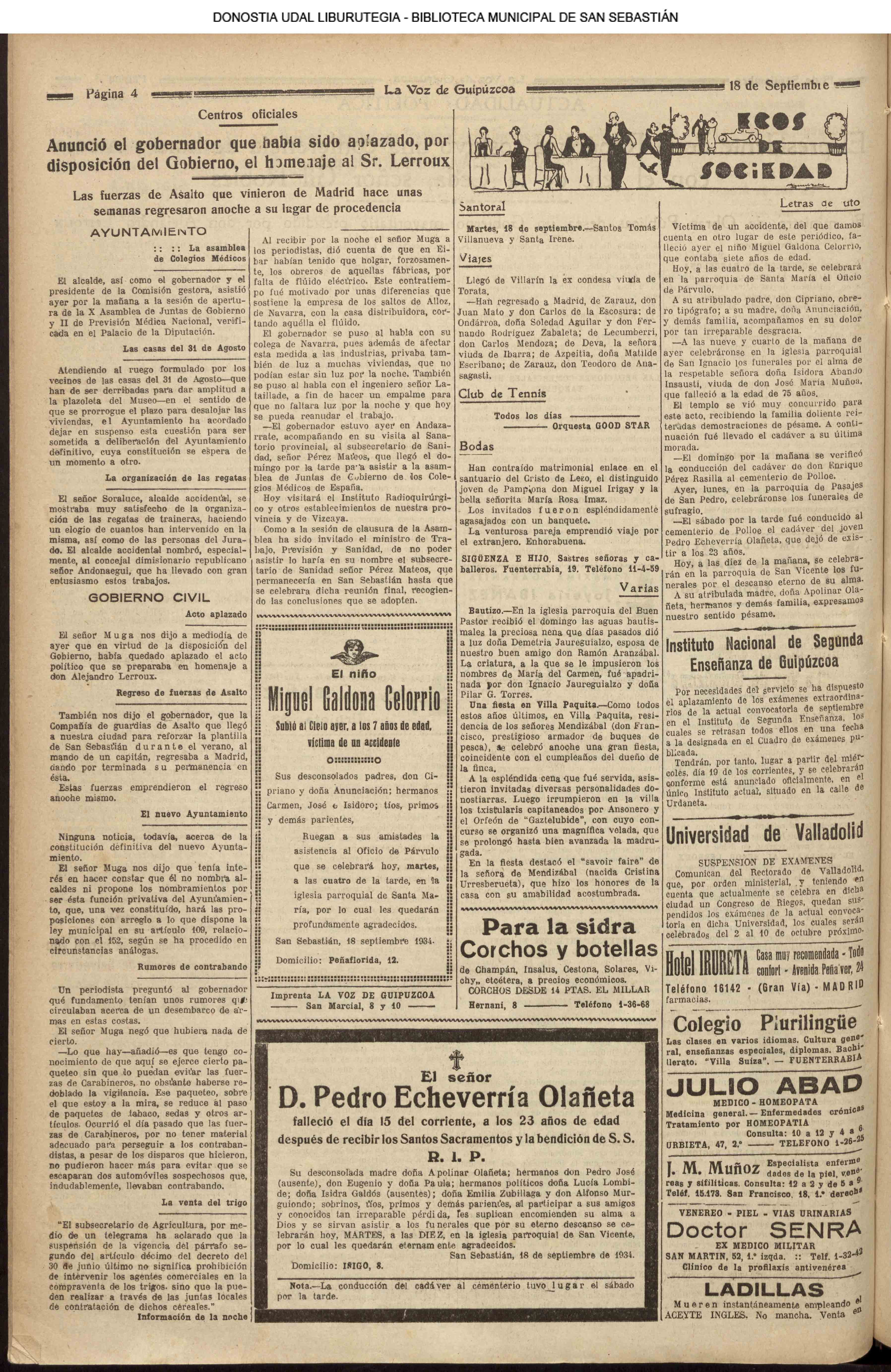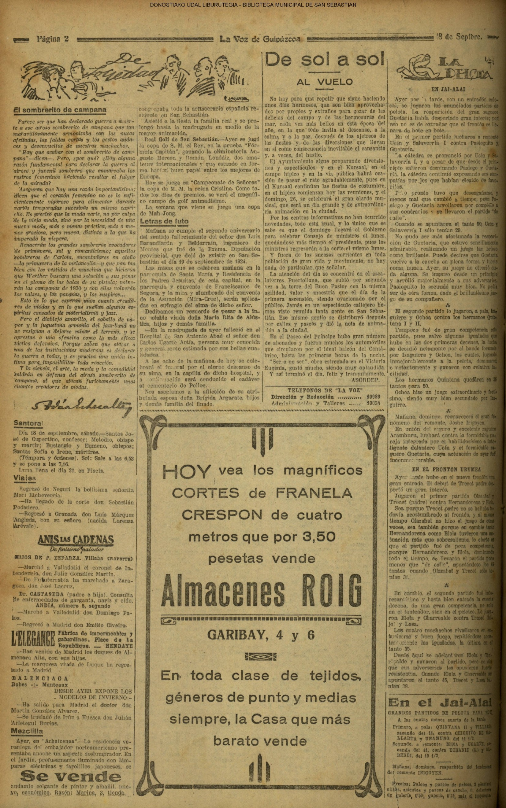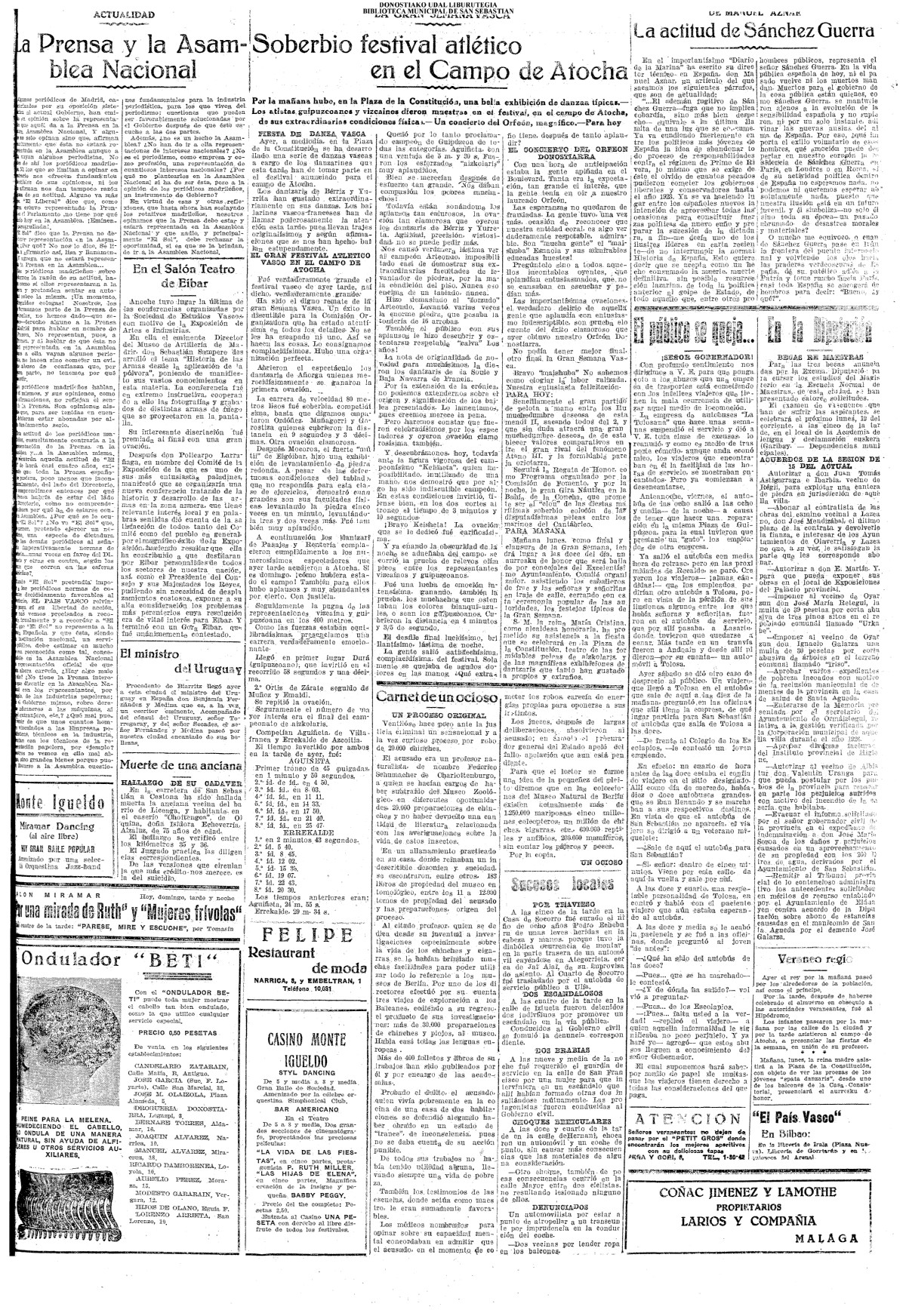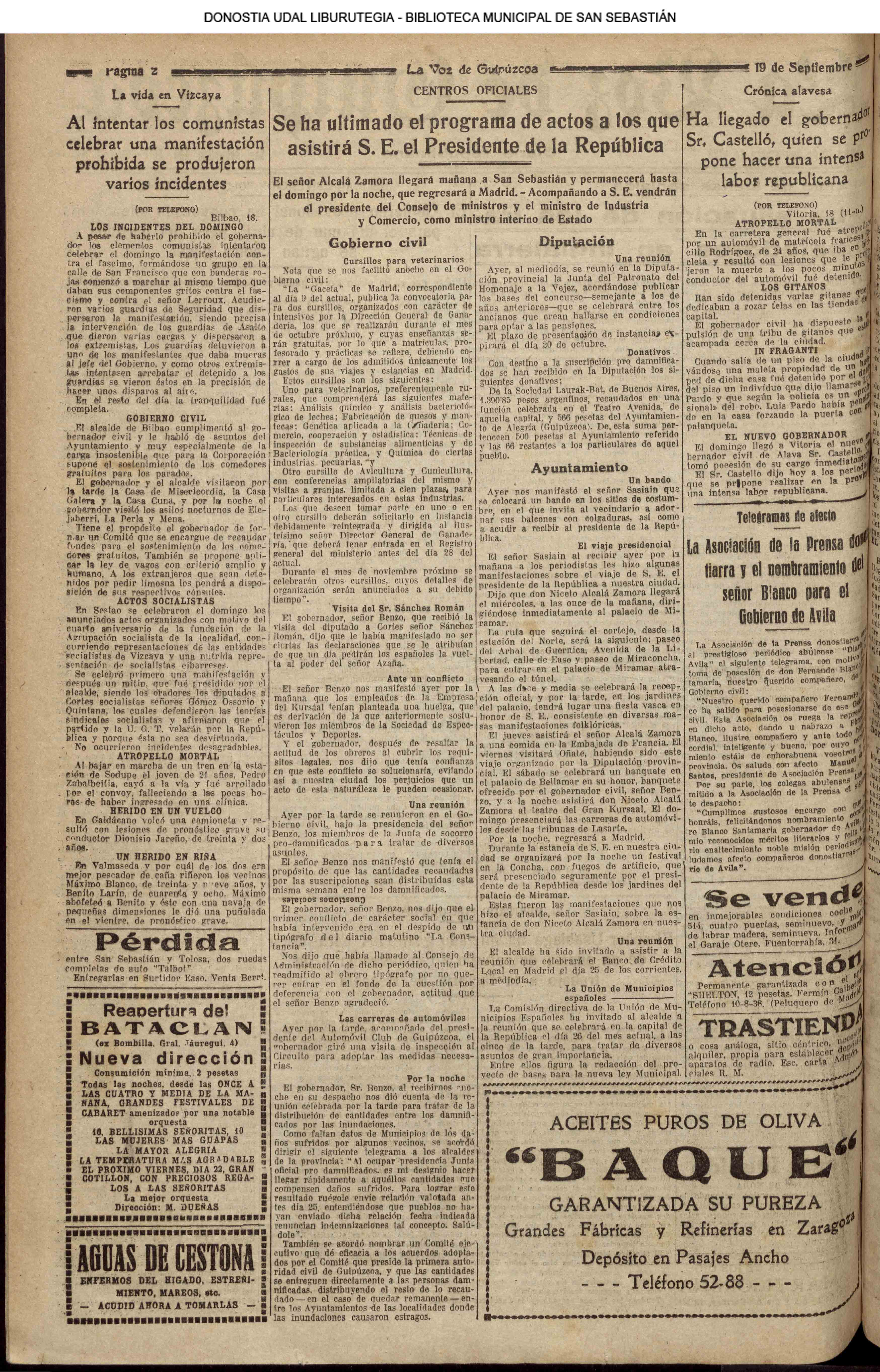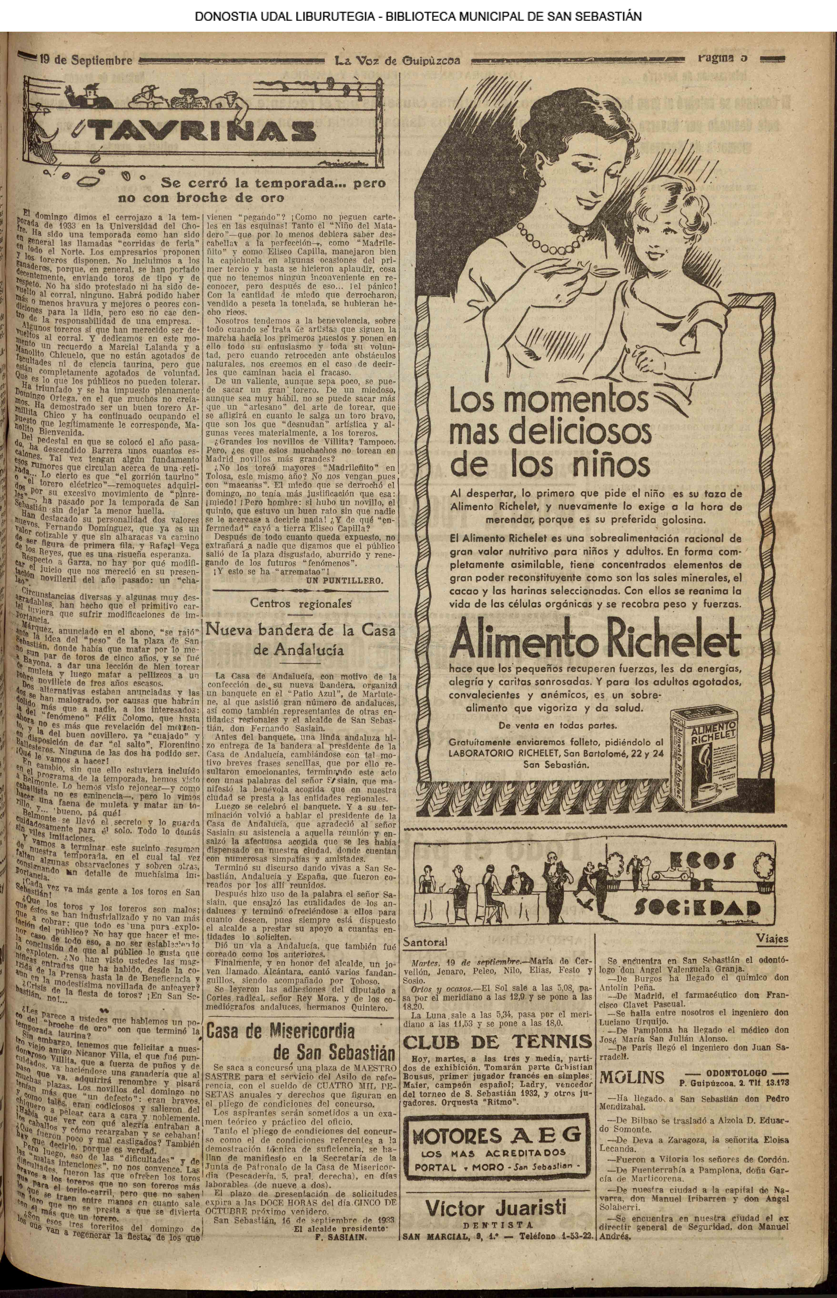 17 - septiembre![]() . | (1931) - LA VOZ DE GUIPUZCOA (CENTROS OFICIALES) # SEMANA VASCA.- Brillante concurso de "txistularis" (La voz de Guipuzcoa/cont)(El Pueblo Vasco)(El Día)(La Constancia) ++++++++++++++++++++++++++++++++++++++++++++++ (1932) - LA VOZ DE GUIPUZCOA (CENTROS OFICIALES) Marchó de Guipuzcoa el Presidente de la República (La Voz de Guipúzcoa/cont/cont)(El Pueblo Vasco)(El Día)(La Constancia) (La voz de Guipuzcoa)(El Pueblo Vasco)(El Día)(La Constancia) ++++++++++++++++++++++++++++++++++++++++++++++ # TAURINAS.- Se cerró la temporada... pero no con broche de oro. (La voz de Guipuzcoa)(El Pueblo Vasco)(El Día)(La Constancia) ++++++++++++++++++++++++++++++++++++++++++++++ (La voz de Guipuzcoa)(El Pueblo Vasco)(El Día)(La Constancia) ++++++++++++++++++++++++++++++++++++++++++++++ (1935) - LA VOZ DE GUIPUZCOA (CENTROS OFICIALES) (La voz de Guipuzcoa)(El Pueblo Vasco)(El Día)(La Constancia) |