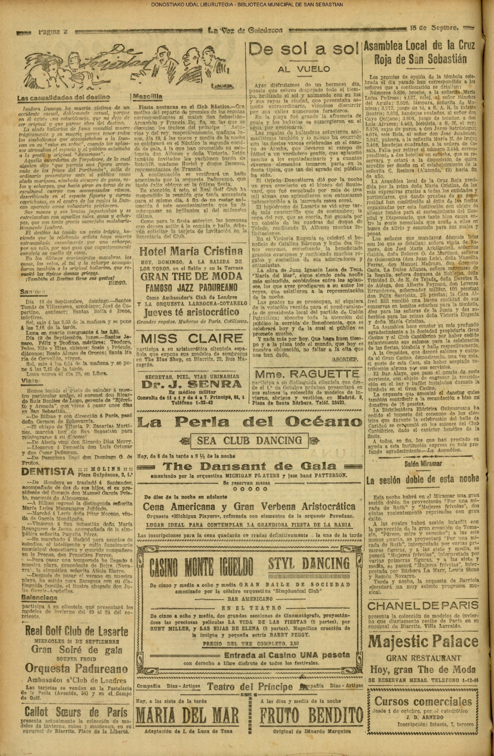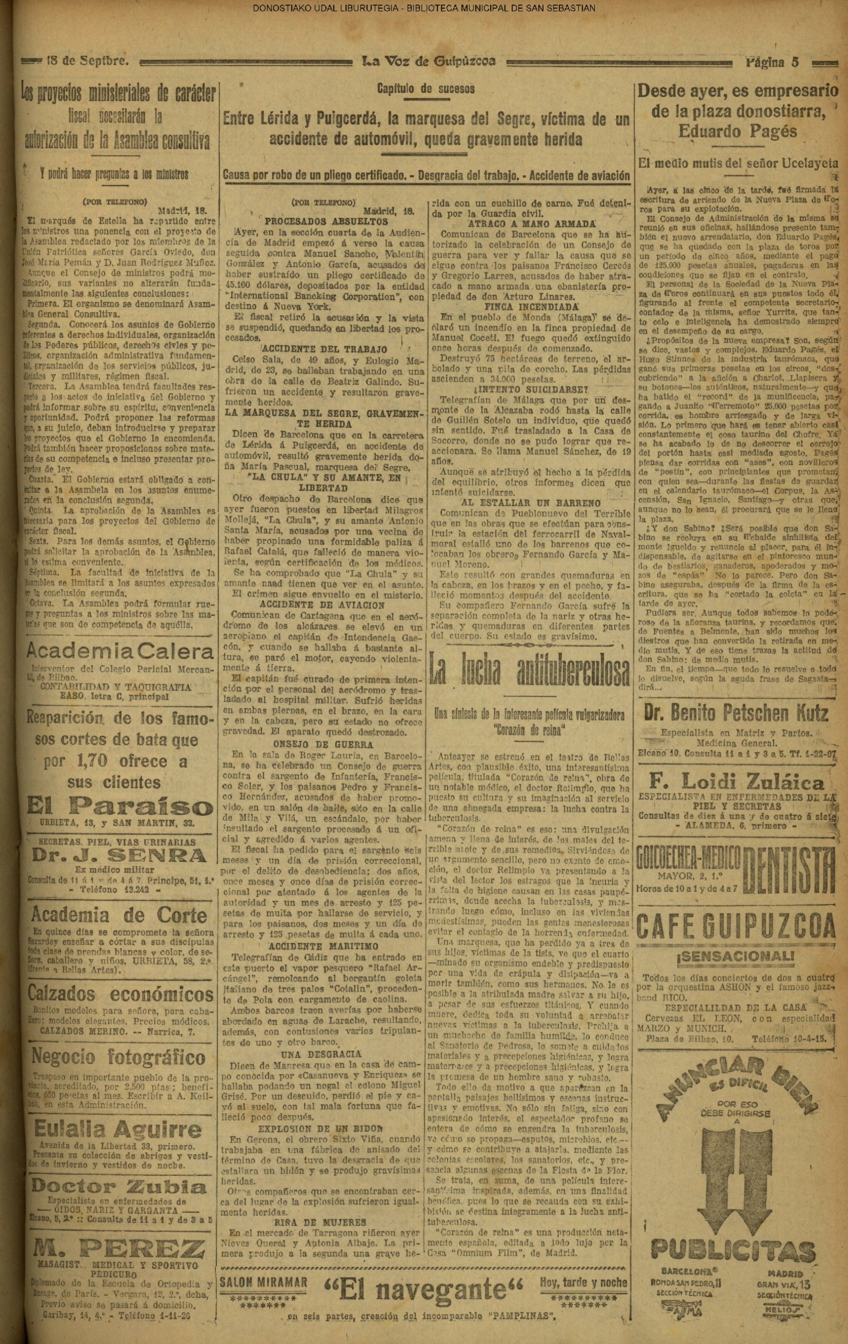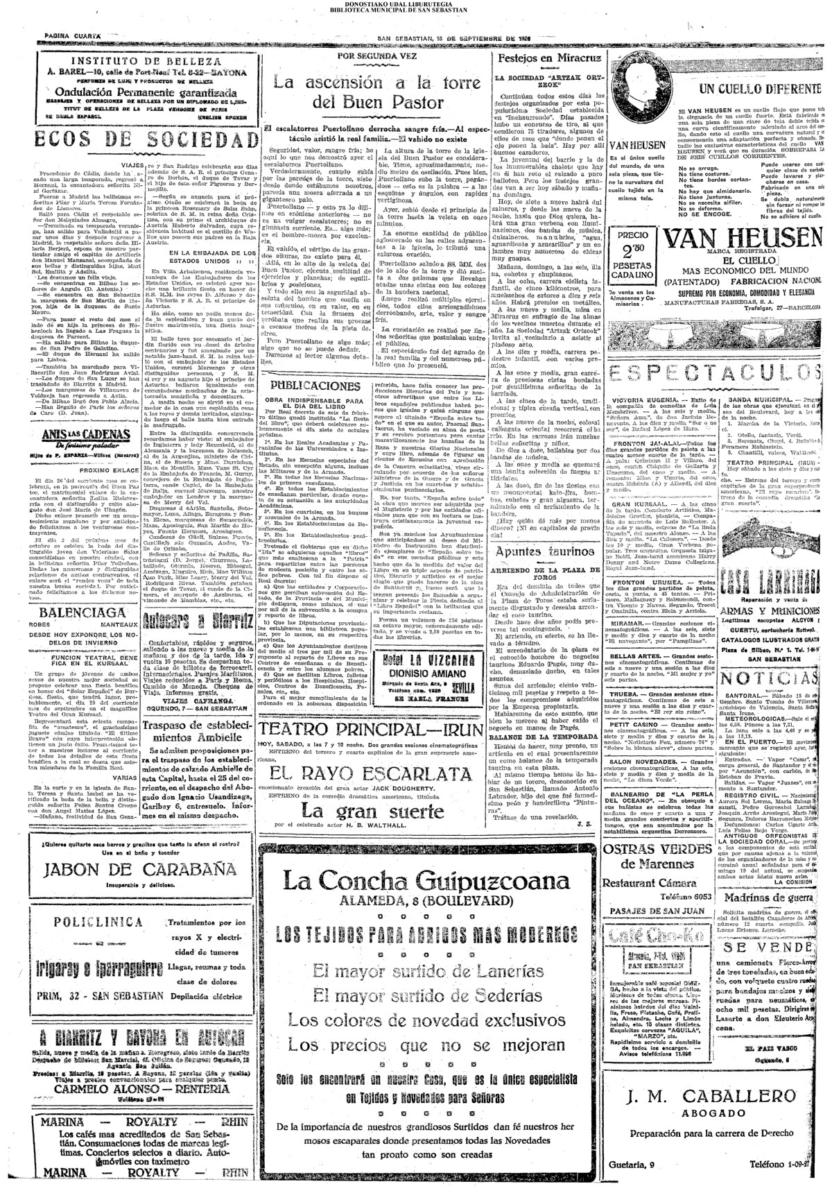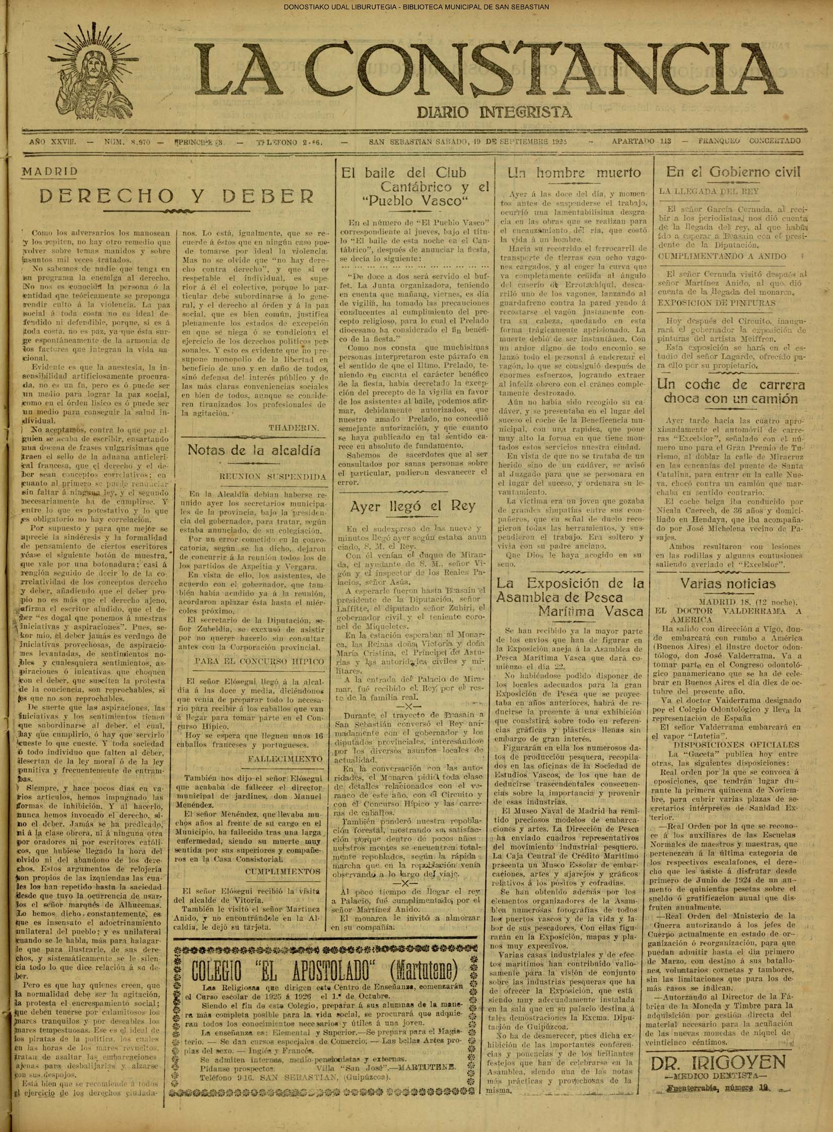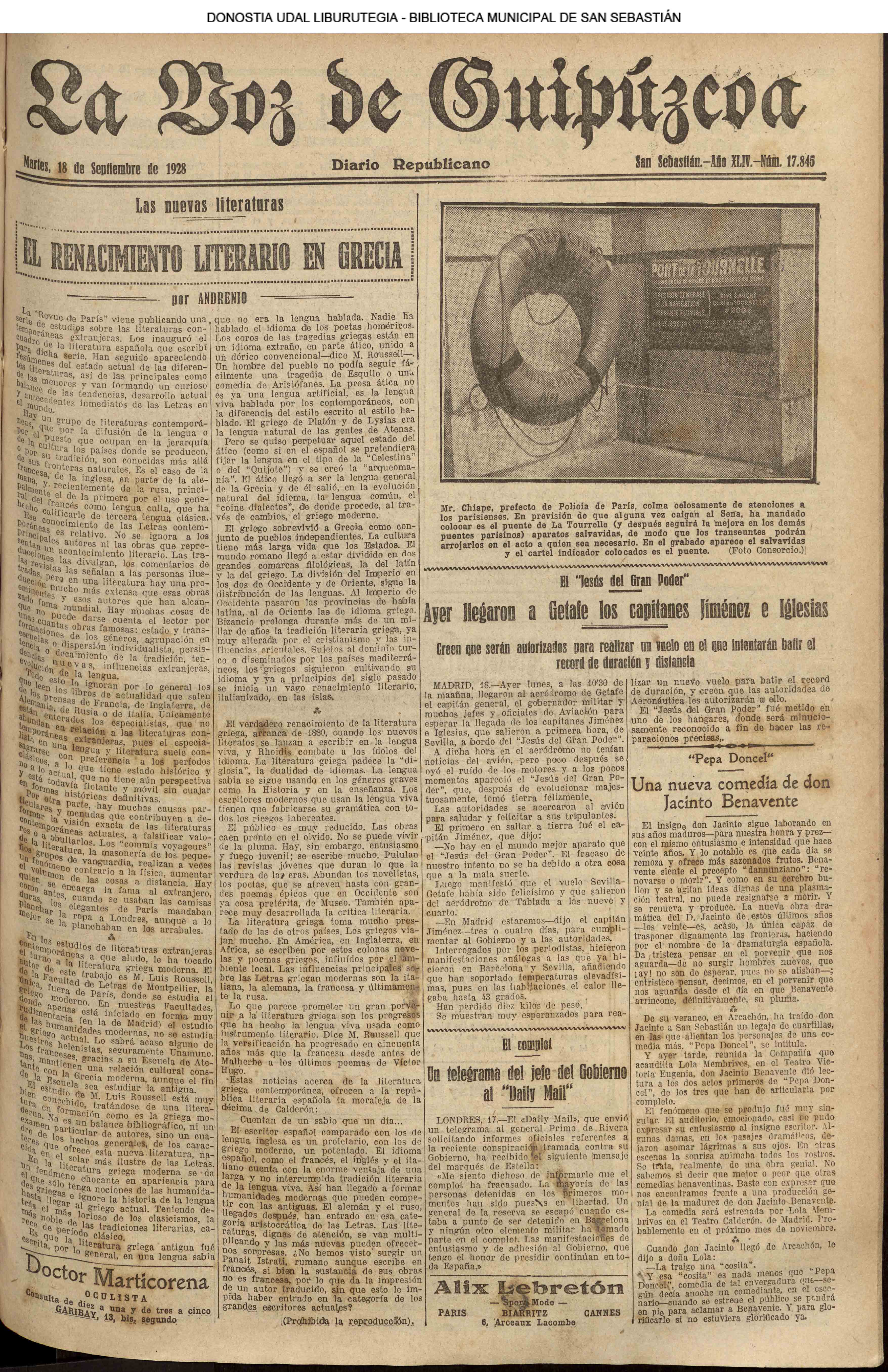 17 - septiembre![]() . | (1931) - LA VOZ DE GUIPUZCOA (CENTROS OFICIALES) # SEMANA VASCA.- Brillante concurso de "txistularis" (La voz de Guipuzcoa/cont)(El Pueblo Vasco)(El Día)(La Constancia) ++++++++++++++++++++++++++++++++++++++++++++++ (1932) - LA VOZ DE GUIPUZCOA (CENTROS OFICIALES) Marchó de Guipuzcoa el Presidente de la República (La Voz de Guipúzcoa/cont/cont)(El Pueblo Vasco)(El Día)(La Constancia) (La voz de Guipuzcoa)(El Pueblo Vasco)(El Día)(La Constancia) ++++++++++++++++++++++++++++++++++++++++++++++ # TAURINAS.- Se cerró la temporada... pero no con broche de oro. (La voz de Guipuzcoa)(El Pueblo Vasco)(El Día)(La Constancia) ++++++++++++++++++++++++++++++++++++++++++++++ (La voz de Guipuzcoa)(El Pueblo Vasco)(El Día)(La Constancia) ++++++++++++++++++++++++++++++++++++++++++++++ (1935) - LA VOZ DE GUIPUZCOA (CENTROS OFICIALES) (La voz de Guipuzcoa)(El Pueblo Vasco)(El Día)(La Constancia) |
