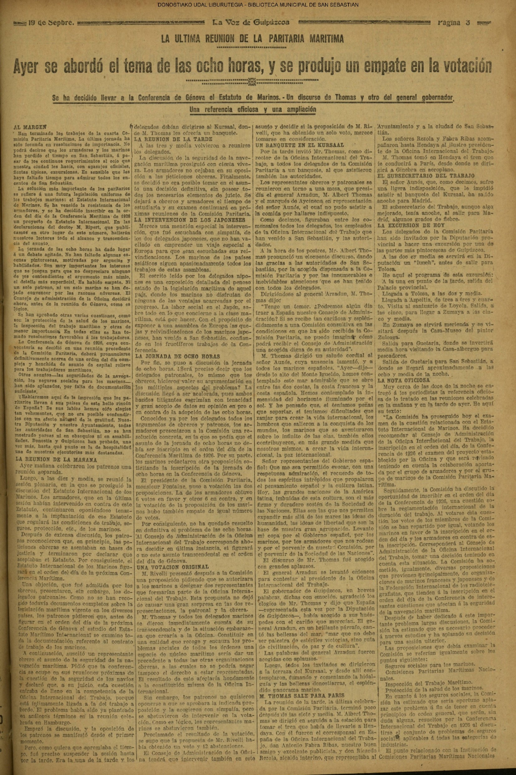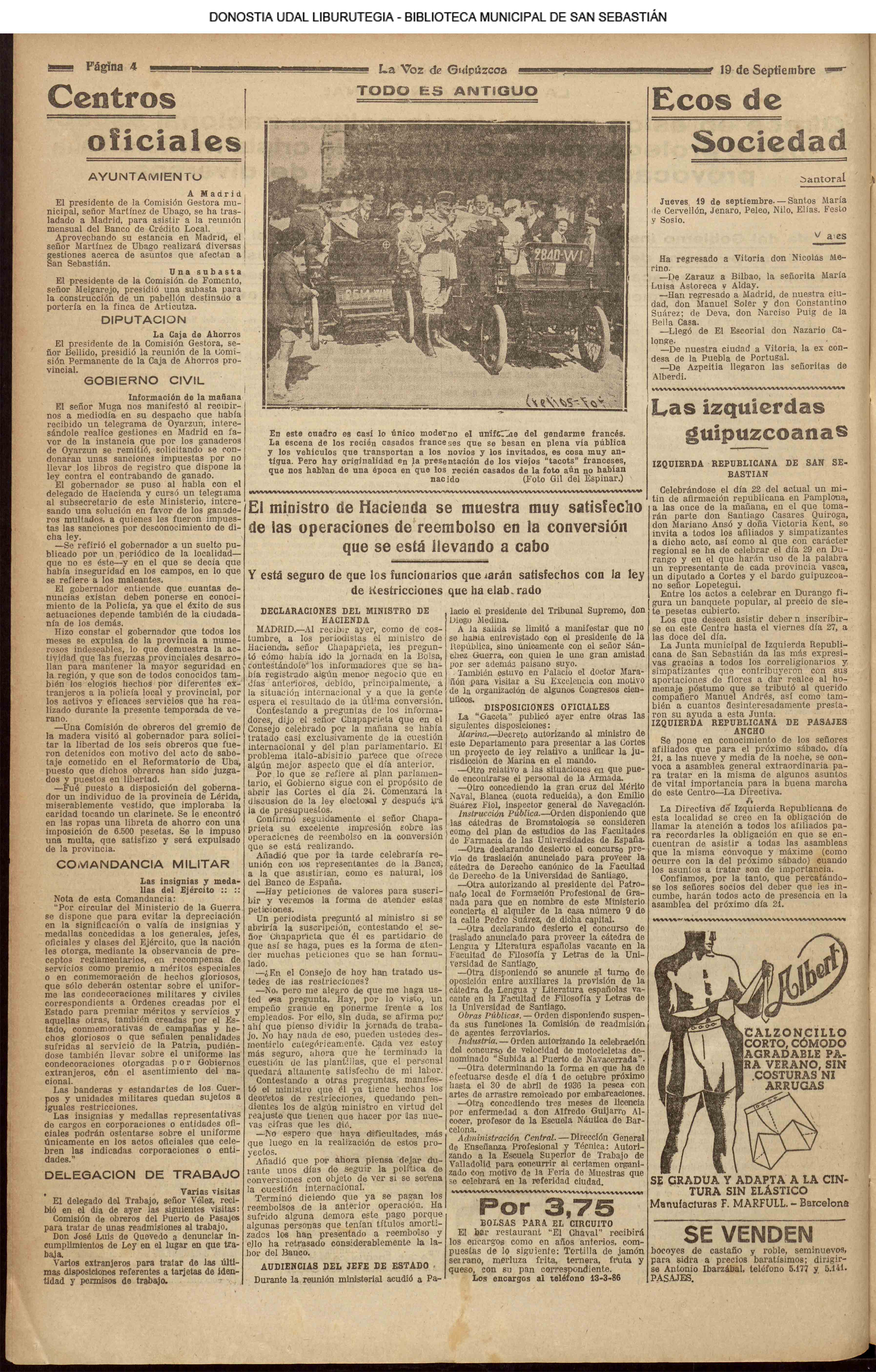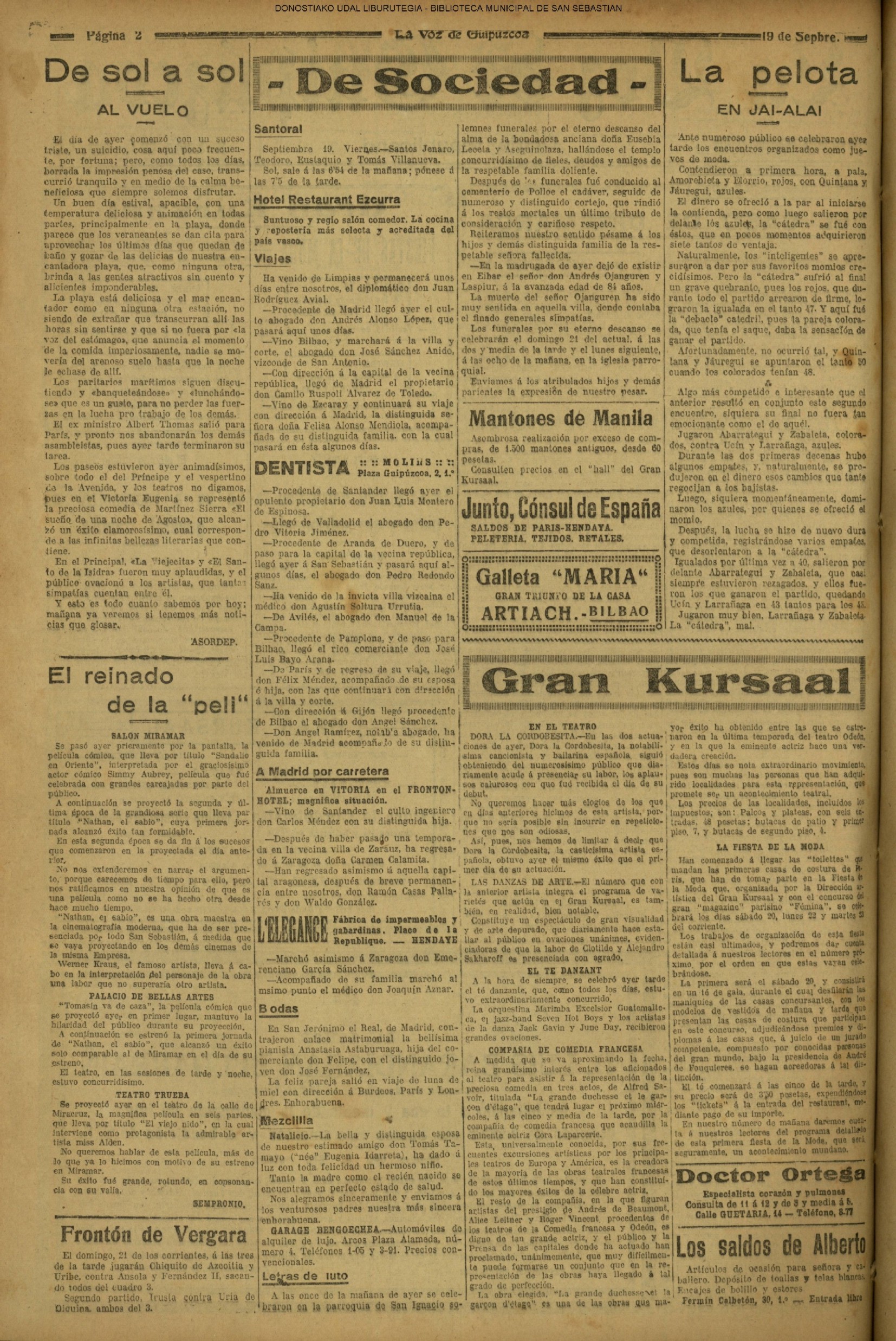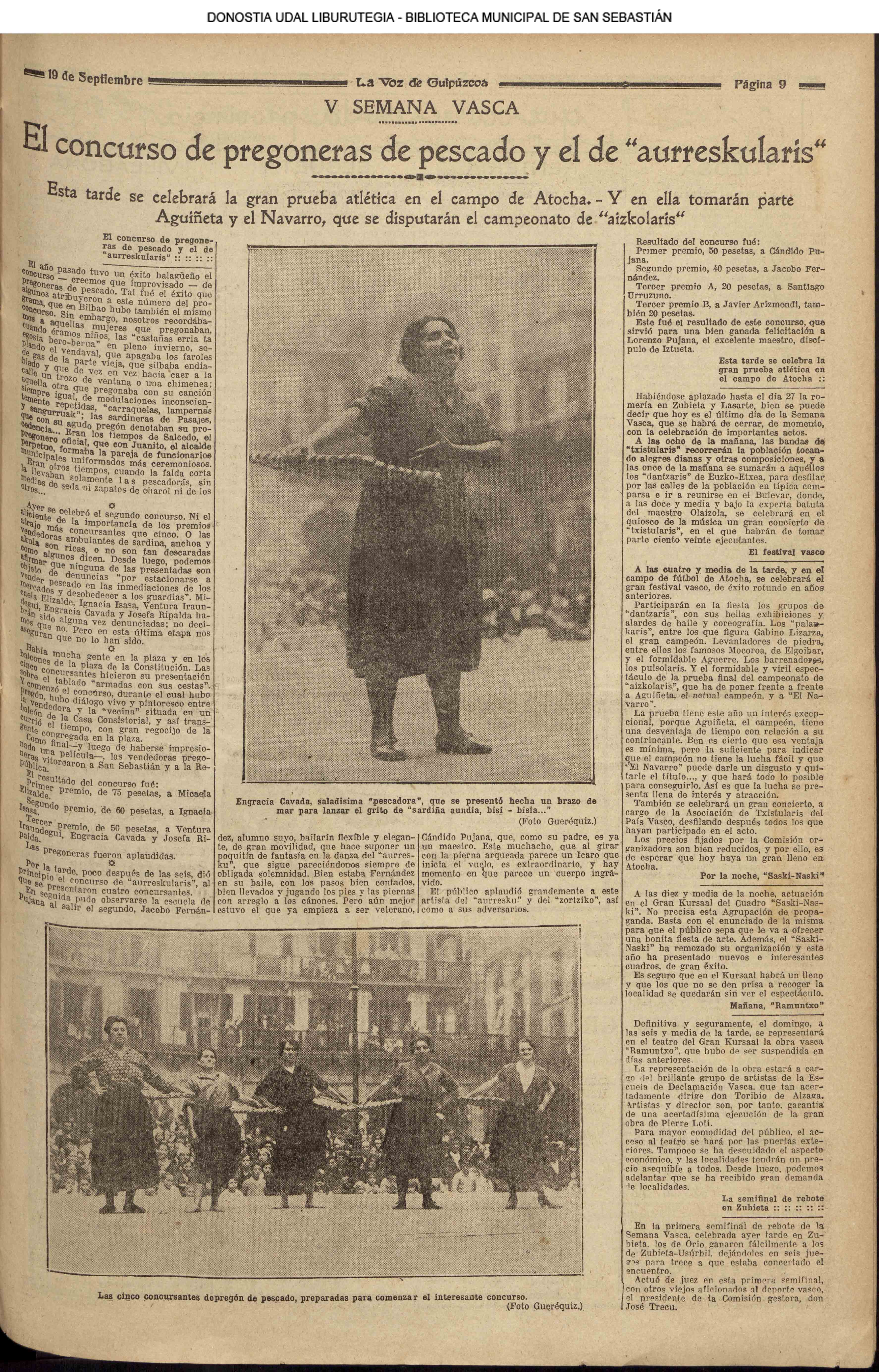18 - septiembre![]() . | (1931) - LA VOZ DE GUIPUZCOA (CENTROS OFICIALES) # V SEMANA VASCA .- El concurso de pregoneras y el de "aurreskularis" (La voz de Guipuzcoa)(El Pueblo Vasco) ++++++++++++++++++++++++++++++++++++++++++++++ # TAURINAS.- Se cerró el curso en el Chofre con una novillada divertida (La voz de Guipuzcoa)(El Pueblo Vasco)(El Día)(La Constancia) # LAS REGATAS DE TRAINERAS.- Los donostiarras del Amaikak-Bat ganan brillantemente la regata de Honor (La voz de Guipuzcoa/cont)(El Pueblo Vasco)(El Día)(La Constancia) ++++++++++++++++++++++++++++++++++++++++++++++ (La voz de Guipuzcoa)(El Pueblo Vasco)(El Día)(La Constancia) ++++++++++++++++++++++++++++++++++++++++++++++ # LA ASAMBLEA DE MÉDICOS.- (La voz de Guipuzcoa)(El Pueblo Vasco)(El Día)(La Constancia) ++++++++++++++++++++++++++++++++++++++++++++++ (La voz de Guipuzcoa)(El Pueblo Vasco)(El Día)(La Constancia) |