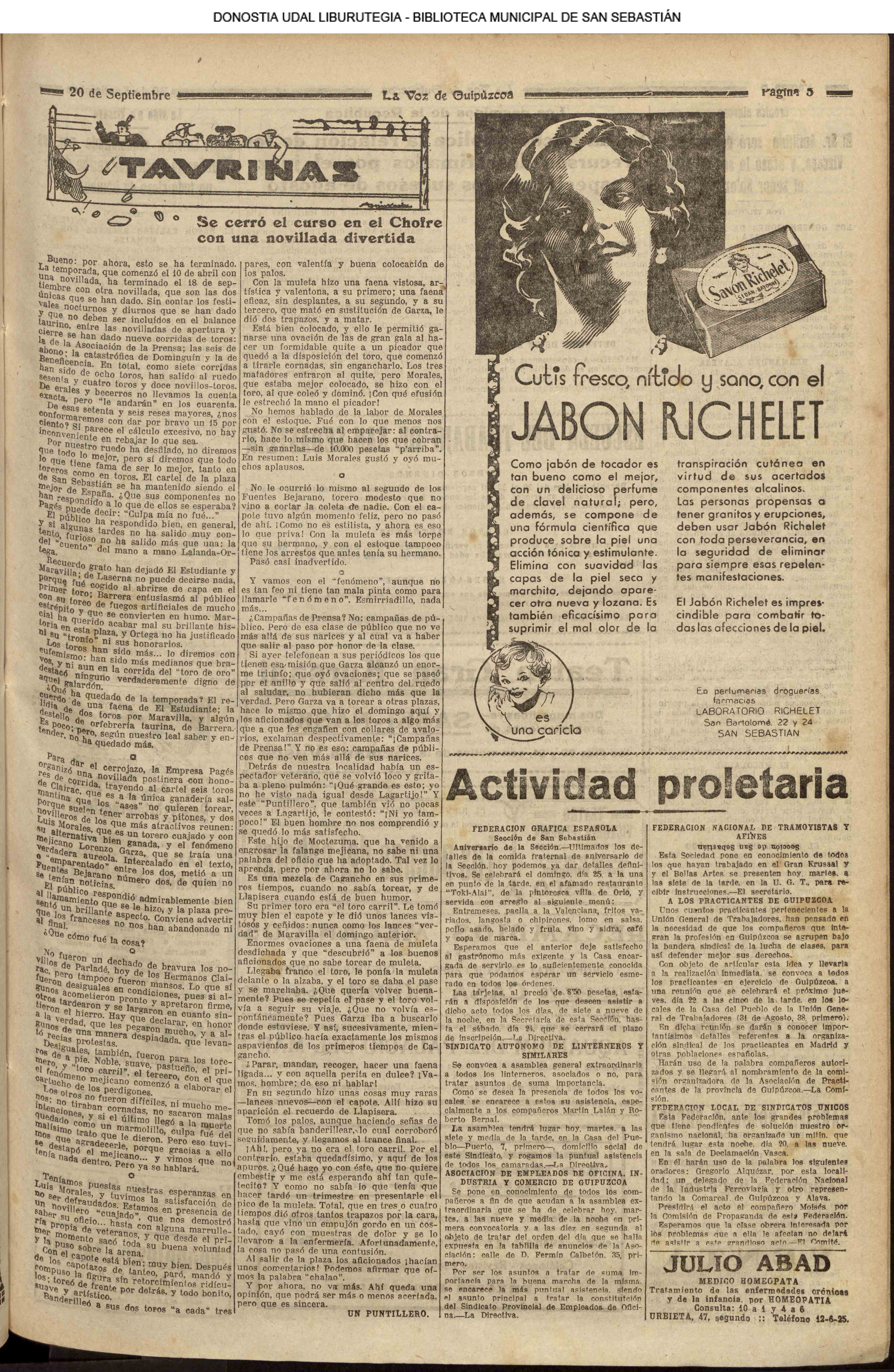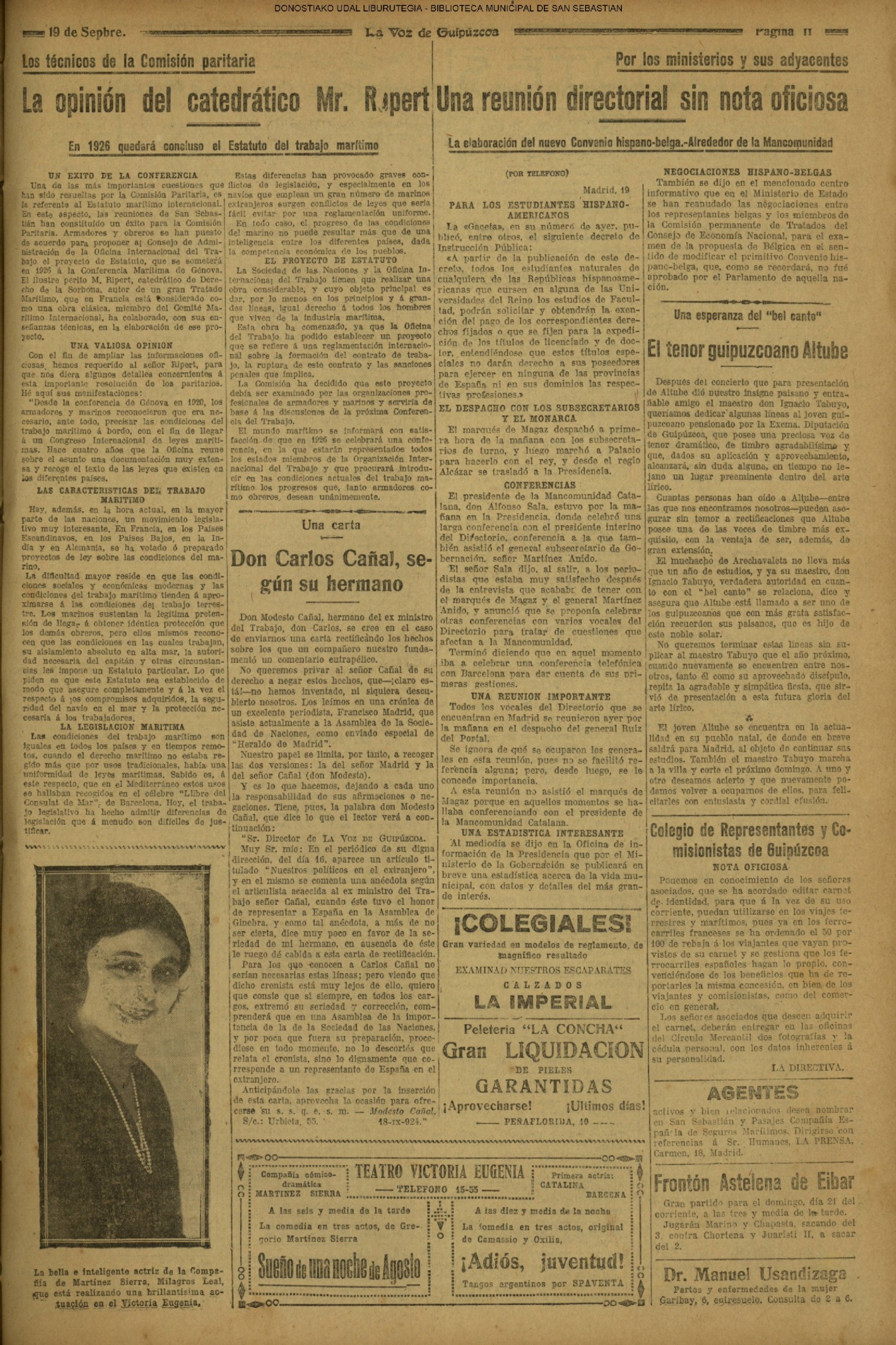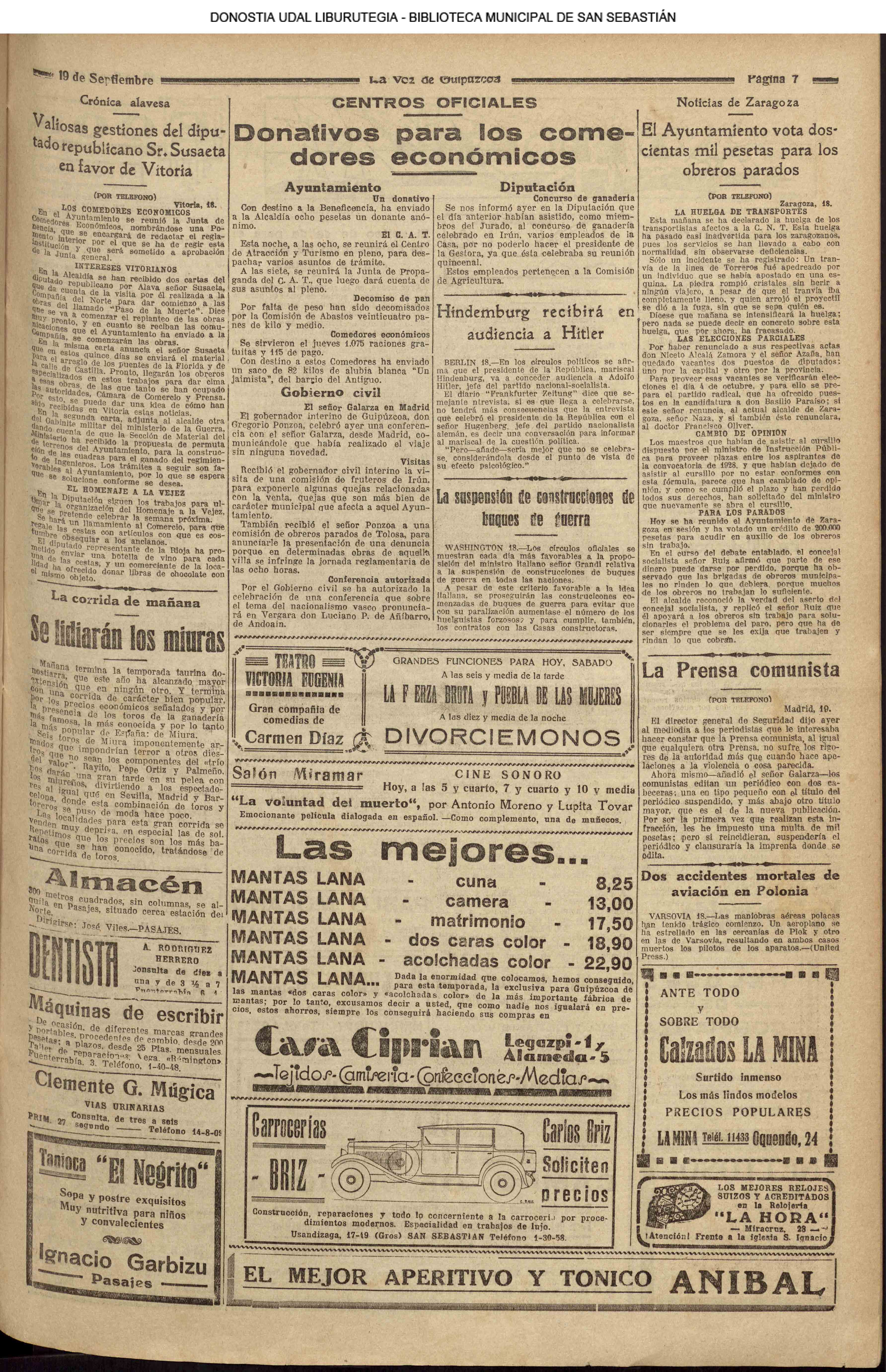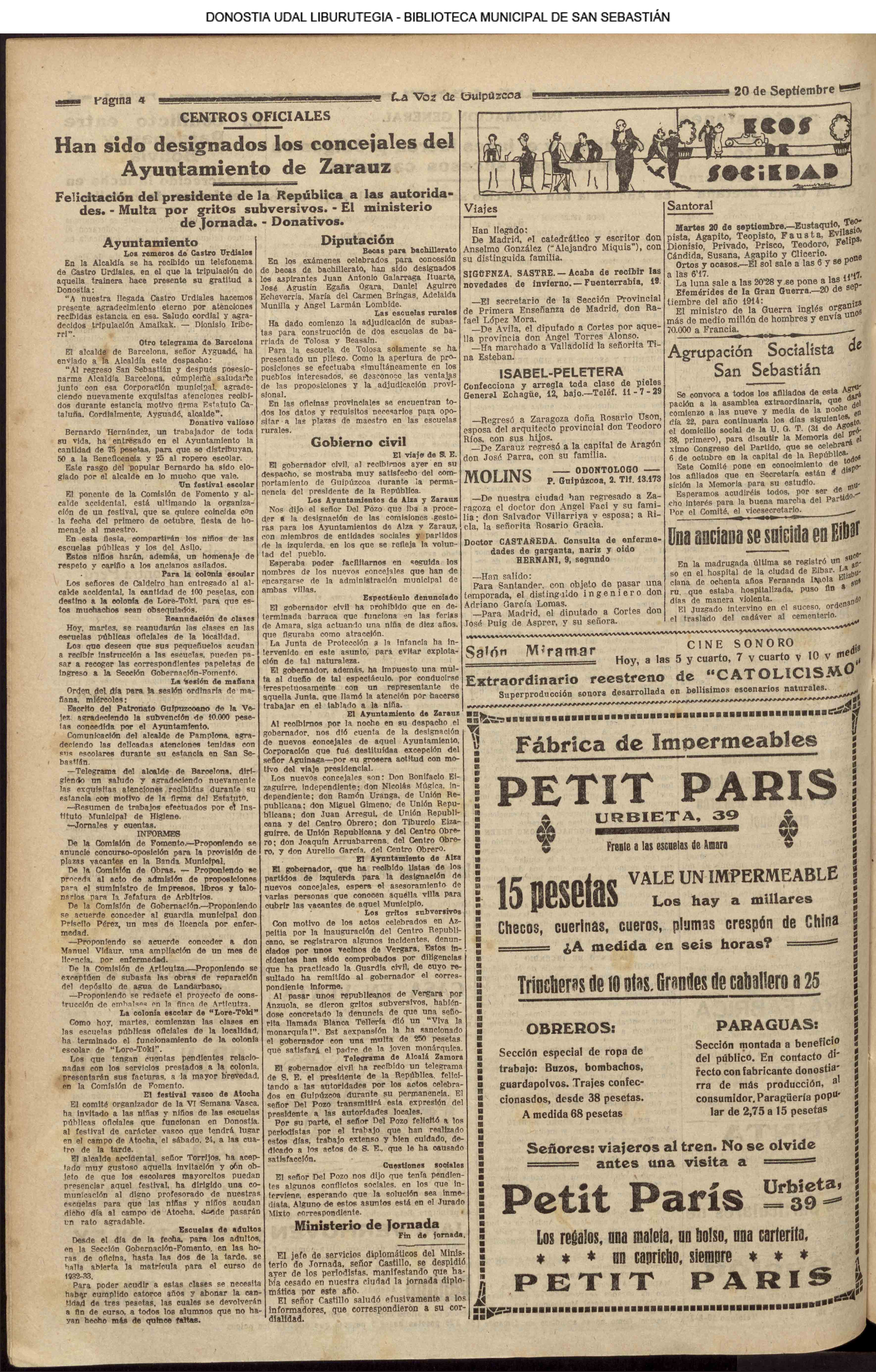 18 - septiembre![]() . | (1931) - LA VOZ DE GUIPUZCOA (CENTROS OFICIALES) # V SEMANA VASCA .- El concurso de pregoneras y el de "aurreskularis" (La voz de Guipuzcoa)(El Pueblo Vasco) ++++++++++++++++++++++++++++++++++++++++++++++ # TAURINAS.- Se cerró el curso en el Chofre con una novillada divertida (La voz de Guipuzcoa)(El Pueblo Vasco)(El Día)(La Constancia) # LAS REGATAS DE TRAINERAS.- Los donostiarras del Amaikak-Bat ganan brillantemente la regata de Honor (La voz de Guipuzcoa/cont)(El Pueblo Vasco)(El Día)(La Constancia) ++++++++++++++++++++++++++++++++++++++++++++++ (La voz de Guipuzcoa)(El Pueblo Vasco)(El Día)(La Constancia) ++++++++++++++++++++++++++++++++++++++++++++++ # LA ASAMBLEA DE MÉDICOS.- (La voz de Guipuzcoa)(El Pueblo Vasco)(El Día)(La Constancia) ++++++++++++++++++++++++++++++++++++++++++++++ (La voz de Guipuzcoa)(El Pueblo Vasco)(El Día)(La Constancia) |