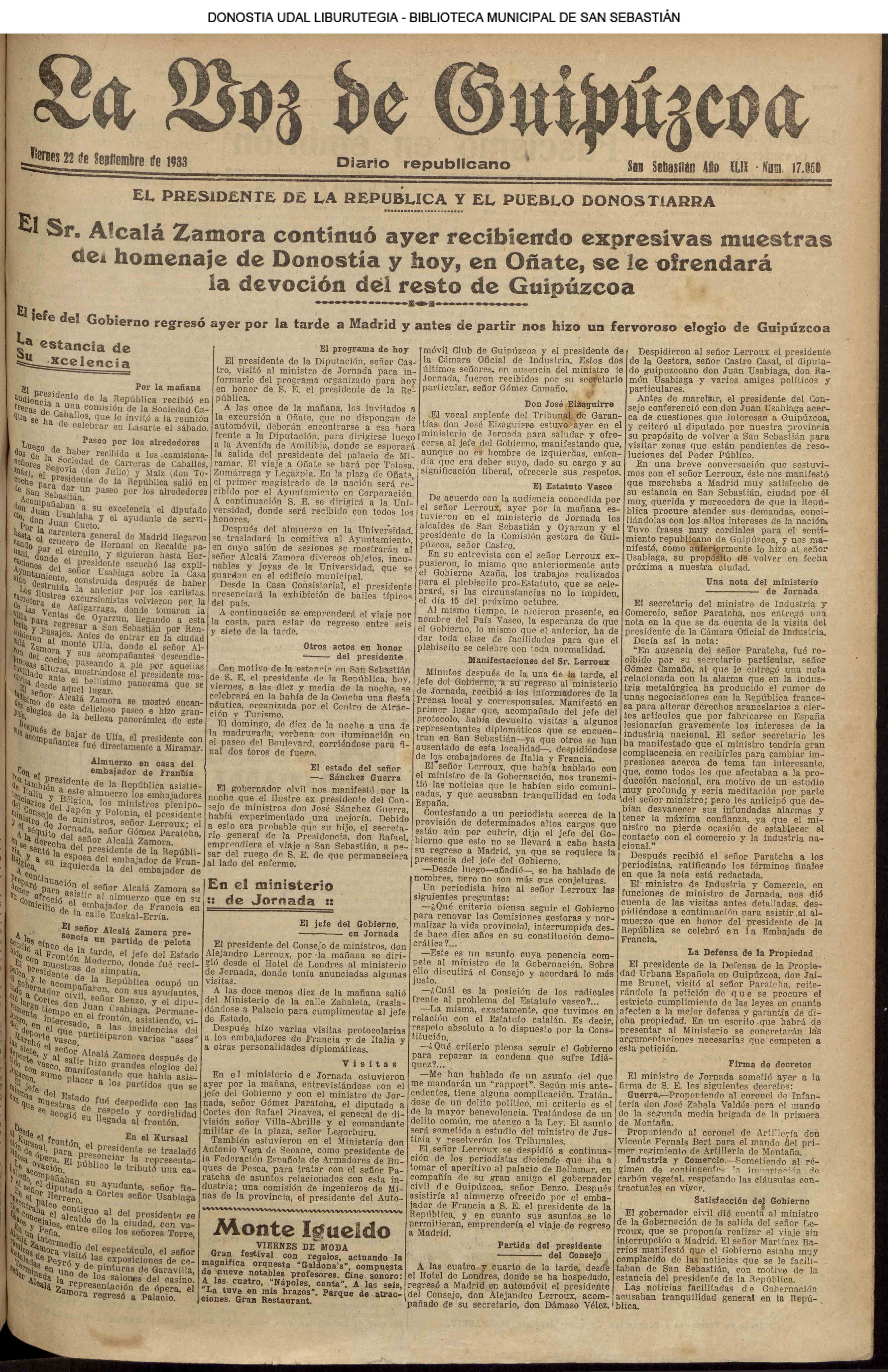 # EL PRESIDENTE DE LA REPÚBLICA Y EL PUEBLO DONOSTIARRA