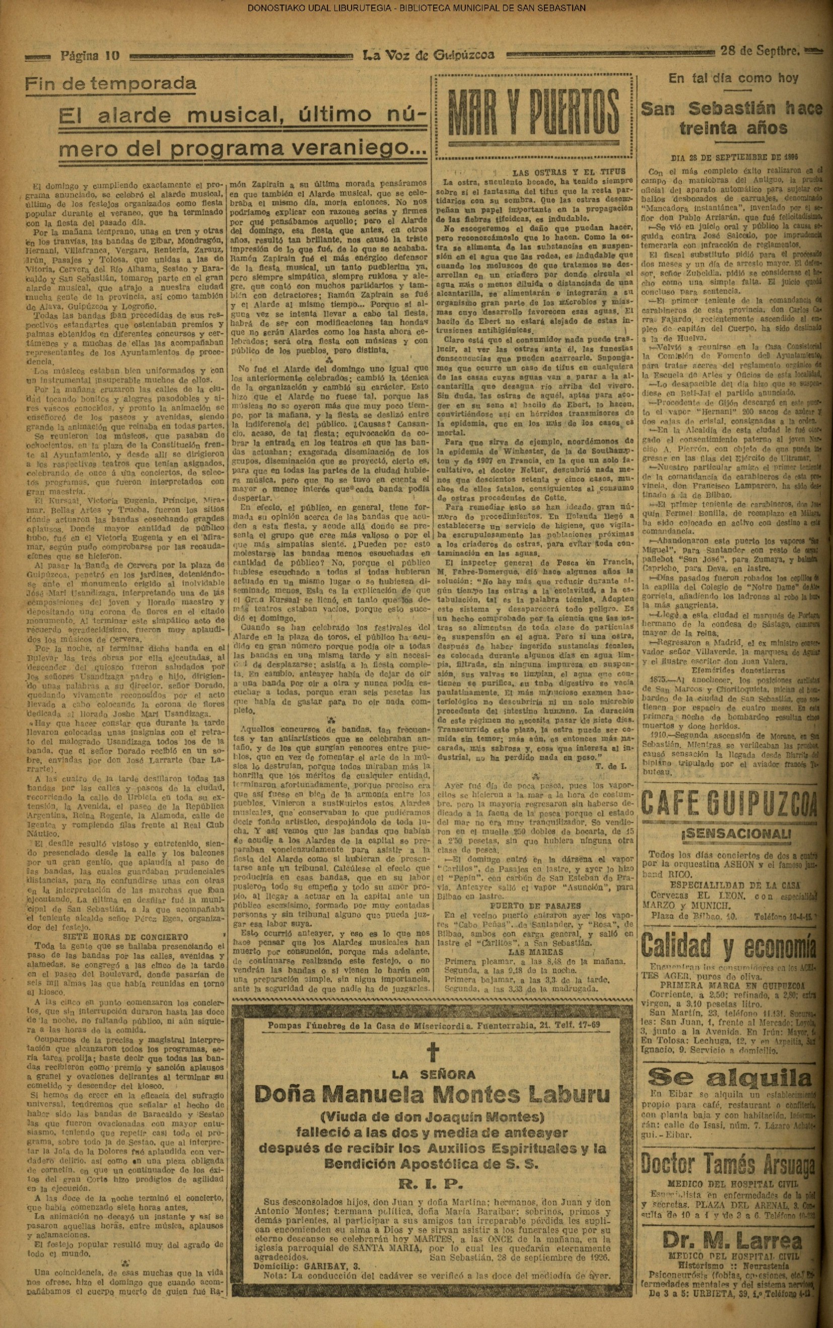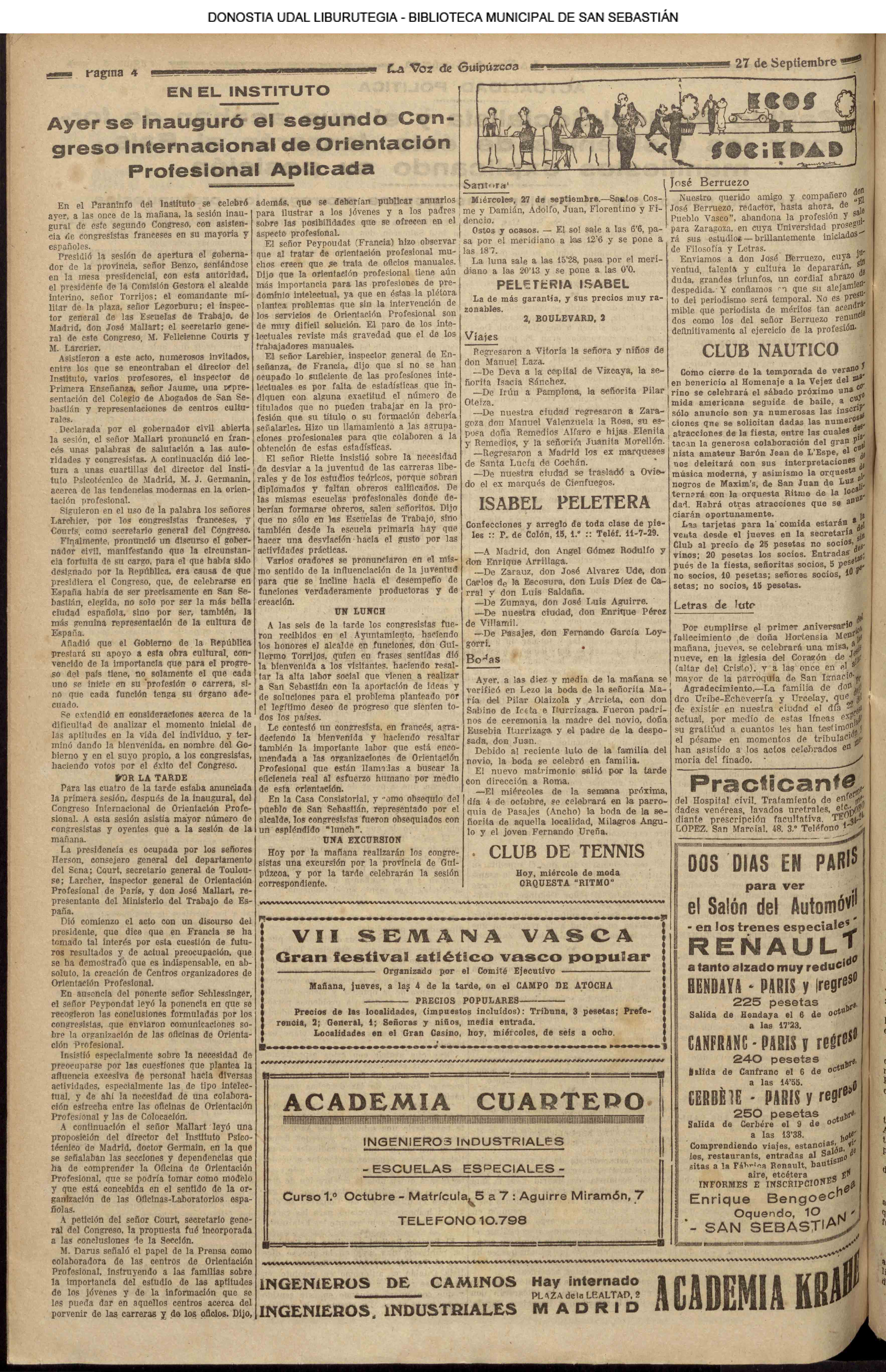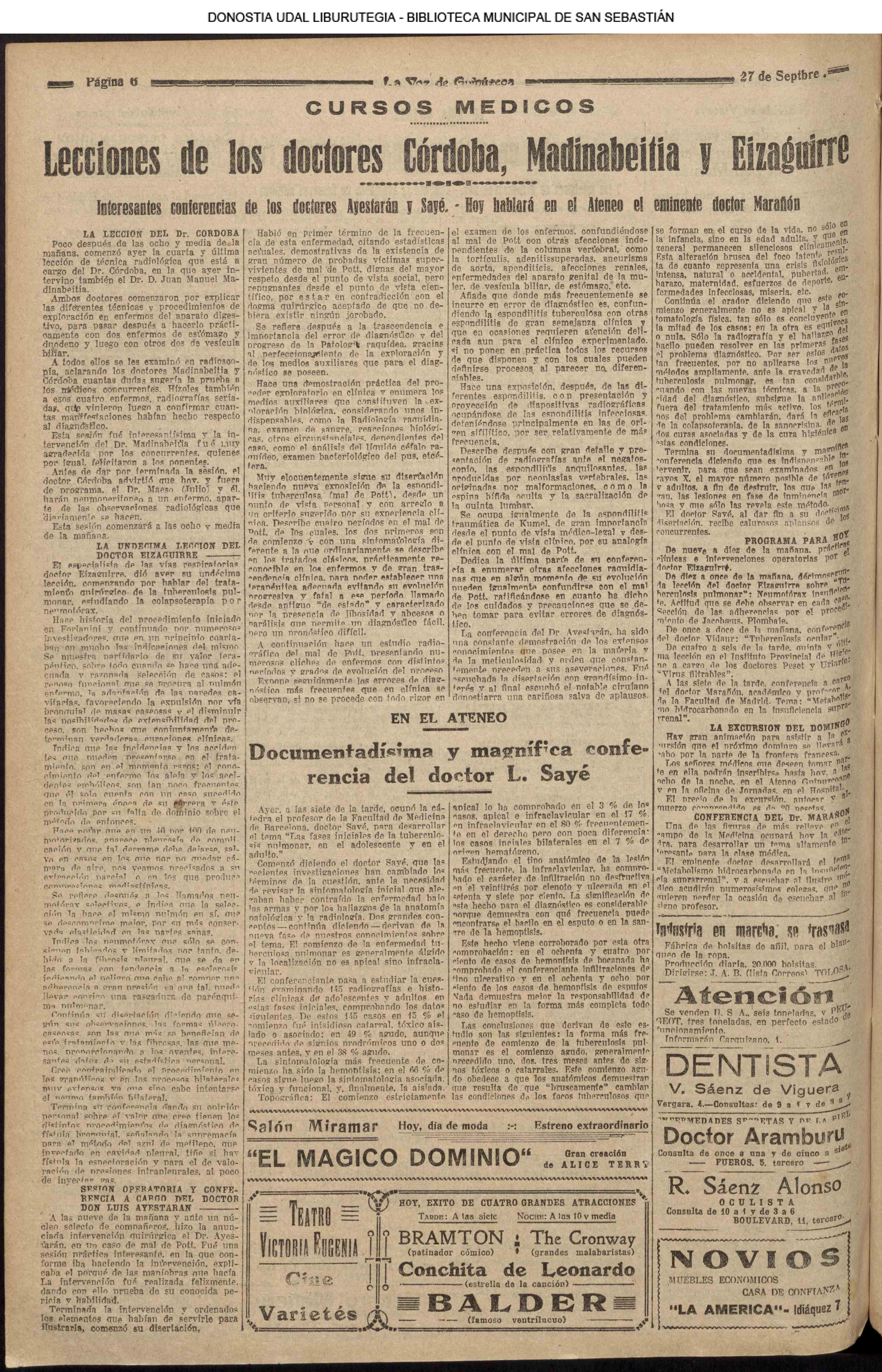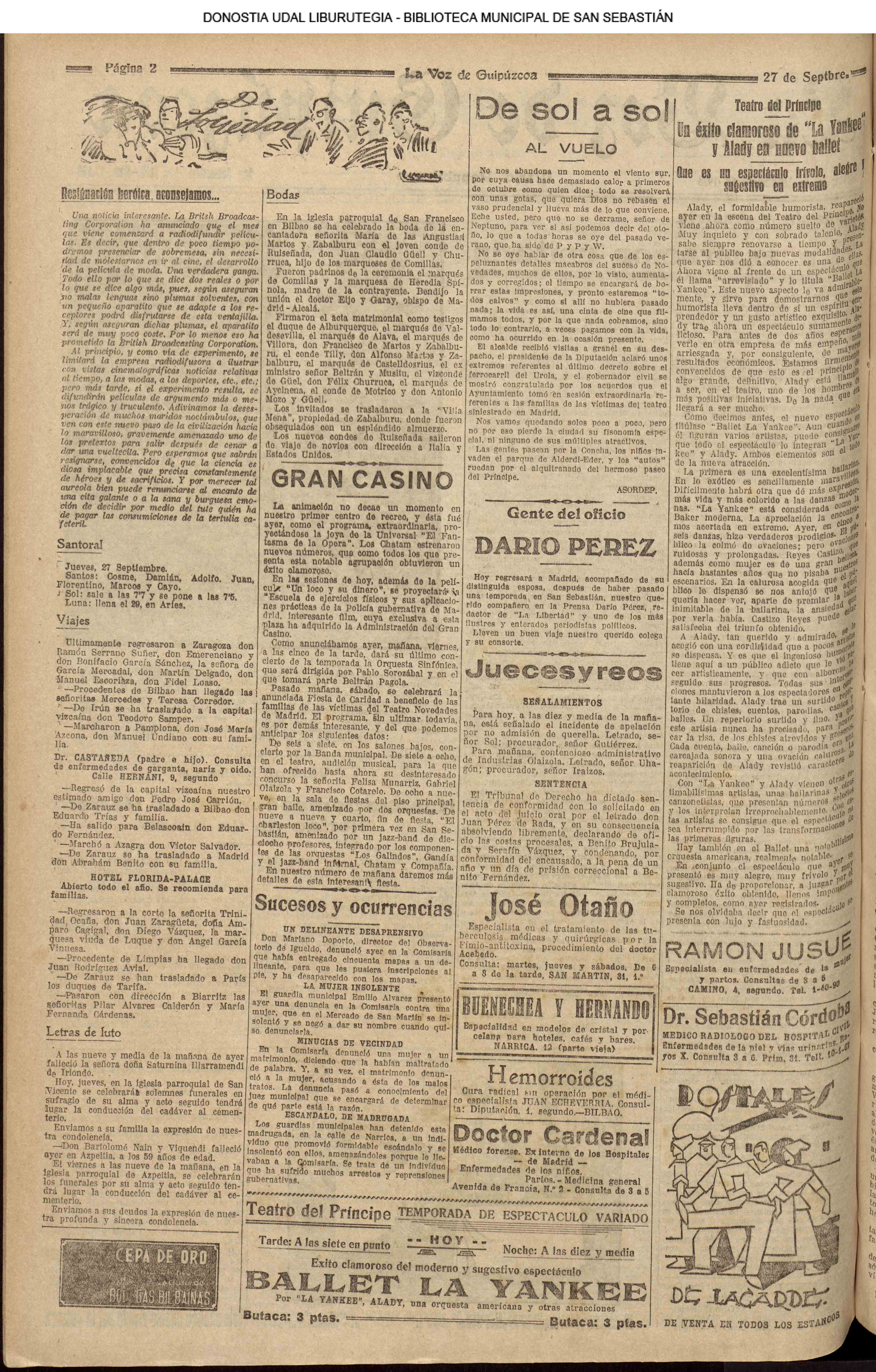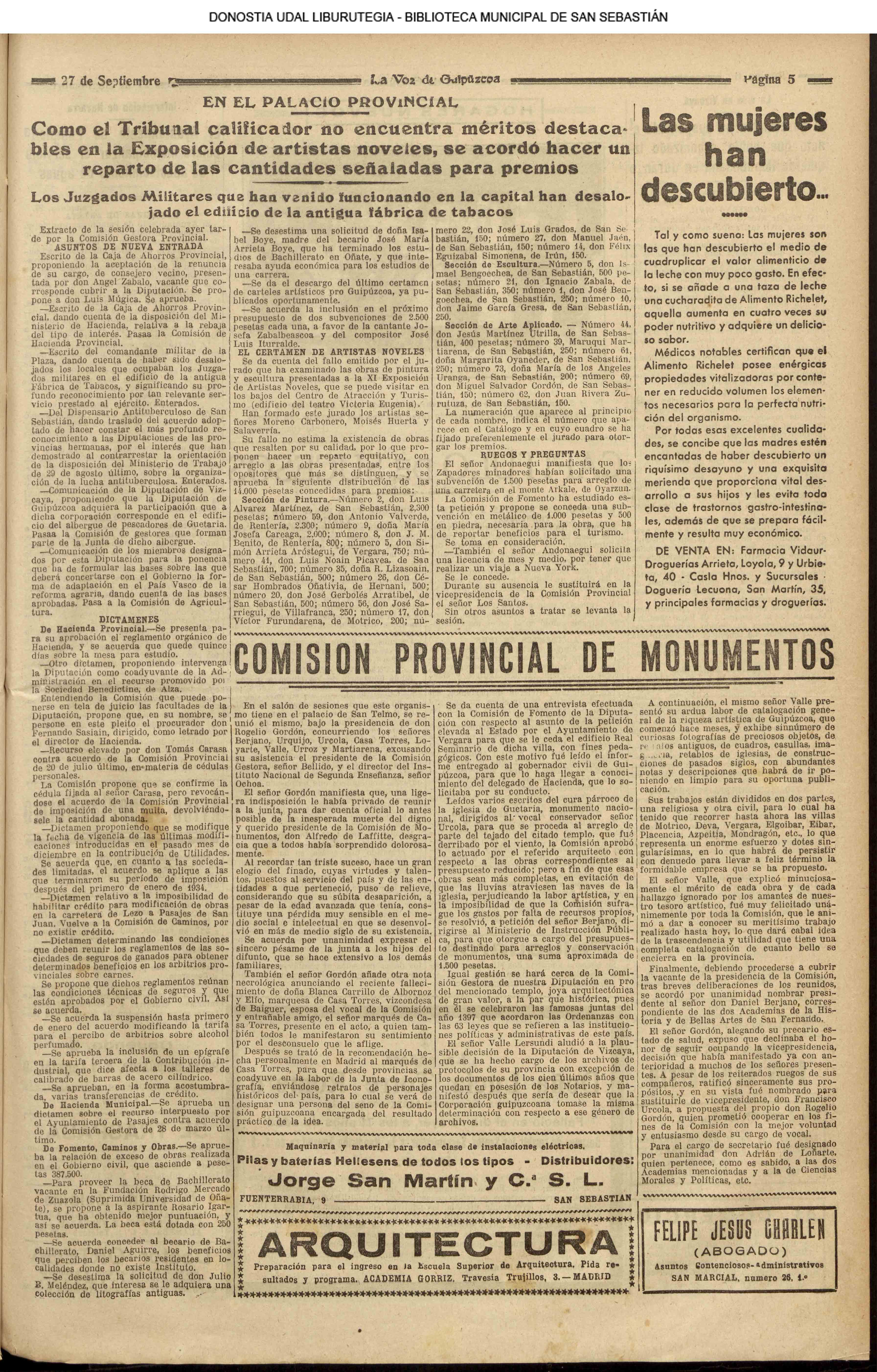 26 - septiembre![]() . | (1931) - LA VOZ DE GUIPUZCOA (CENTROS OFICIALES) # EL HOMENAJE A LUIS IRASTORZA.- Un acto magníficamente cordial. (La voz de Guipuzcoa)(El Pueblo Vasco)(El Día)(La Constancia) ++++++++++++++++++++++++++++++++++++++++++++++ (La voz de Guipuzcoa)(El Pueblo Vasco)(El Día)(La Constancia) ++++++++++++++++++++++++++++++++++++++++++++++ # EN EL INSTITUTO.- Se INAUGURÓ el II Congreso Internacional de Orientación Profesional Aplicada (La voz de Guipuzcoa)(El Pueblo Vasco)(El Día)(La Constancia) # LA SEMANA VASCA.- El concurso de acordeonistas debe celebrarse en lugar cerrado, porque concurren artistas (La voz de Guipuzcoa)(El Pueblo Vasco)(El Día)(La Constancia) ++++++++++++++++++++++++++++++++++++++++++++++ # LA CAMPAÑA DE ÓPERA.- El público que llenaba el Victoria Eugenia ovacionó a los intérpretes del "Mendi Mendiyan" (La voz de Guipuzcoa)(El Pueblo Vasco)(El Día)(La Constancia) # LA VIII SEMANA VASCA (La voz de Guipuzcoa)(El Pueblo Vasco)(El Día)(La Constancia) ++++++++++++++++++++++++++++++++++++++++++++++ # EN EL PALACIO PROVINCIAL- SESIÓN DE LA COMISIÓN GESTORA (La voz de Guipuzcoa)(El Pueblo Vasco)(El Día)(La Constancia) # COMISIÓN PROVINCIAL DE MONUMENTOS (La voz de Guipuzcoa)(El Pueblo Vasco)(El Día)(La Constancia) |