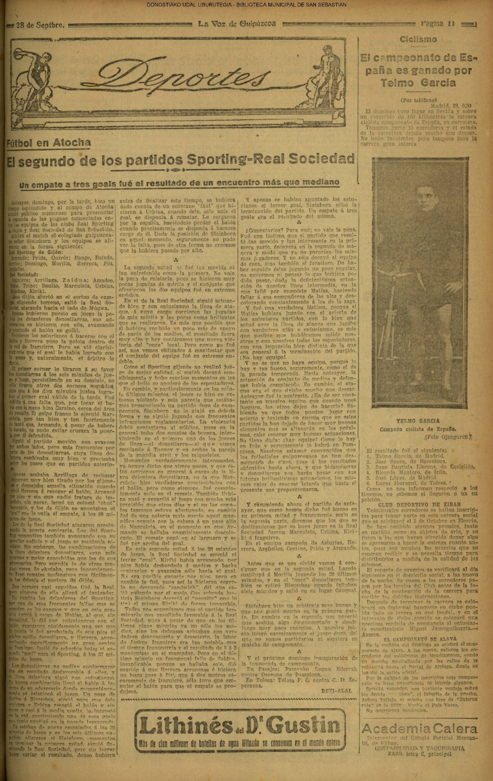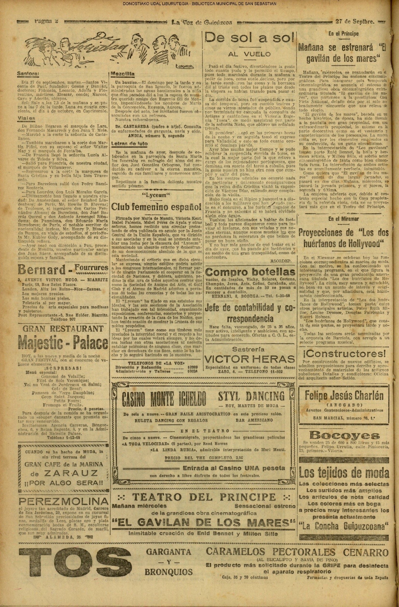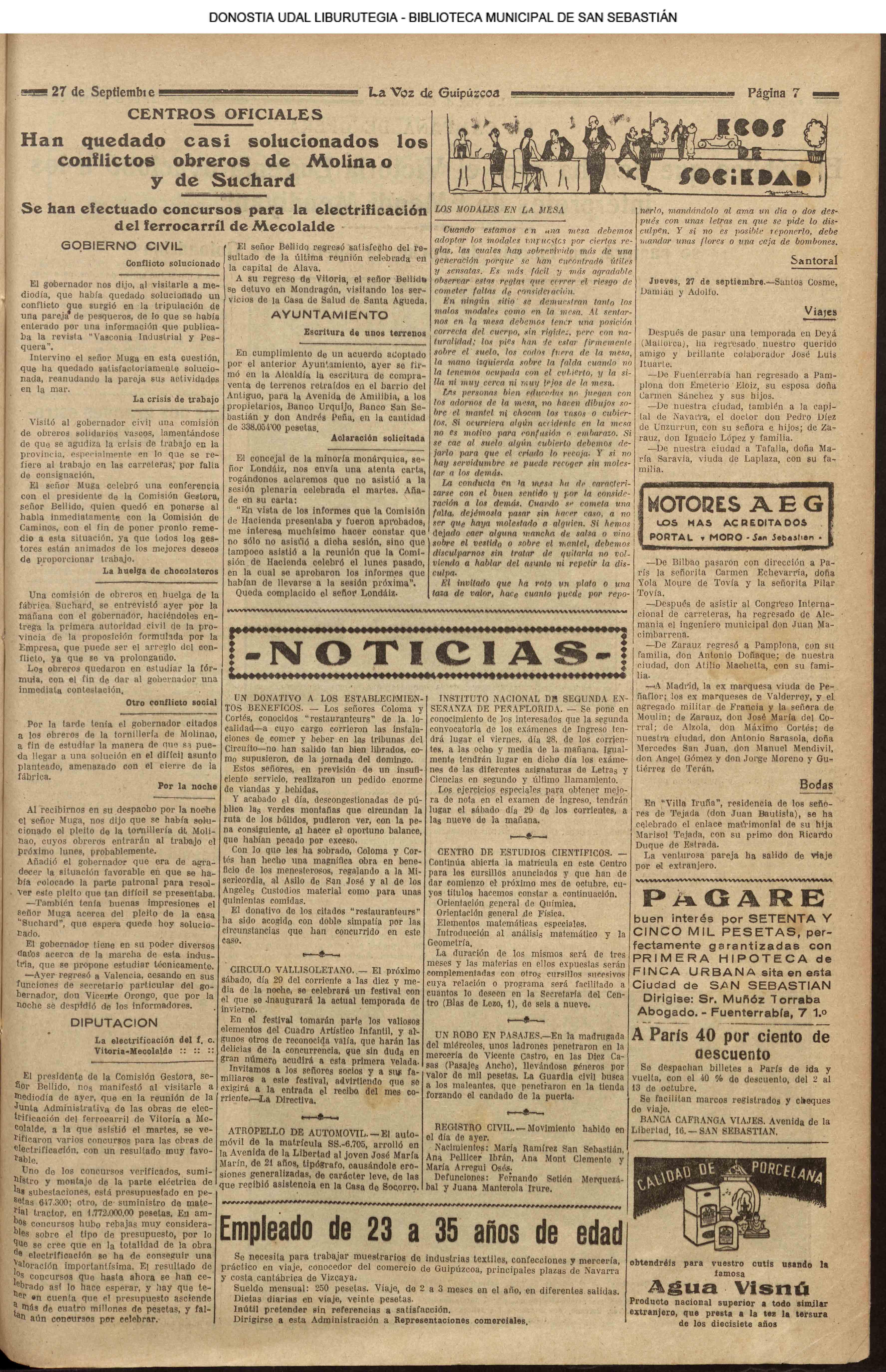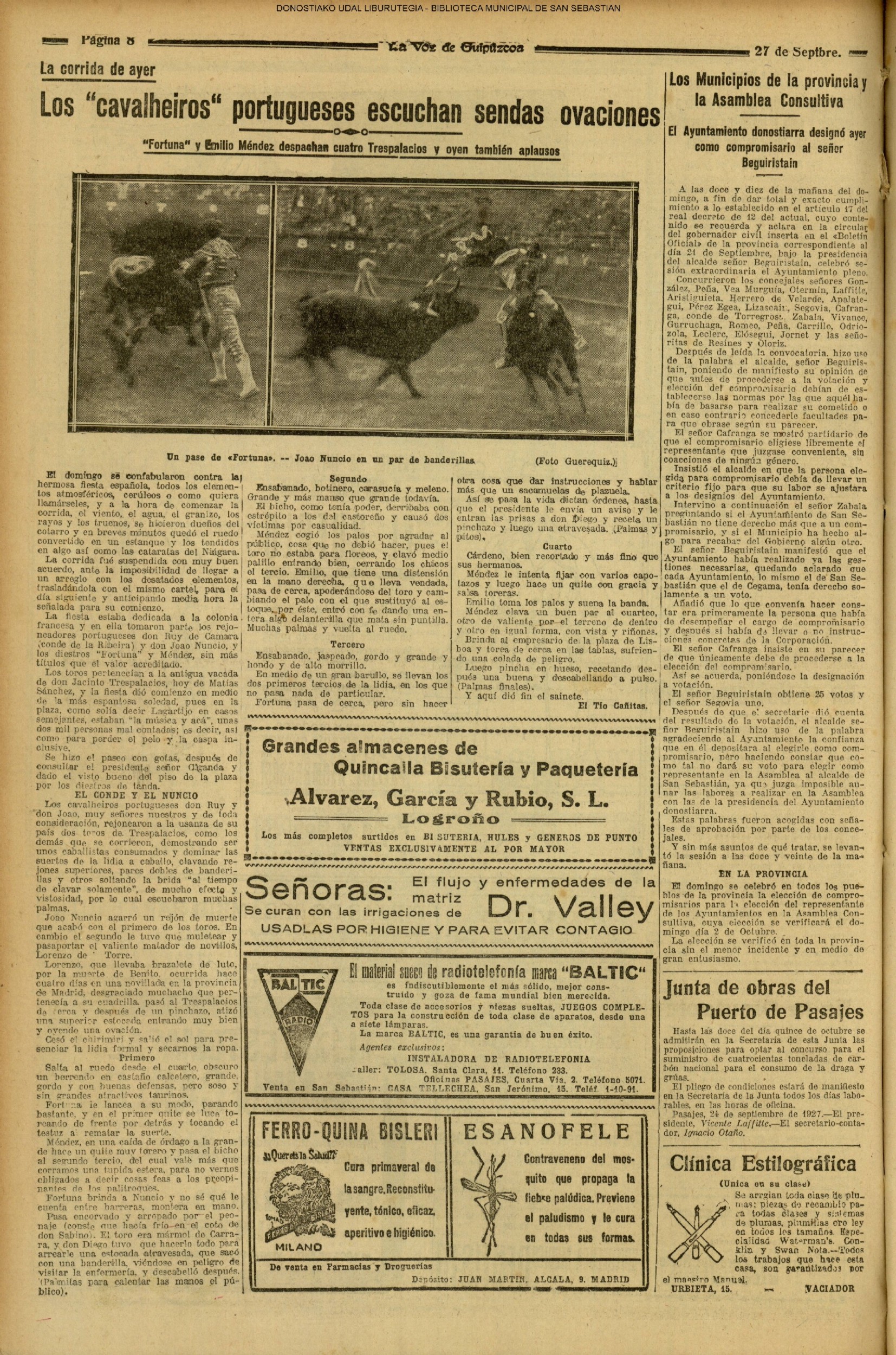 26 - septiembre![]() . | (1931) - LA VOZ DE GUIPUZCOA (CENTROS OFICIALES) # EL HOMENAJE A LUIS IRASTORZA.- Un acto magníficamente cordial. (La voz de Guipuzcoa)(El Pueblo Vasco)(El Día)(La Constancia) ++++++++++++++++++++++++++++++++++++++++++++++ (La voz de Guipuzcoa)(El Pueblo Vasco)(El Día)(La Constancia) ++++++++++++++++++++++++++++++++++++++++++++++ # EN EL INSTITUTO.- Se INAUGURÓ el II Congreso Internacional de Orientación Profesional Aplicada (La voz de Guipuzcoa)(El Pueblo Vasco)(El Día)(La Constancia) # LA SEMANA VASCA.- El concurso de acordeonistas debe celebrarse en lugar cerrado, porque concurren artistas (La voz de Guipuzcoa)(El Pueblo Vasco)(El Día)(La Constancia) ++++++++++++++++++++++++++++++++++++++++++++++ # LA CAMPAÑA DE ÓPERA.- El público que llenaba el Victoria Eugenia ovacionó a los intérpretes del "Mendi Mendiyan" (La voz de Guipuzcoa)(El Pueblo Vasco)(El Día)(La Constancia) # LA VIII SEMANA VASCA (La voz de Guipuzcoa)(El Pueblo Vasco)(El Día)(La Constancia) ++++++++++++++++++++++++++++++++++++++++++++++ # EN EL PALACIO PROVINCIAL- SESIÓN DE LA COMISIÓN GESTORA (La voz de Guipuzcoa)(El Pueblo Vasco)(El Día)(La Constancia) # COMISIÓN PROVINCIAL DE MONUMENTOS (La voz de Guipuzcoa)(El Pueblo Vasco)(El Día)(La Constancia) |