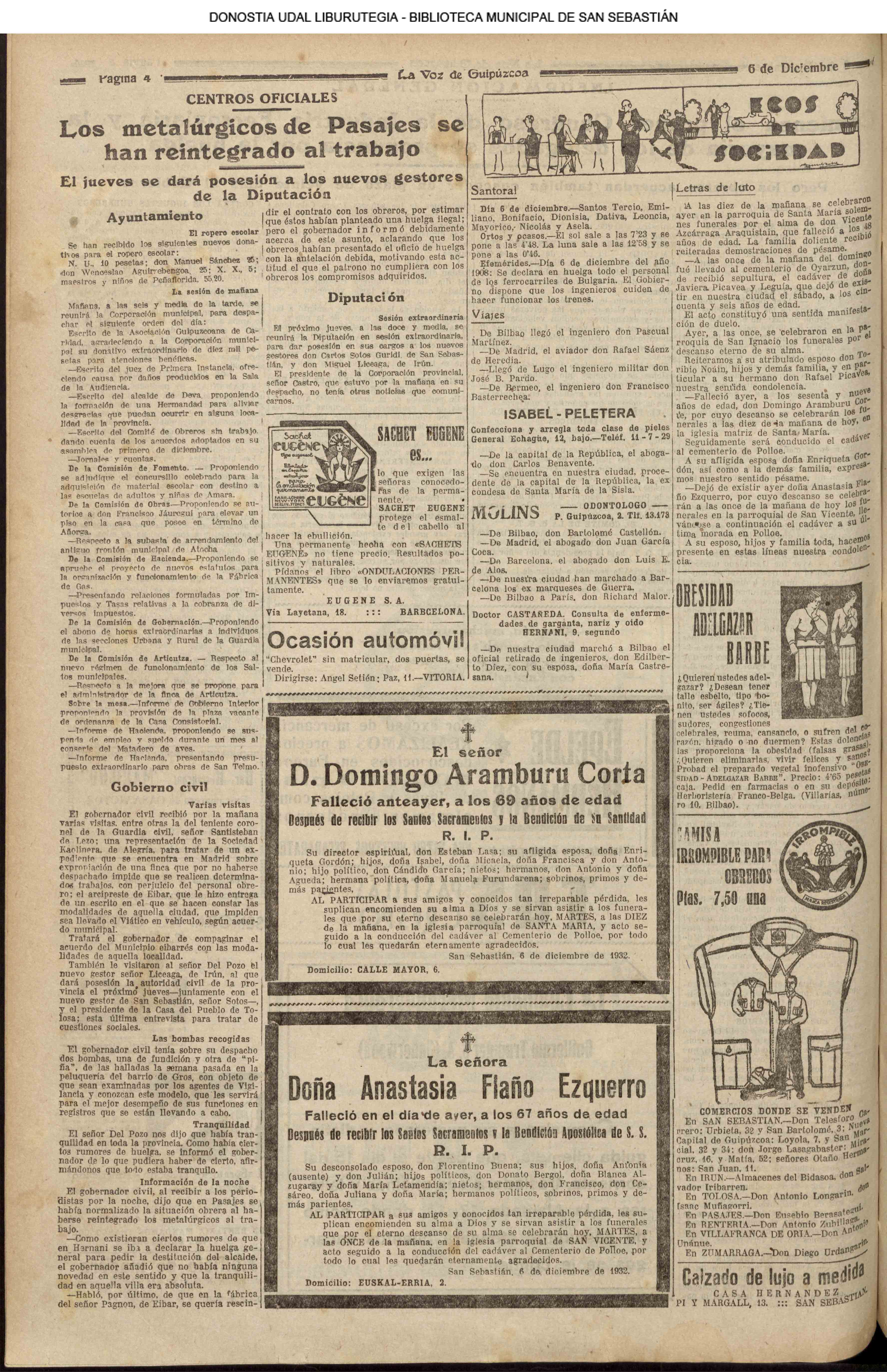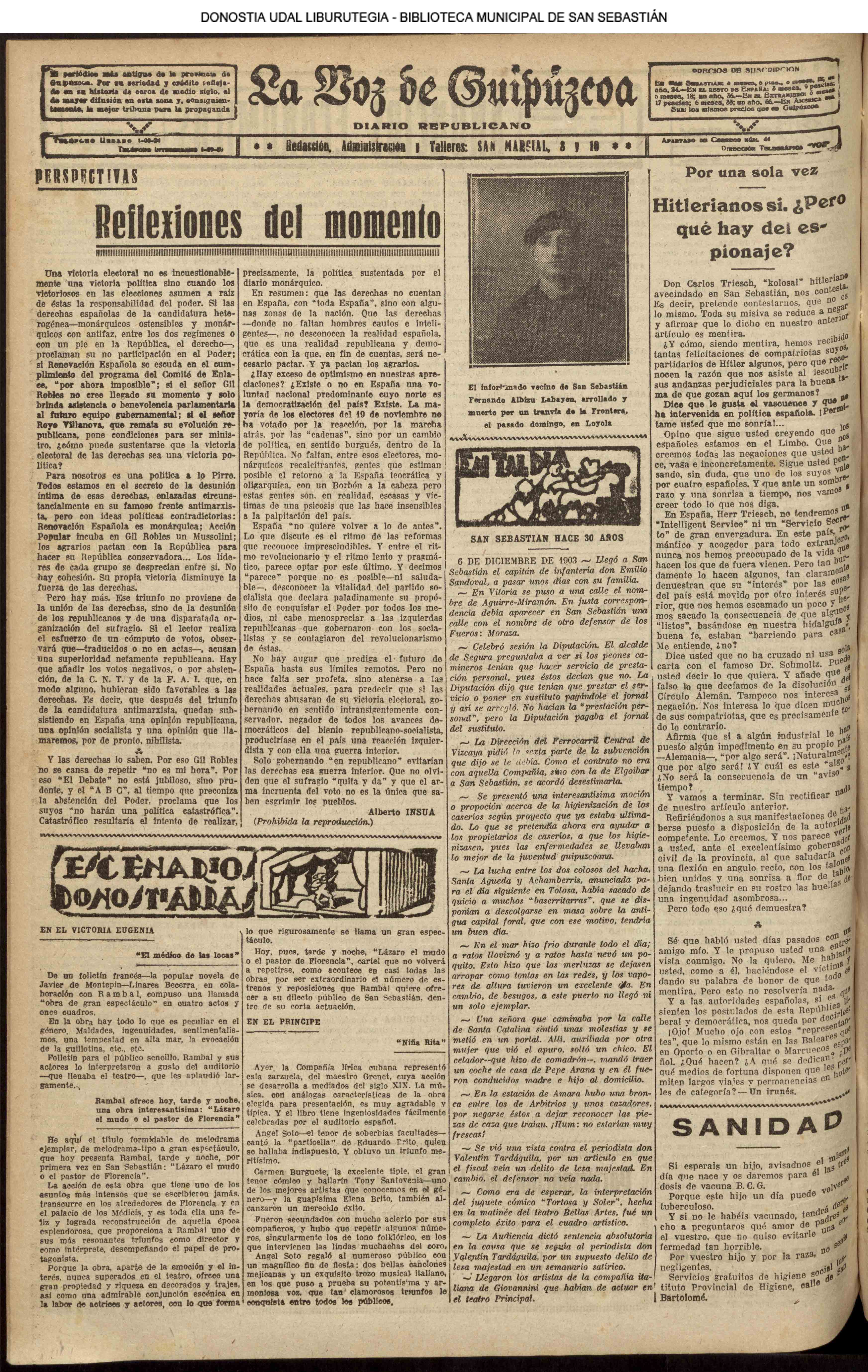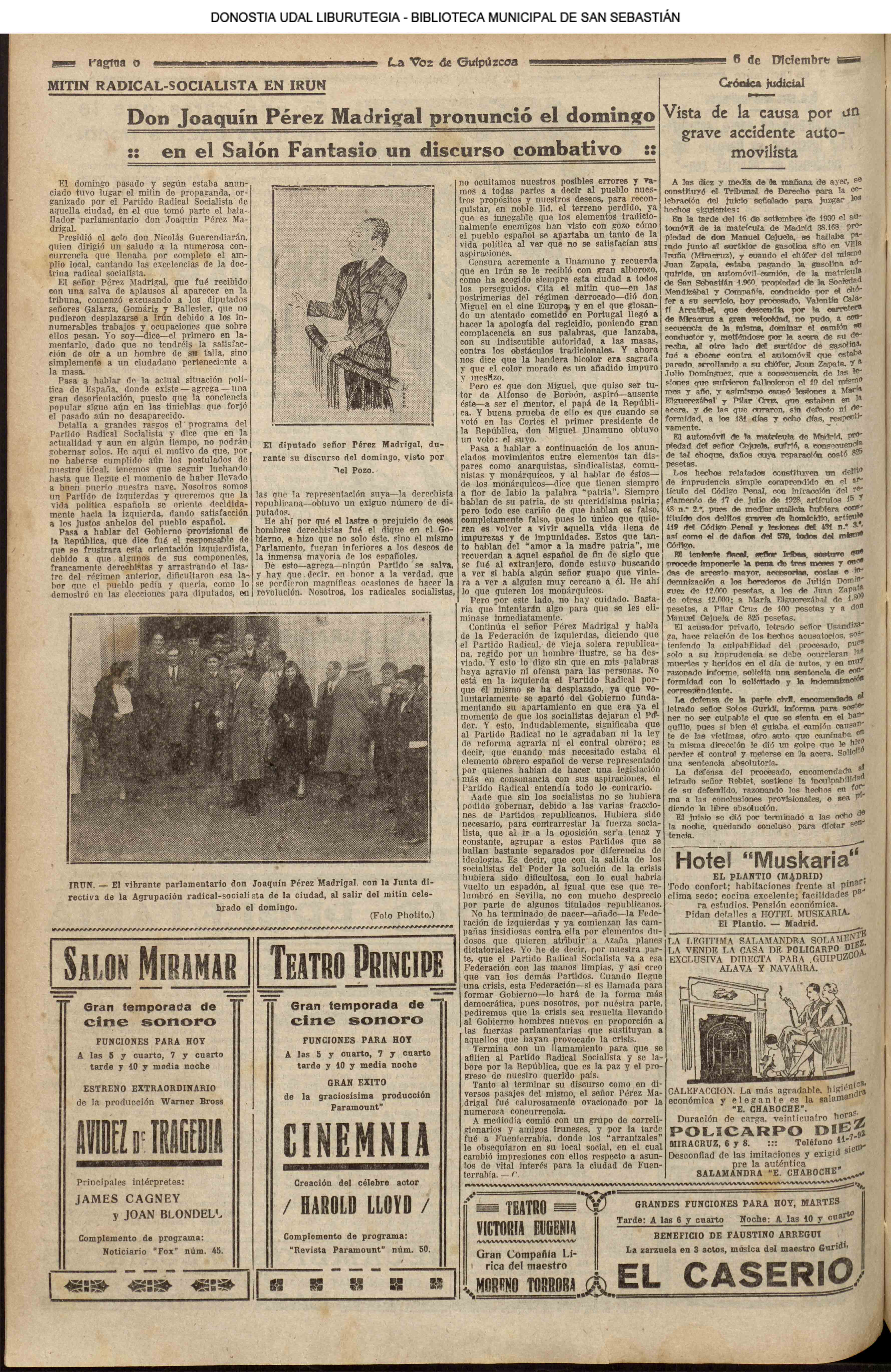 #La Voz de Guipúzcoa: diario republicano (0001.pdf) 001 - LA CRISIS MUNDIAL Y LOS SOVIETS. 004 - CENTROS OFICIALES - Los metalúrgicos de Pasajes e han reintegrado al trabajo 006 - MITIN RADICAL-SOCIALISTA EN IRÚN 015 - CARTELERA DE ESPECTÁCULOS 016 - EN LA ACADEMIA MÉDICO-QUIRÚRGICA – Una notable conferencia del