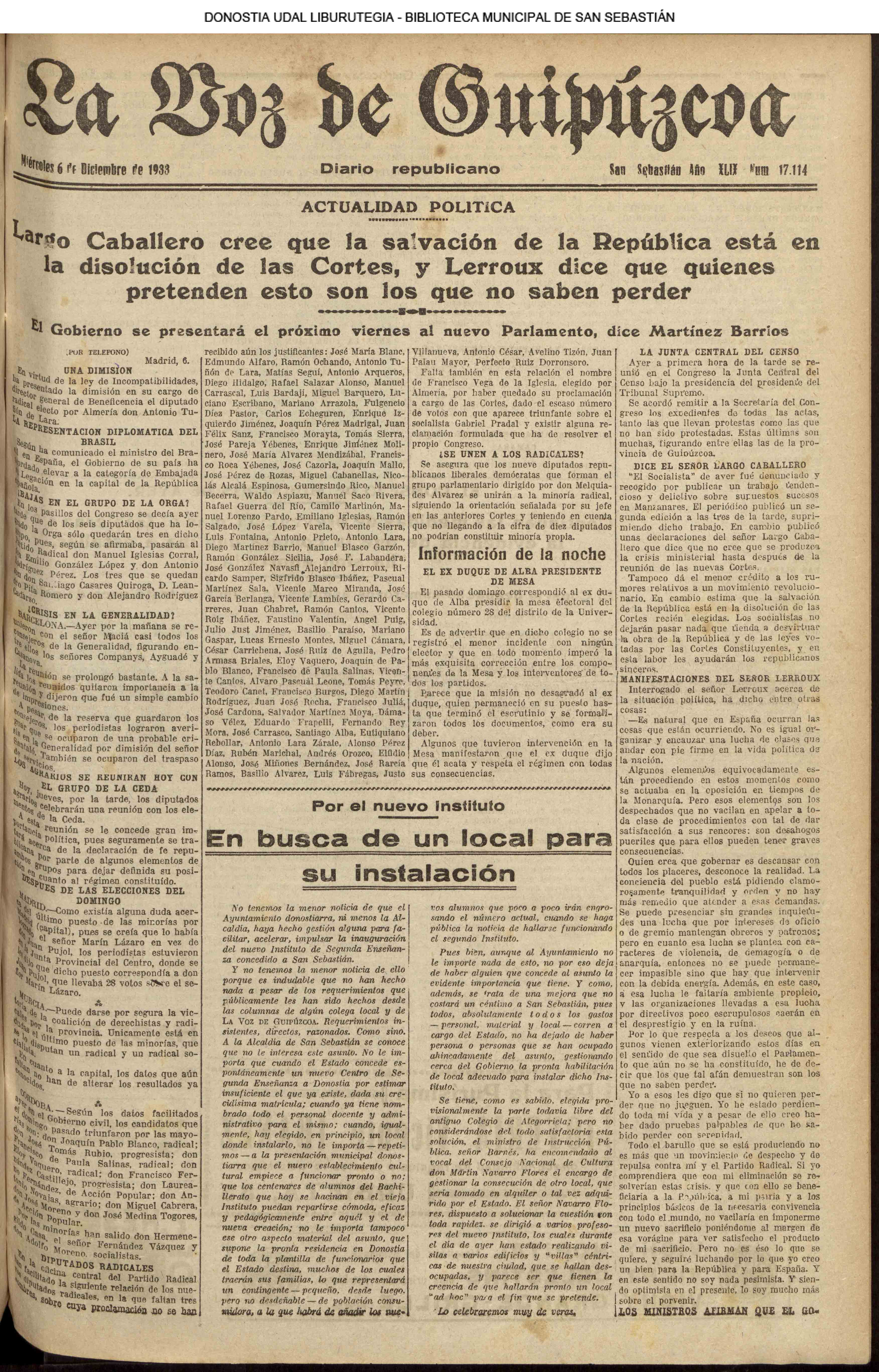 #La Voz de Guipúzcoa: diario republicano (0001.pdf) 001 - Largo Caballero cree que la salvación de la República está en la