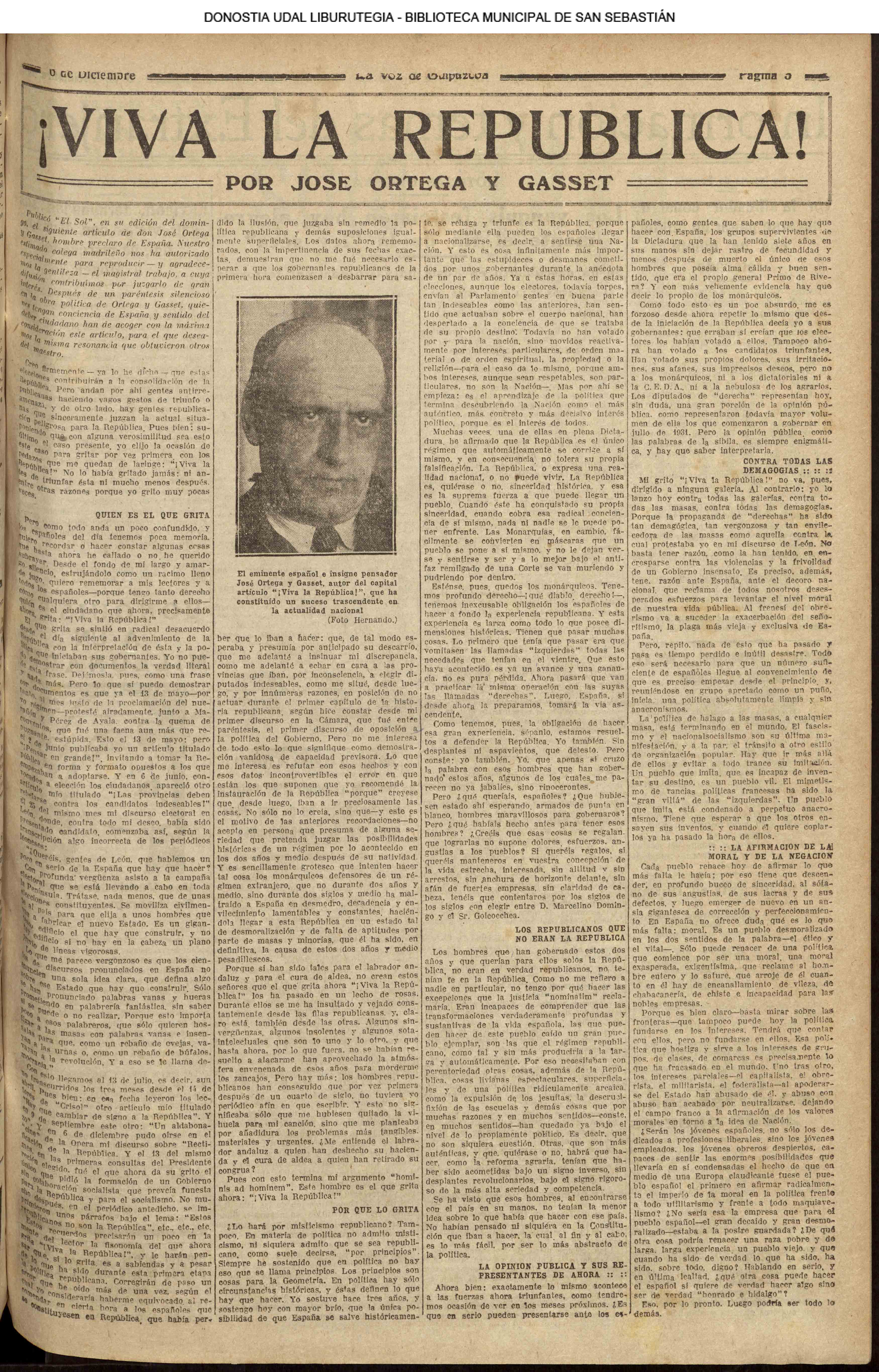son los que no saben perder. 001 - POR EL NUEVO INSTITUTO - En busca de un local para su instalación. 003 - ¡VIVA LA REPÚBLICA! ( por JOSE ORTEGA y GASSET) 008 - CENTROS OFICIALES - El viernes se acordará en Bilbao la fecha en que se hará entrega en
