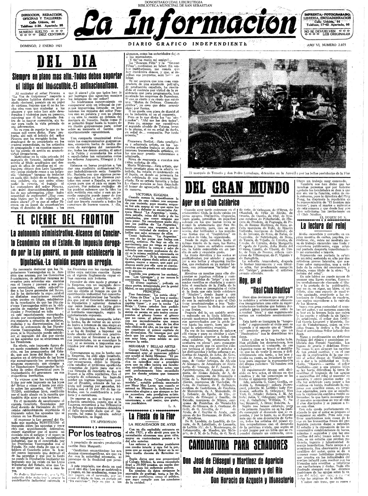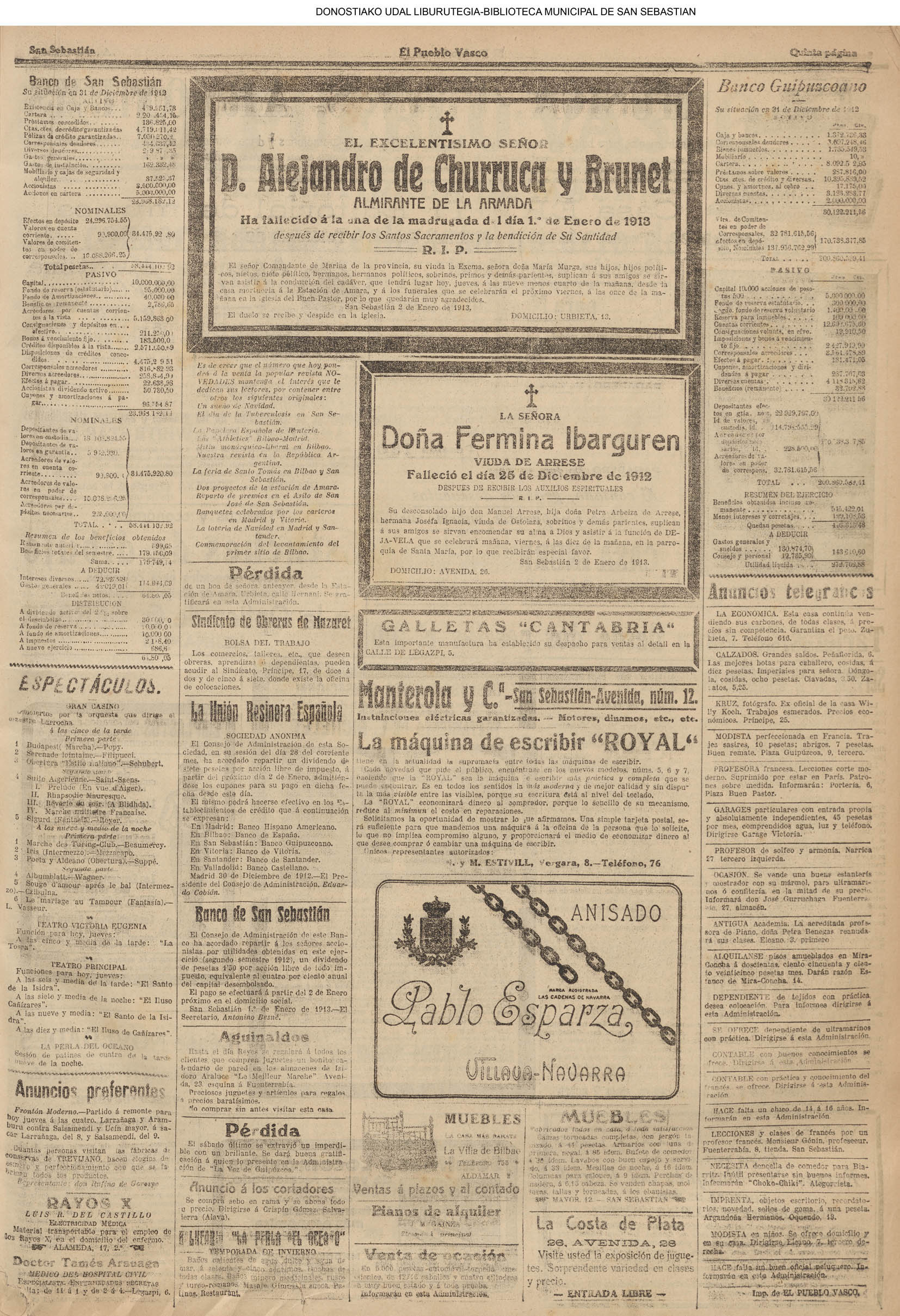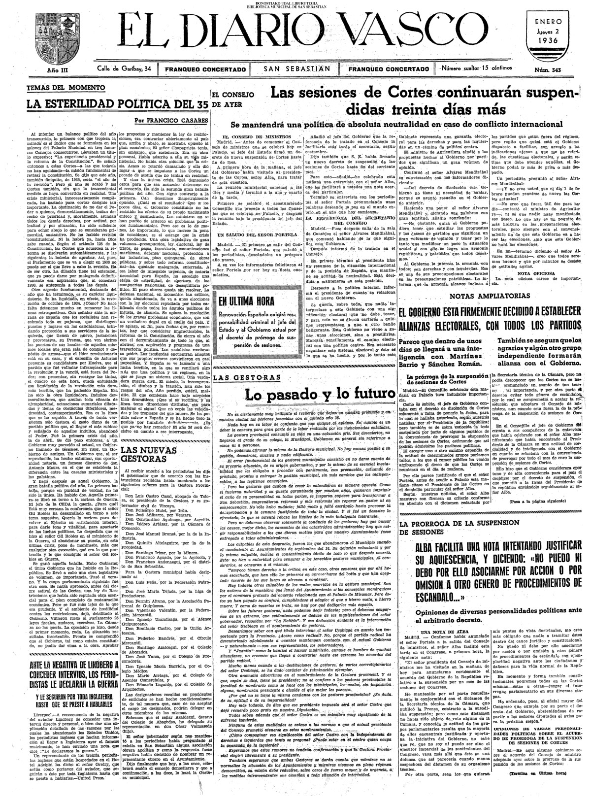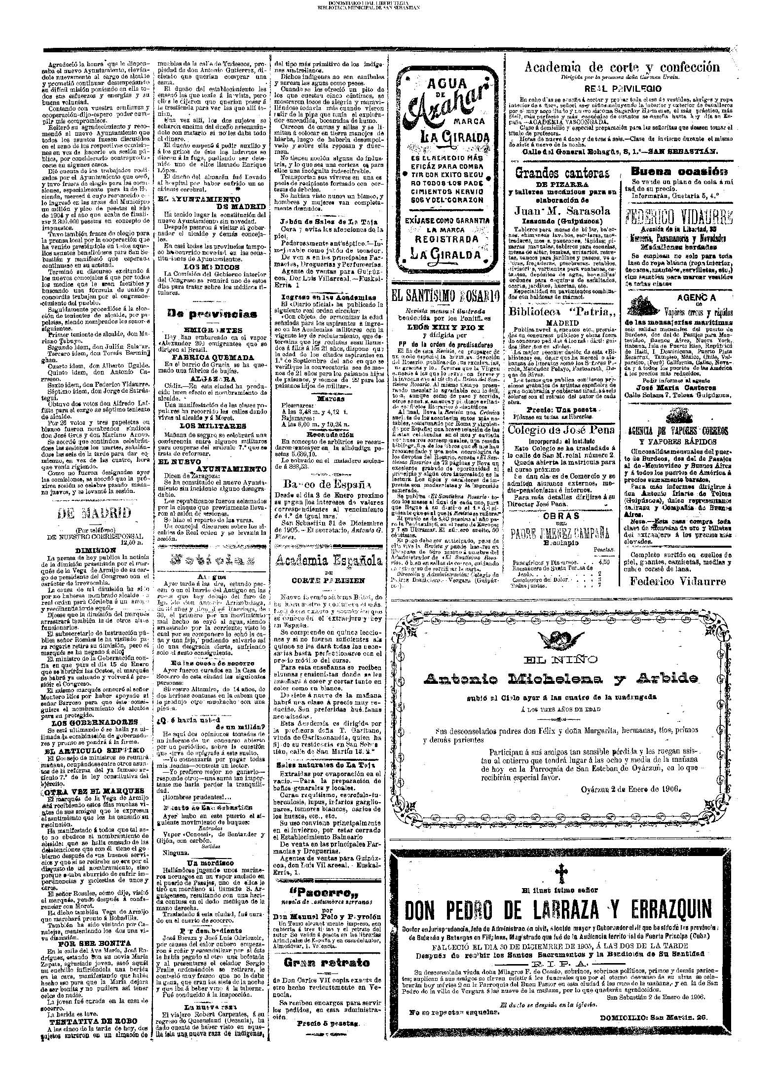 (01)(PORTADA)-¡1908!.-..-EL PRESUPUESTO DE SAN SEBASTIÁN(!!!!).-..-AYUNTAMIENTO. Sesión del día 31 de diciembre de 1907.- (02).AYUNTAMIENTO. Sesión del día 31 de diciembre de 1907.(cont.)-NOTICIAS.-....... (03).BARCELONA. Otra bomba....(04).LA CONSTANCIA(01/01)-----------------------------------------------------(01)(PORTADA)-...-Frontón Moderno.-....-NOTAS MUNICIPALES.La sesión de ayer.-.... (02).-NOTAS MUNICIPALES.La sesión de ayer(cont.)-...-El terrorismo en Barcelona....(03).(04) EL CORREO DE GUIPÚZCOA(01/01)-------------------------------------------------(01)(PORTADA)-CRÓNICA.-....-Bellas Artes.-...-Los atentados en Barcelona.-....-EN EL MUNICIPIO.La crisis de los pescadores.- (02).-EN EL MUNICIPIO.La crisis de los pescadores.-En la Casa Consistorial. La sesión de ayer.-(03).(04)EL PUEBLO VASCO(01/01)--------------------------------------------------(01)(PORTADA)-La votación de los ingresos.-....-El Terrorismo.Otra bomba en Barcelona.-bellas Artes(El concierto de ayer).-EN MOTRICO.Un hombre muerto.-ECOS DE SOCIEDAD.-...-LAS CORPORACIONES. Las tardes del Municipio.-(02).-LAS CORPORACIONES. Las tardes del Municipio.(cont.)-...... |