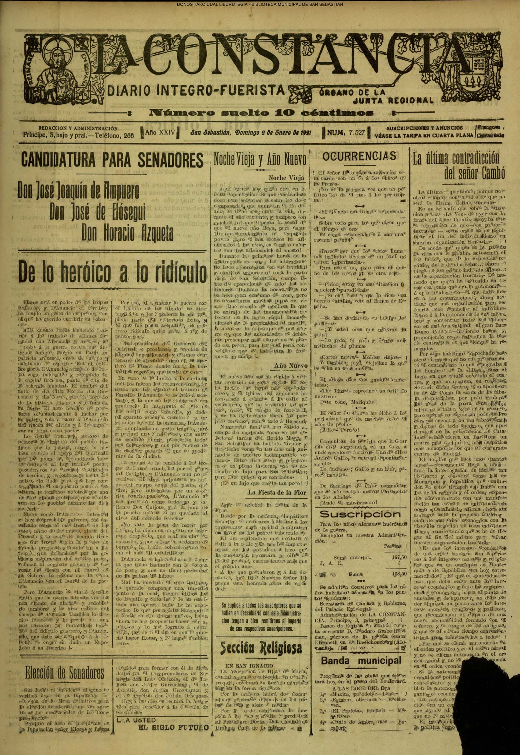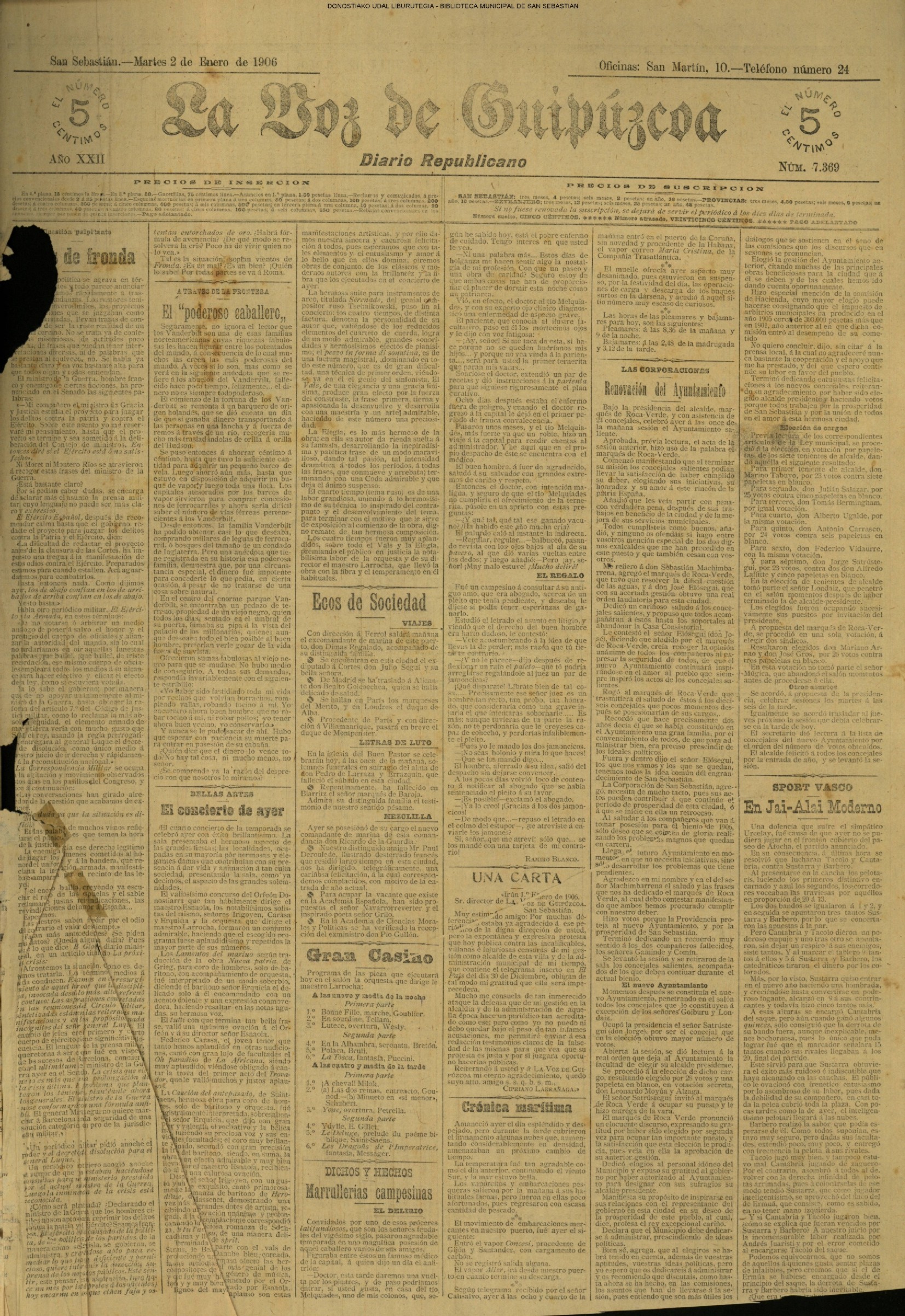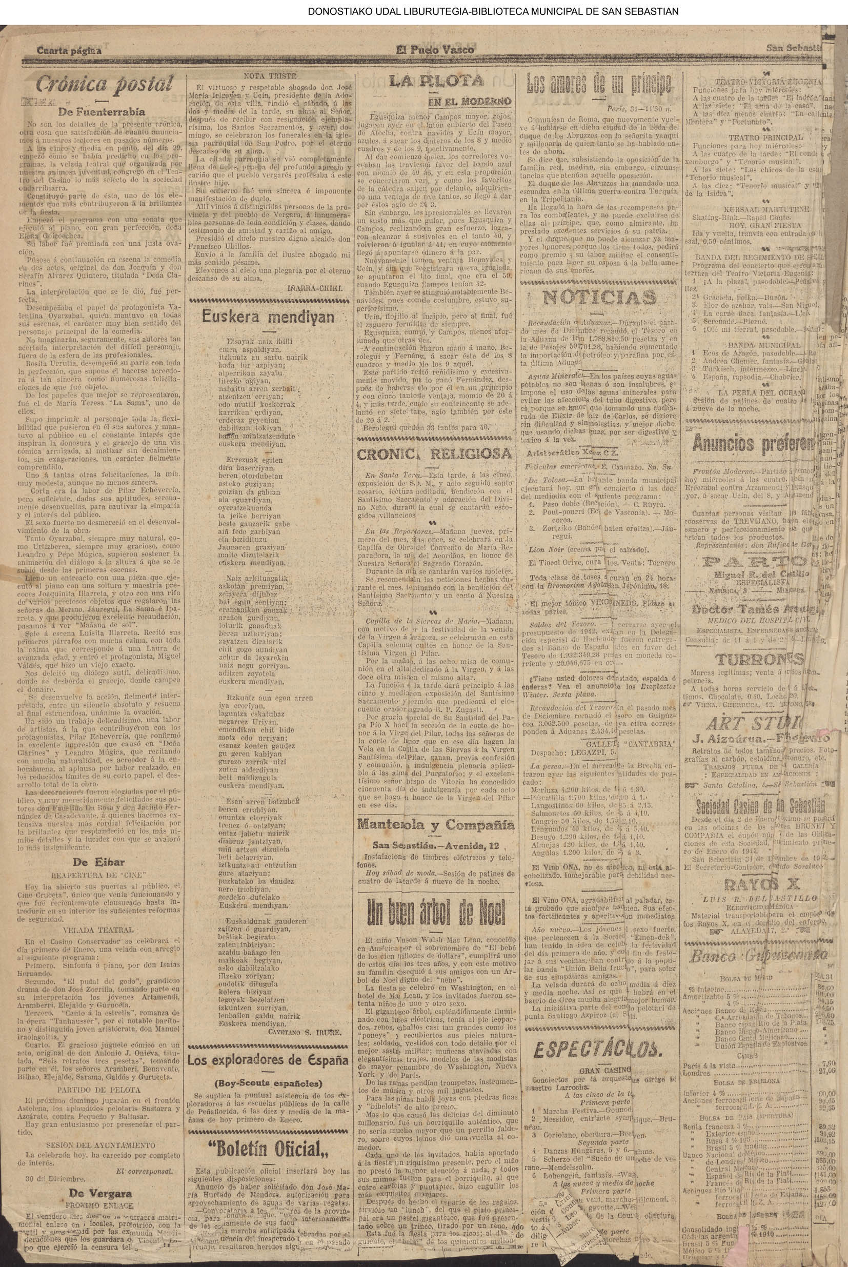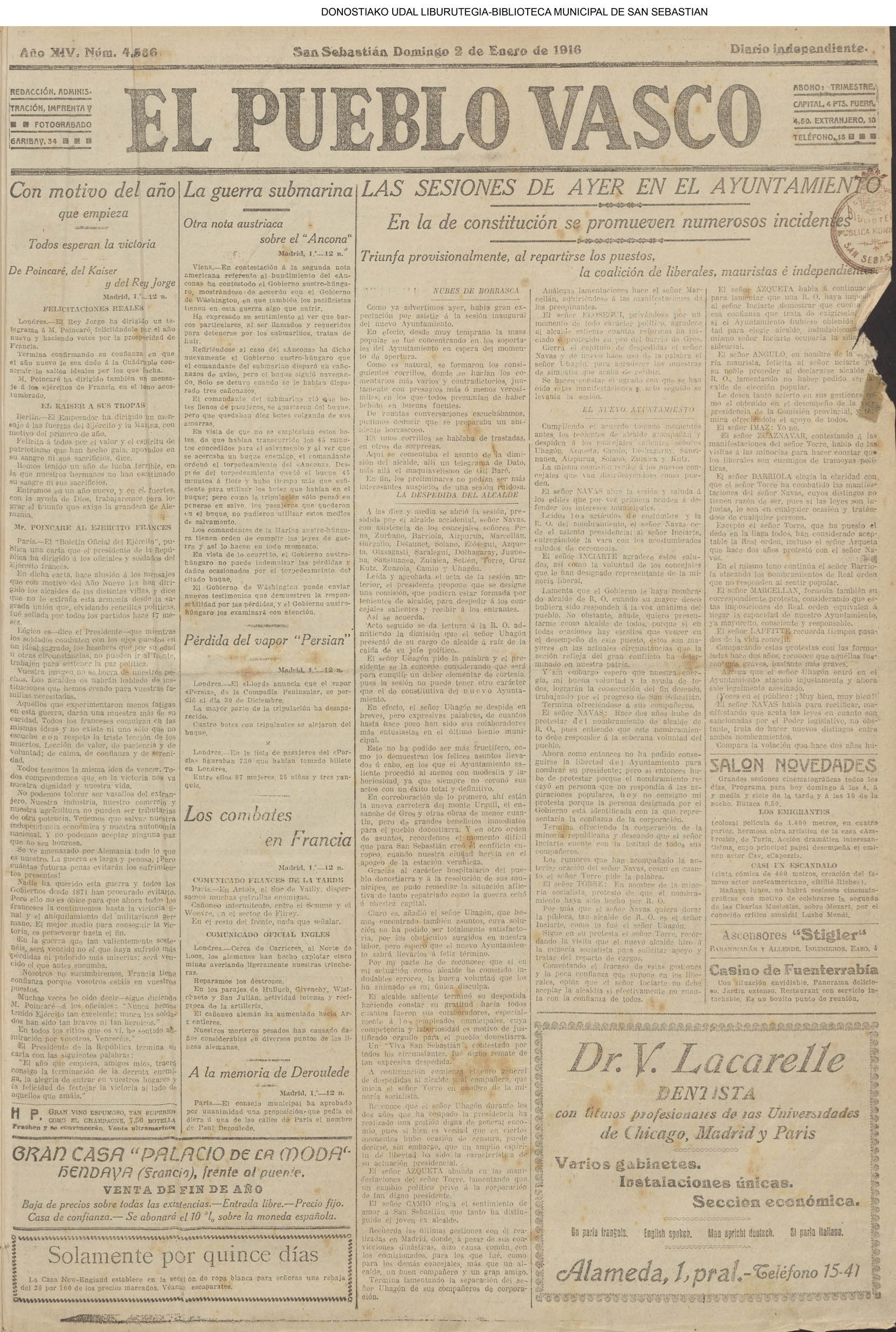 (01)(PORTADA)-¡1908!.-..-EL PRESUPUESTO DE SAN SEBASTIÁN(!!!!).-..-AYUNTAMIENTO. Sesión del día 31 de diciembre de 1907.- (02).AYUNTAMIENTO. Sesión del día 31 de diciembre de 1907.(cont.)-NOTICIAS.-....... (03).BARCELONA. Otra bomba....(04).LA CONSTANCIA(01/01)-----------------------------------------------------(01)(PORTADA)-...-Frontón Moderno.-....-NOTAS MUNICIPALES.La sesión de ayer.-.... (02).-NOTAS MUNICIPALES.La sesión de ayer(cont.)-...-El terrorismo en Barcelona....(03).(04) EL CORREO DE GUIPÚZCOA(01/01)-------------------------------------------------(01)(PORTADA)-CRÓNICA.-....-Bellas Artes.-...-Los atentados en Barcelona.-....-EN EL MUNICIPIO.La crisis de los pescadores.- (02).-EN EL MUNICIPIO.La crisis de los pescadores.-En la Casa Consistorial. La sesión de ayer.-(03).(04)EL PUEBLO VASCO(01/01)--------------------------------------------------(01)(PORTADA)-La votación de los ingresos.-....-El Terrorismo.Otra bomba en Barcelona.-bellas Artes(El concierto de ayer).-EN MOTRICO.Un hombre muerto.-ECOS DE SOCIEDAD.-...-LAS CORPORACIONES. Las tardes del Municipio.-(02).-LAS CORPORACIONES. Las tardes del Municipio.(cont.)-...... |