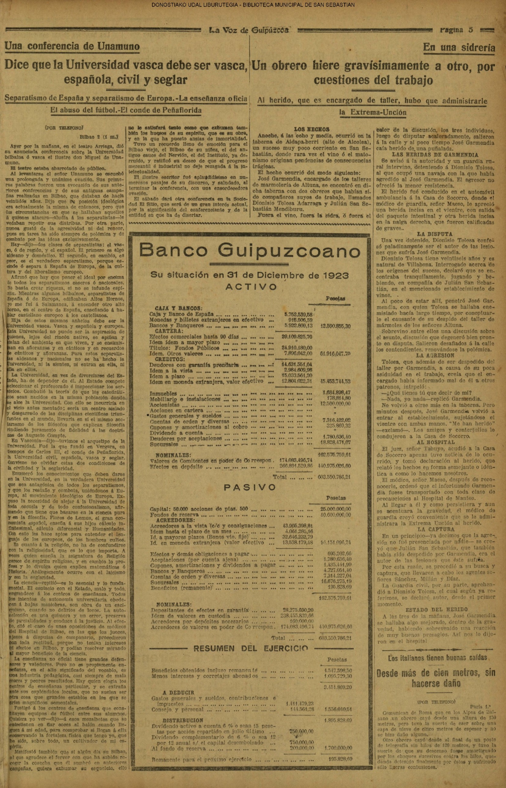 (1924) EN UNA SIDRERÍA - Un obrero hiere gravísimamente a otro por cuestiones del trabajo (La Voz de Guipúzcoa)(El Pueblo Vasco)(El Pais Vasco)(La Constancia) |