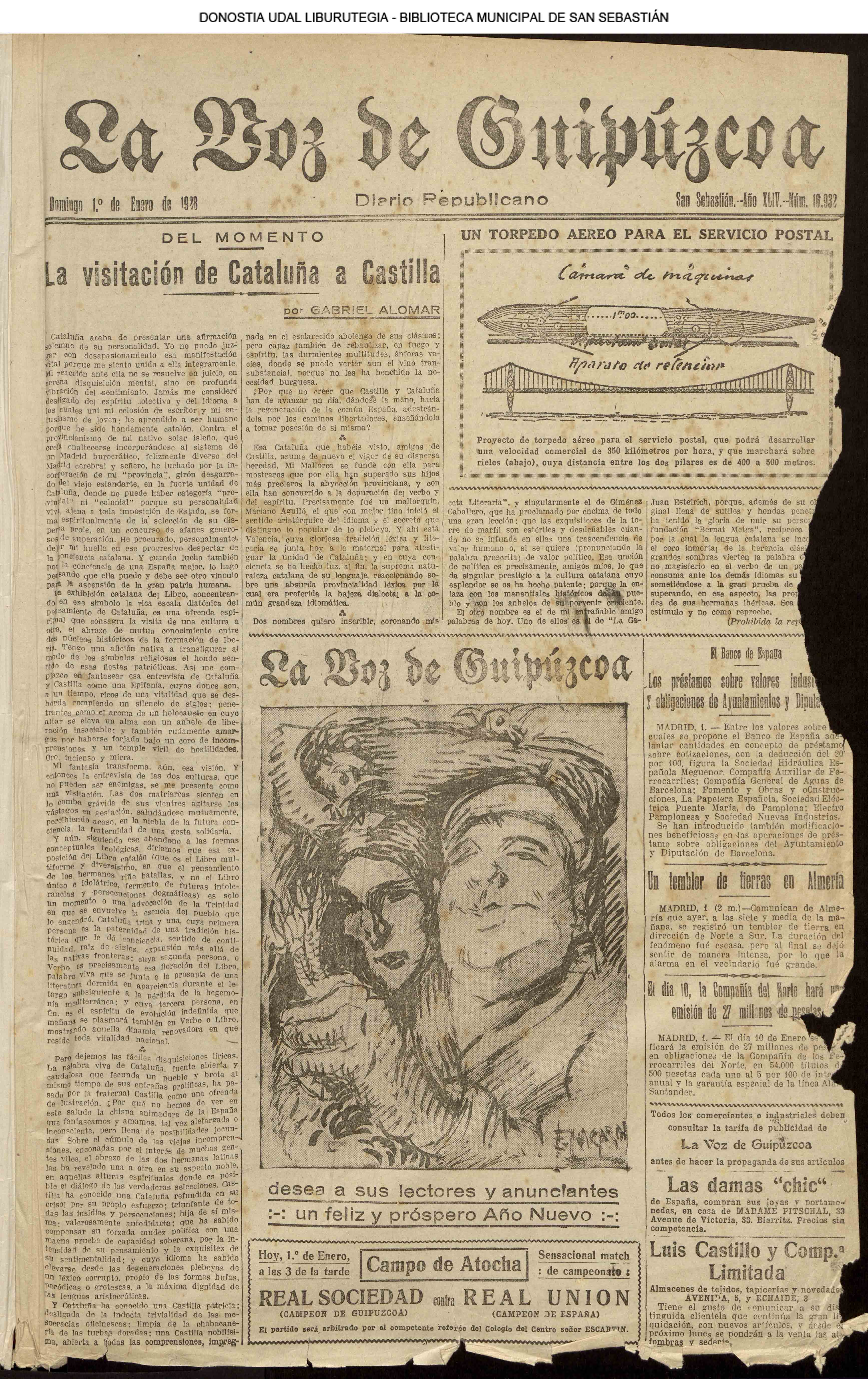 #La Voz de Guipúzcoa: diario republicano (0001.pdf) @ - Por el prestigio de nuestra Ciudad.- San Sebastián, no.(pg.003)(!!!!) @ - Temas locales.- El orfeonismo ambiente (pg.004) @ - La suspensión del match Real Sociedad - F.C. Barcelona.- Dio origen a desagradables incidentes |