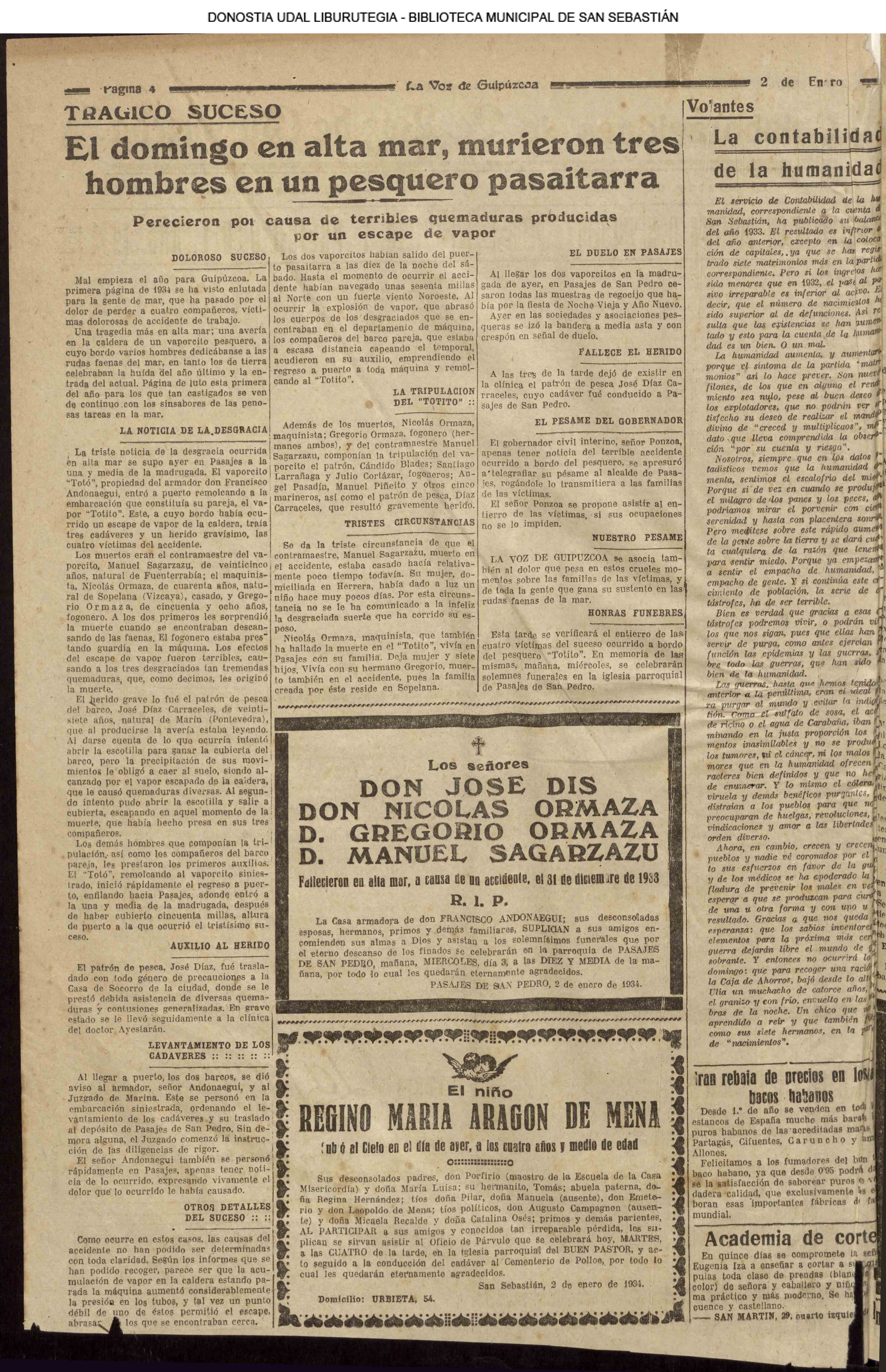 | @ -AL VUELO.- El día oficial fue más movido que de costumbre. En la Diputación, una nutrida comisión de harineros estuvo a visitar al presidente, para ocuparse del impuesto de las harinas; en el Ayuntamiento, se reunieron los técnicos para acordar el estudio de la intensificación del alumbrado en algunos paseos y en el extrarradio de la población; varios concejales estuvieron de visita en el Gobierno civil y también por la noche se reunió la Junta de la Feria de Industrias del Mar. Como se ve, hubo algún movimiento y los resultados van detallados en las correspondientes secciones. El gran pianista Iturbi dio una magna audición ante numerosa y selecta concurrencia, en nuestro primer coliseo, escuchando calurosas y entusiastas ovaciones. En el capítulo de sucesos hay que apuntar un accidente del trabajo, ocurrido en una cantera de Igueldo, y las riñas y pendencias de costumbre en estos días, casi justificadas, aunque no sea más que para entrar en calor. LOs reyes magos anticiparon su triunfal entrada, postulando juguetes con que festejar a los niños de Fraisoro, y no sabemos de nada más, pues con el frío hasta las noticias se hielan. |