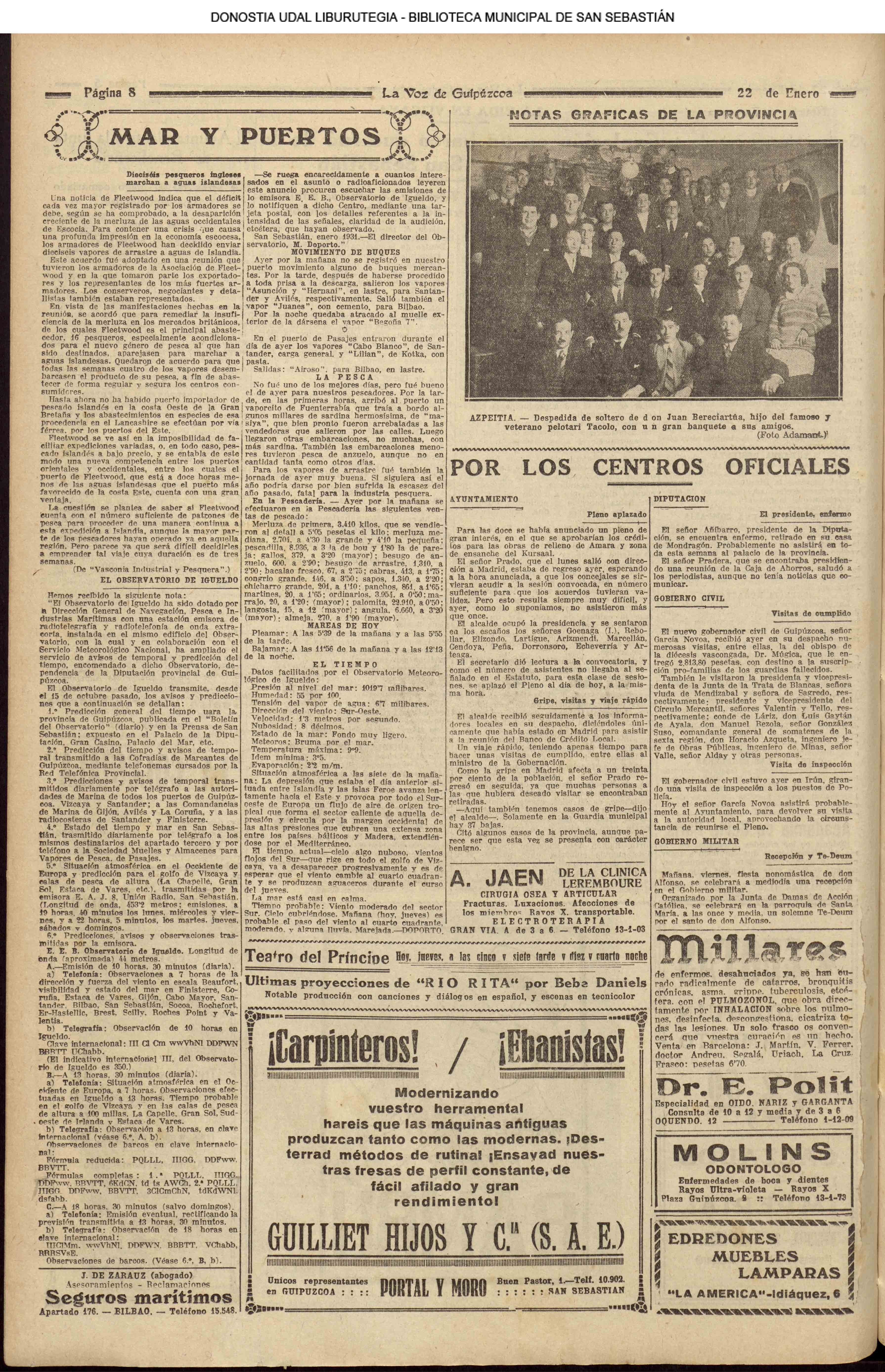 NOTICIAS - Los bueyes - En libertad - Detenidos - Escándalo - Camorra - Registro Civil - Accidente -...- En San Vicente - En el Principal - Arrollada (bº.Loyola) - Cuarto de Socorro NOTICIAS - La pesca - ... |