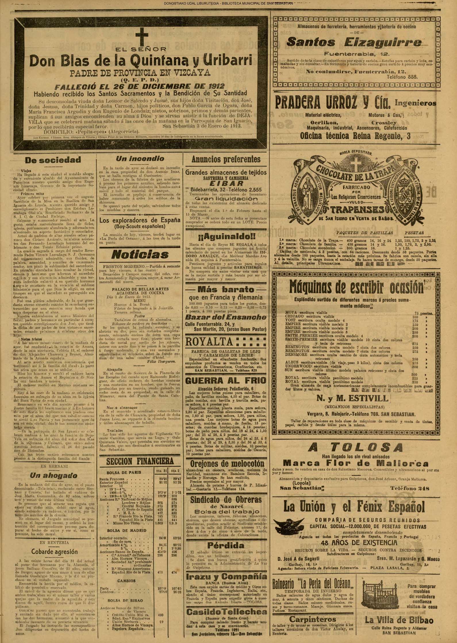 | - Fallece, de 68 años, doña Antonia Zubeldia Urcola, conocidísima alpargatera de la calle Fermín Calbetón. |