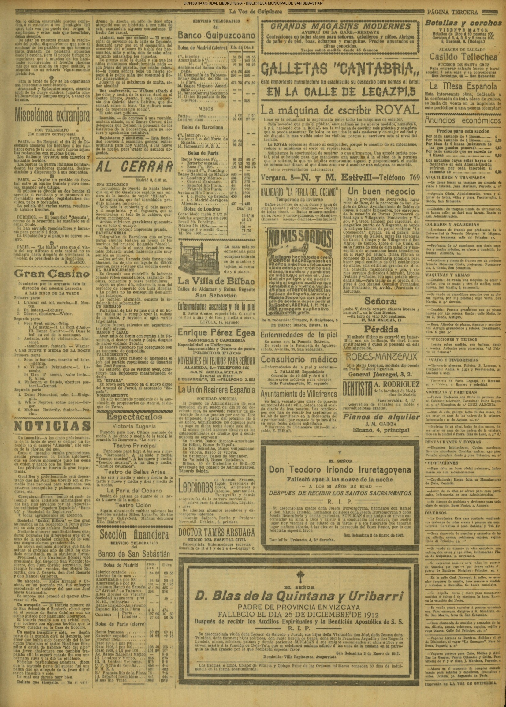 | Fallece doña Juana Iguarán, viuda de Elósegui. |