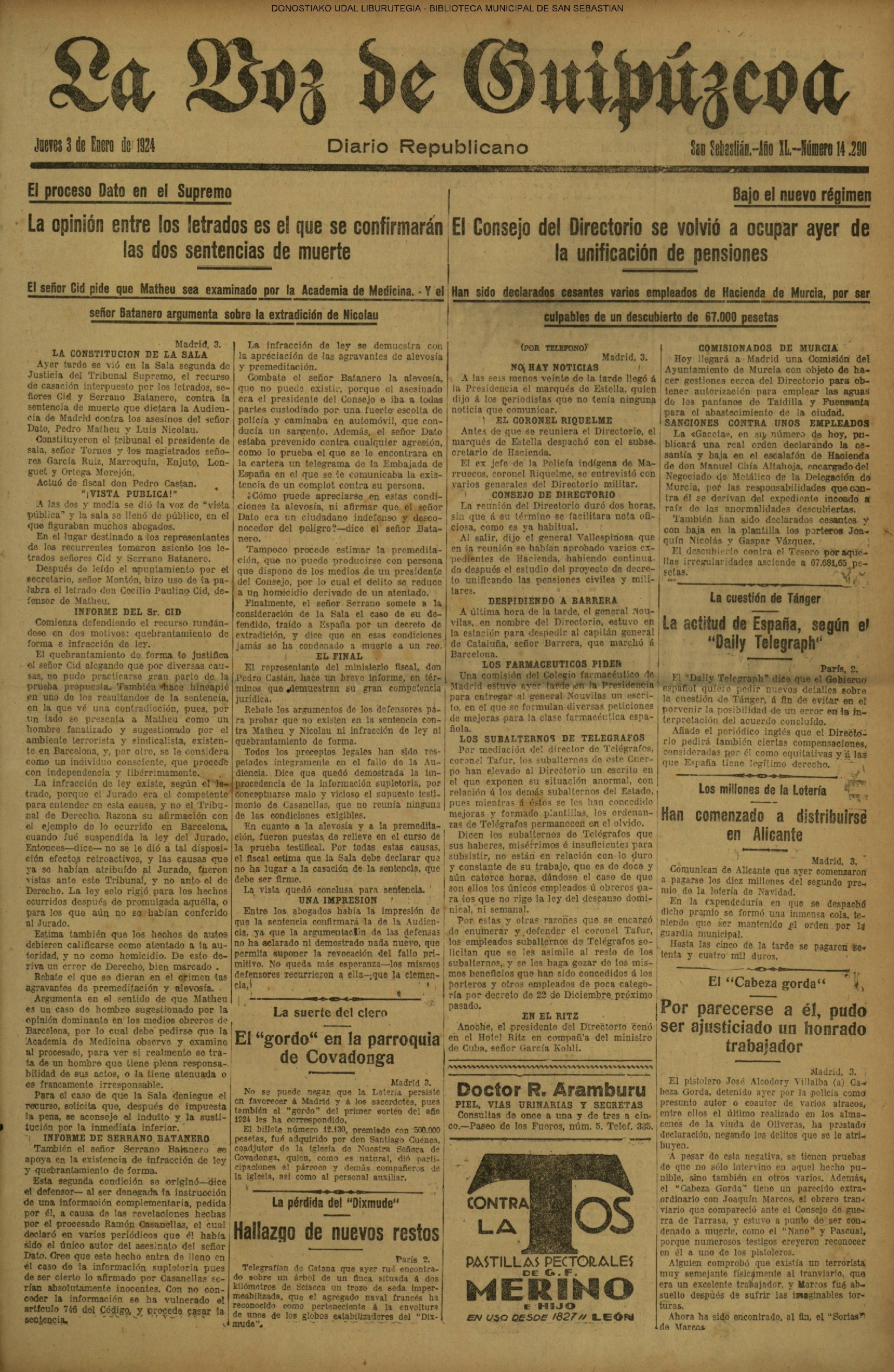 Dictadura de Primo de Rivera Alcalde : José Antonio Begiristain, 1927-1929 |