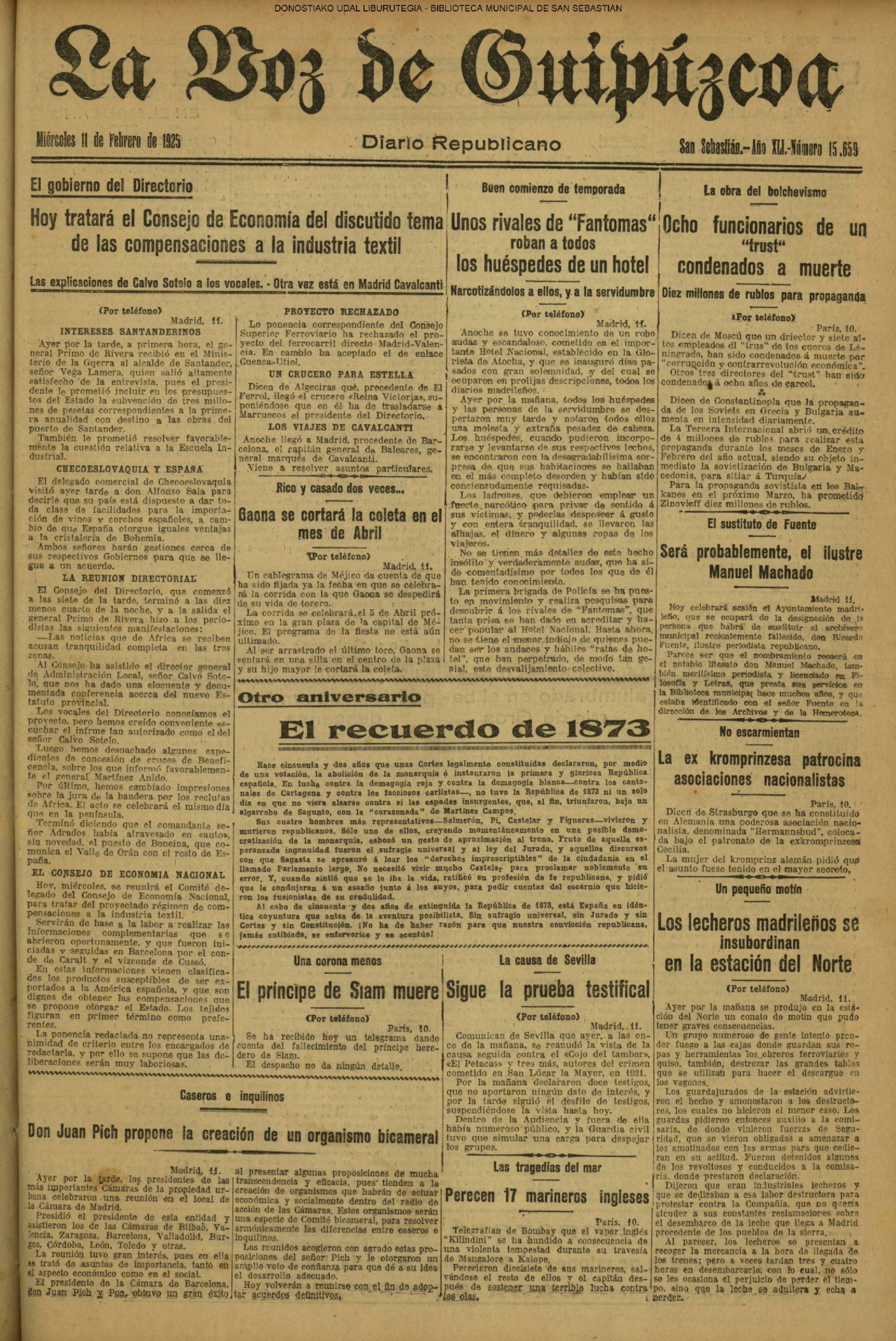 1925![]() Dictadura de Primo de Rivera Alcalde: José Elosegi, 1925-1927 | ******************************* |