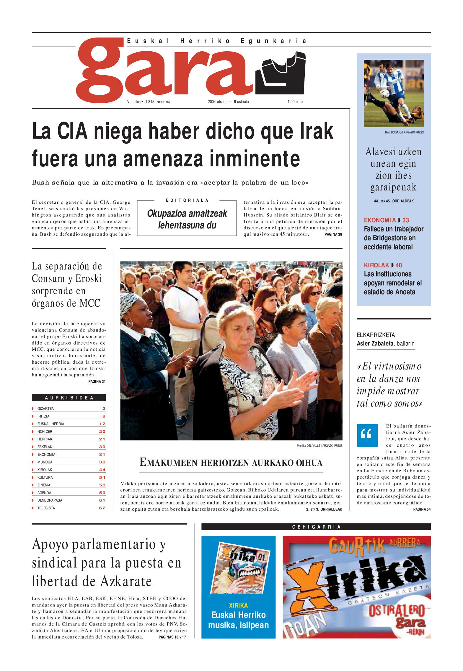 GARA La CIA niega haber dicho que Irak fuera una amenaza inminente. |