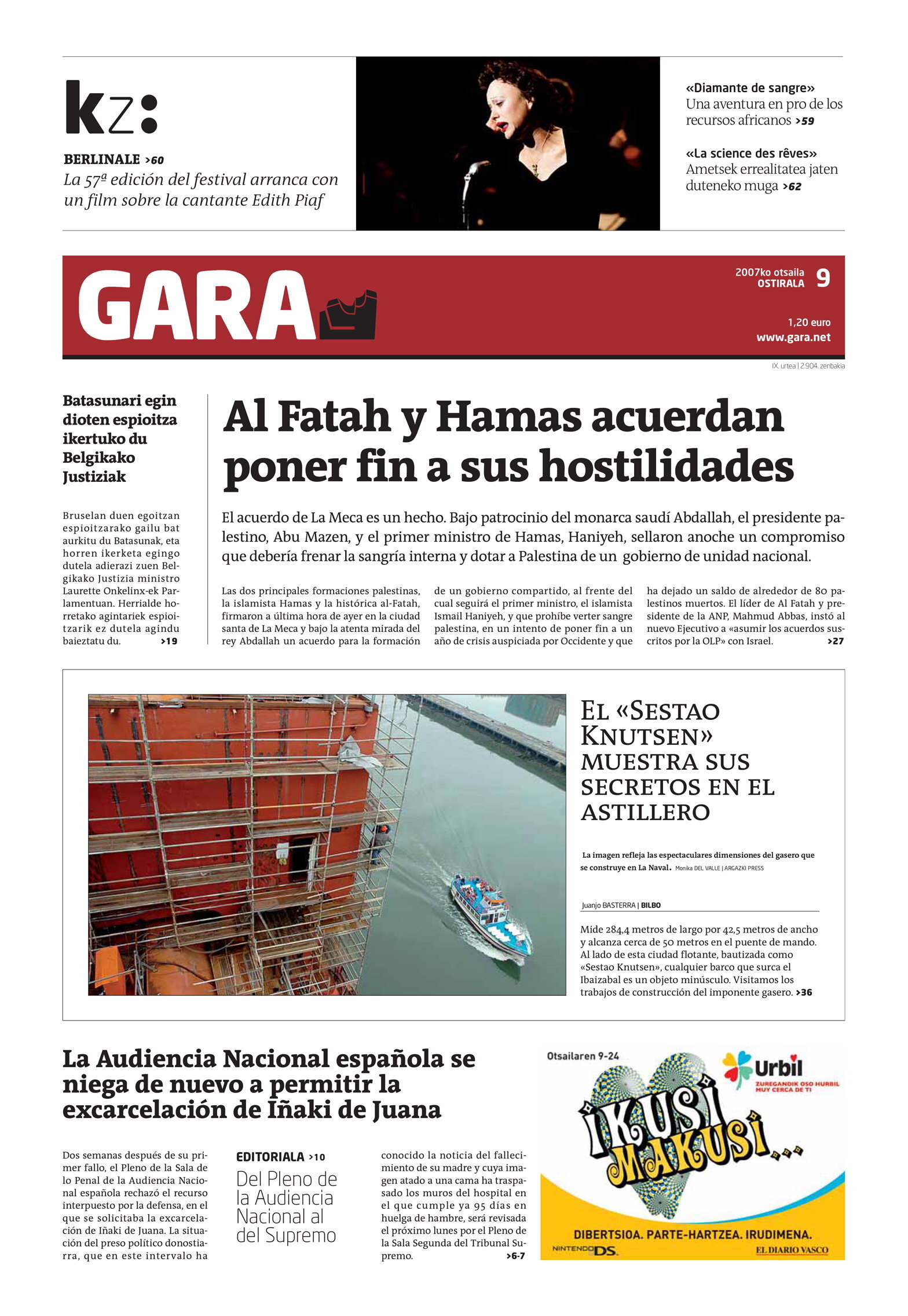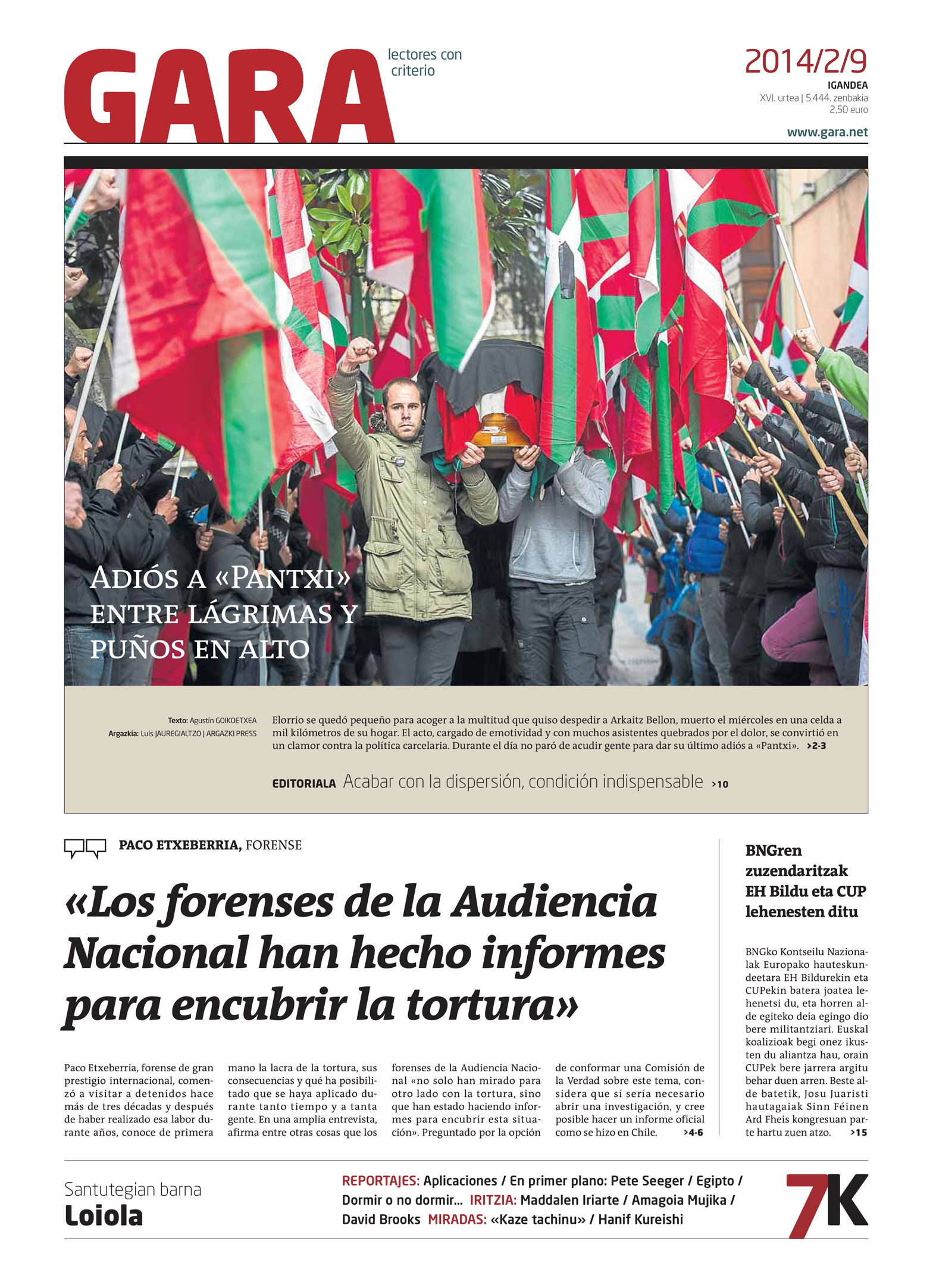 GARA "ADIÓS A "PANTXI ENTRE LÁGRIMAS Y PUÑOS EN ALTO (foto portada) // " Los forenses de la Audiencia Nacional han hecho informes para encubrir la tortura". |