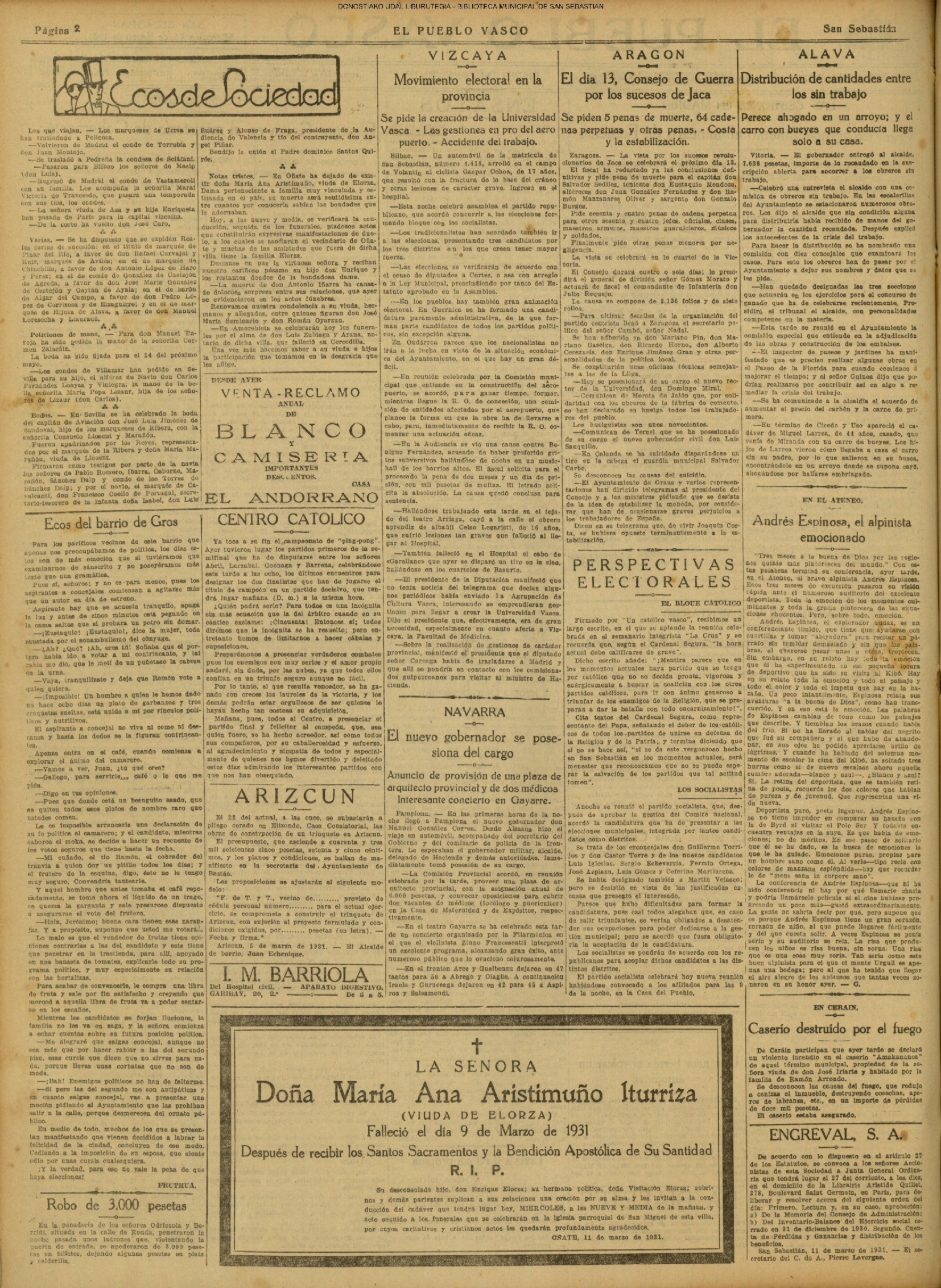 1927![]() Dictadura de Primo de Rivera Alcalde : José Antonio Begiristain, 1927-1929 |