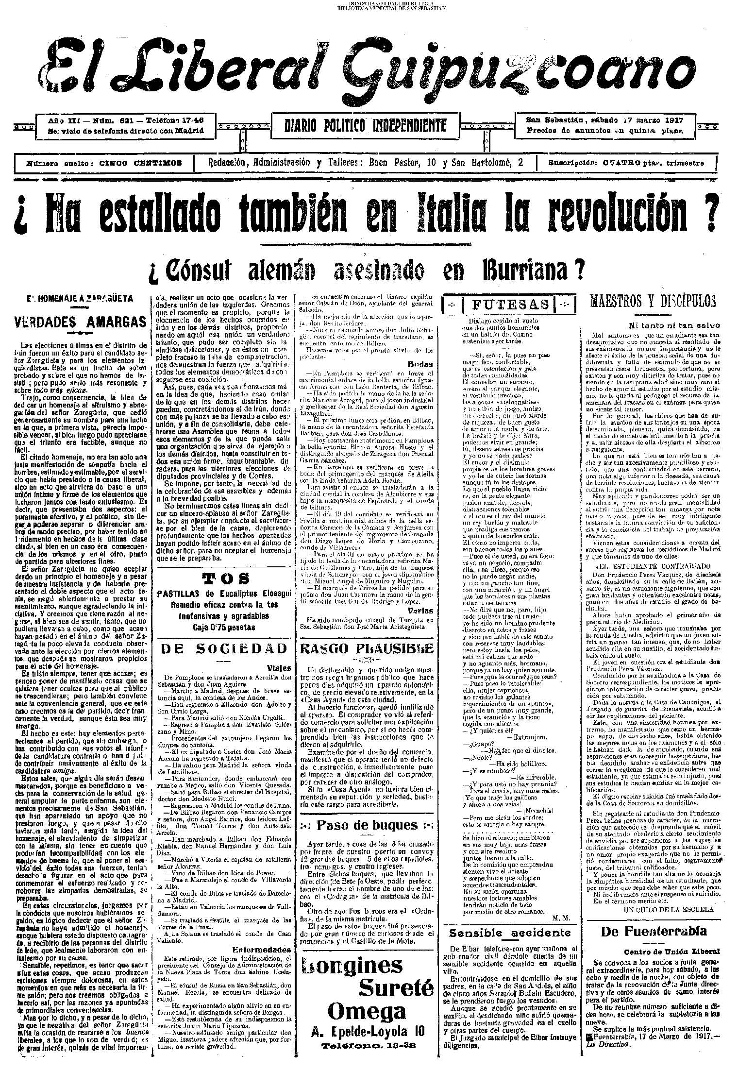 (*).- En el Boulevard hubo mucha concurrencia a mediodía y la gente paseo en el sitio del verano. Por la tarde, los paseos, concurridísimos - ¡es claro, no había ni football, ni frontón!-, y tanto las películas del Principal como el concierto Sacro de Bellas Artes "arrastraron" mucho público.