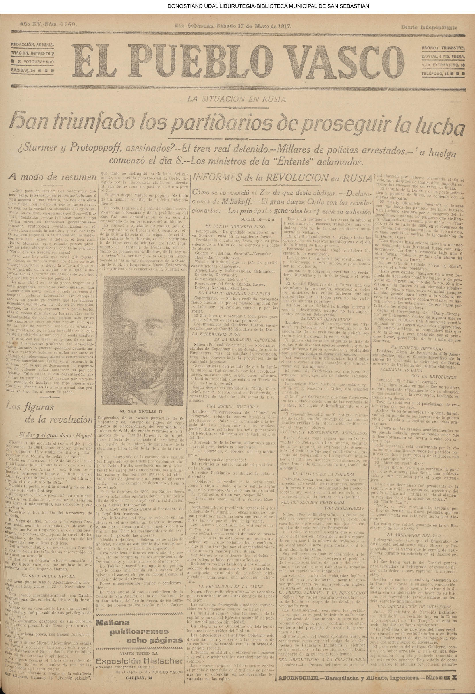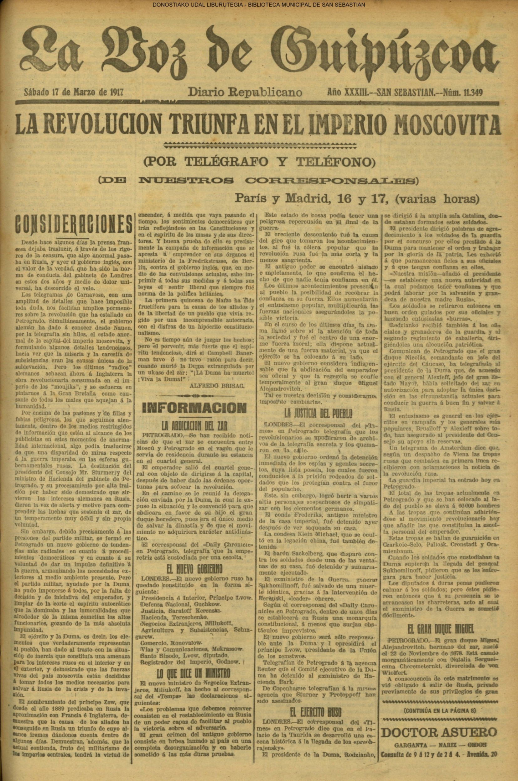 El zar de Rusia es detenido por los revolucionarios .- El movimiento revolucionario va ganando terreno.