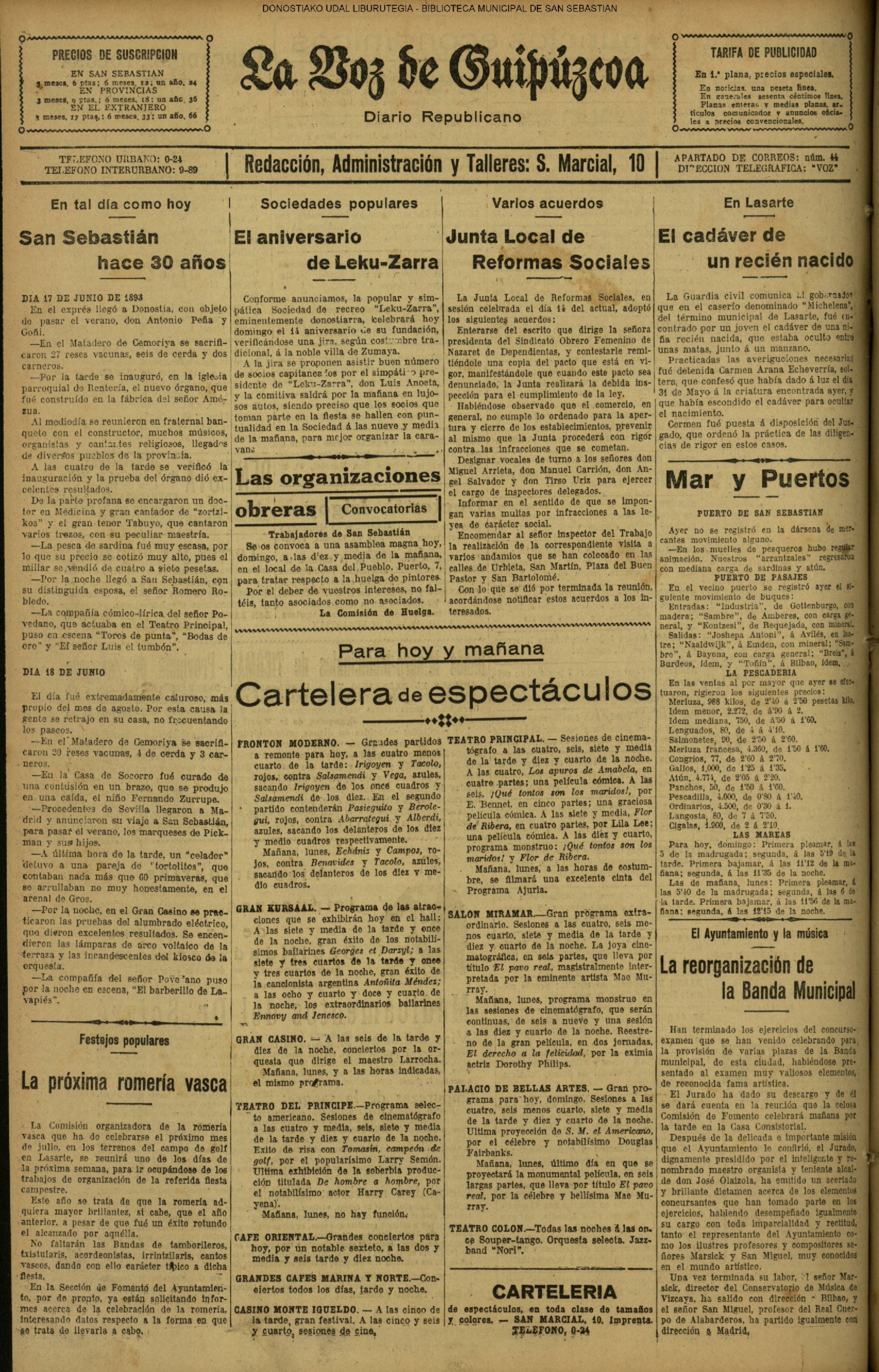 (*).- AL VUELO : Calles, paseos, jardines, cafés, cines y teatros se vieron concurridísimos, y no digamos nada del Circo Krone, donde irrumpió por la tarde media provincia. Los dos conciertos del Boulevard estuvieron muy concurridos también, pues hubo gente para toda clase de diversiones, y en el Casino el "dancing" reunió a distinguida concurrencia, que discurrió por los salones del edificio y por su amplia terraza, disfrutando del día y de la música y pasando el tiempo muy agradablemente. La Exposición de Carteles estuvo muy concurrida. Por la noche se despidió la Compañía de la Zuffoli, que marcha a Burgos, donde licenciará a sus huestes, pues se propone descansar este verano. (*).- Un suceso en el Circo Krone # Cuando el público visitaba el parque zoológico un empleado disparó gases asfixiantes contra otro. Al oir la fuerte detonación se desmandó un elefante, sembrando todo ello el pánico entre los visitantes .- Varias señoras sufrieron accidentes. (*).- Una nueva industria. Los dulces helados "Polos" .- A mediodía, se celebró la inauguración oficial de la fábrica de dulces helados "Polos", instalada en la calle de Miramar, número 2. Asistieron representantes de la Prensa y numerosos invitados más. El dueño de esta nueva e importante industria, don Isabelo Martinez, obsequió a los concurrentes con sabrosísimos dulces helados y les mostró la magnífica instalación, en la que no se ha omitido ningún detalle. Las condiciones de higiene y salubridad son insuperables. A las tres de la tarde quedó abierto el establecimiento al público. La concurrencia de clientes fue enorme y éstos se encargaron de propagar las excelencias del nuevo producto en tal forma que se produjo una verdadera aglomeración frente al establecimiento. No parecía sino que todos se hubieran dado cita. Al atardecer, sobre todo, fue tal el gentío, que hubo necesidad de que los agentes de la autoridad se encargaran de mantener el orden, haciendo que los compradores formasen "cola" y fuesen servidos por riguroso orden de llegada. |