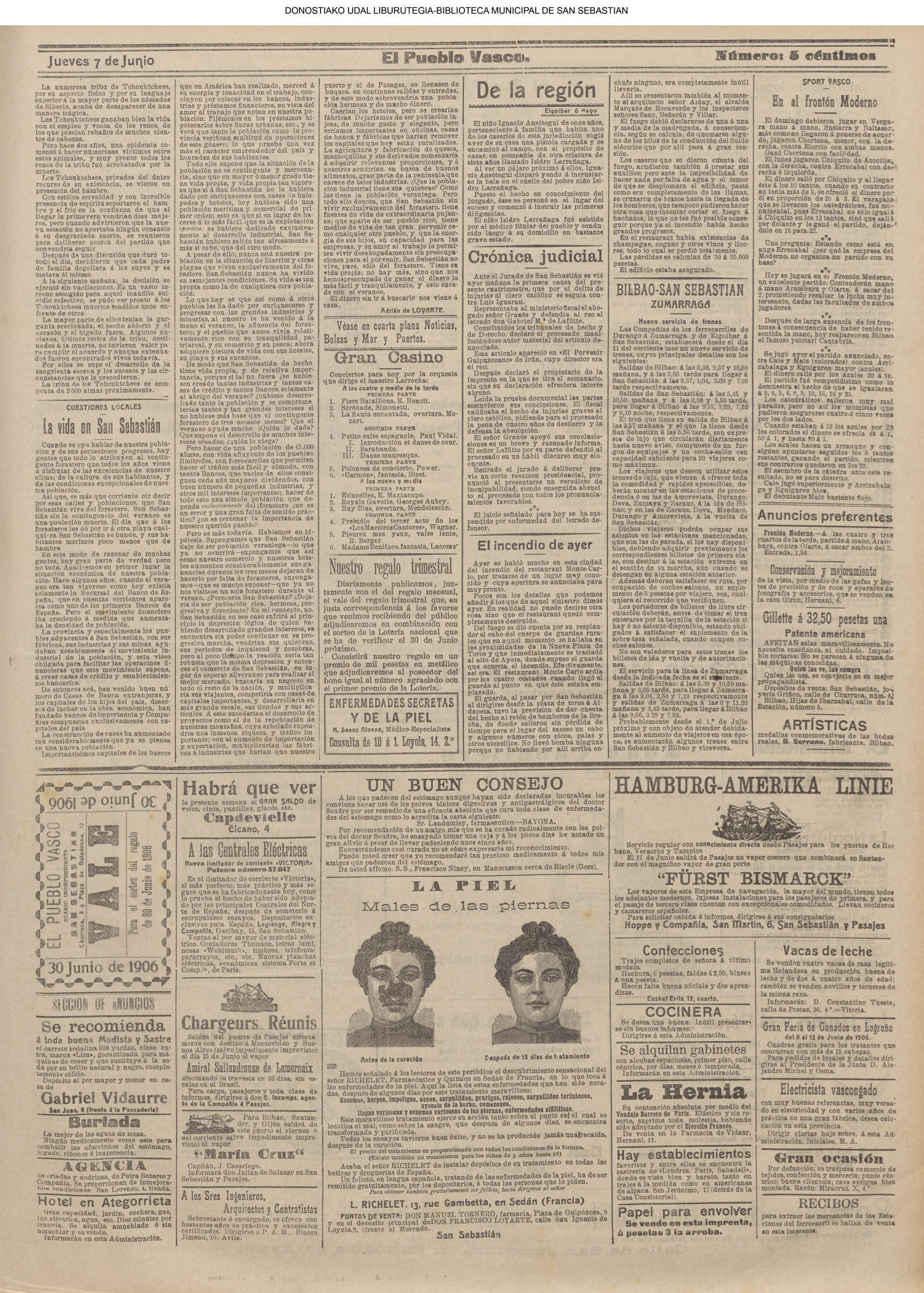 (06/06) .- PORTADA . (Santurce: asesinado un almacenista.- Incidentes en la Basílica de Begoña.....EL DIARIO VASCO, desde hoy a 35 pesetas)- p.10.(A las doce se inicia el festival en el que participarán 3.500 dantzaris de todo Euskadi. Hoy en el Velódromo de Anoeta Dantzari Eguna...).- p.13 .(SAN SEBASTIÁN : Los grupos de teatro en euskera, a escena.- Hilario Camacho estrenó público donostiarra.- HOY....).- p.14. ( SIRIMIRI : El cuidado de los jardines.- La belleza de una ciudad.- La erradicación de los perros .- Una historia de la Avenida (!!!!!!) ....).- p.15 . ( TEMAS MUNICIPALES : "Casa de la Juventud, hiper y bingo de Alza, servicio de parasoles de Ondarreta".... a debate del Pleno..".-¿Qué se entiende por dar participación a la juventud? .....-DESDE LAS KOXKAS : La regia bañista ....).- p.72 (DV.última). ( Dos fuertes explosiones en el barrio de Gros...)