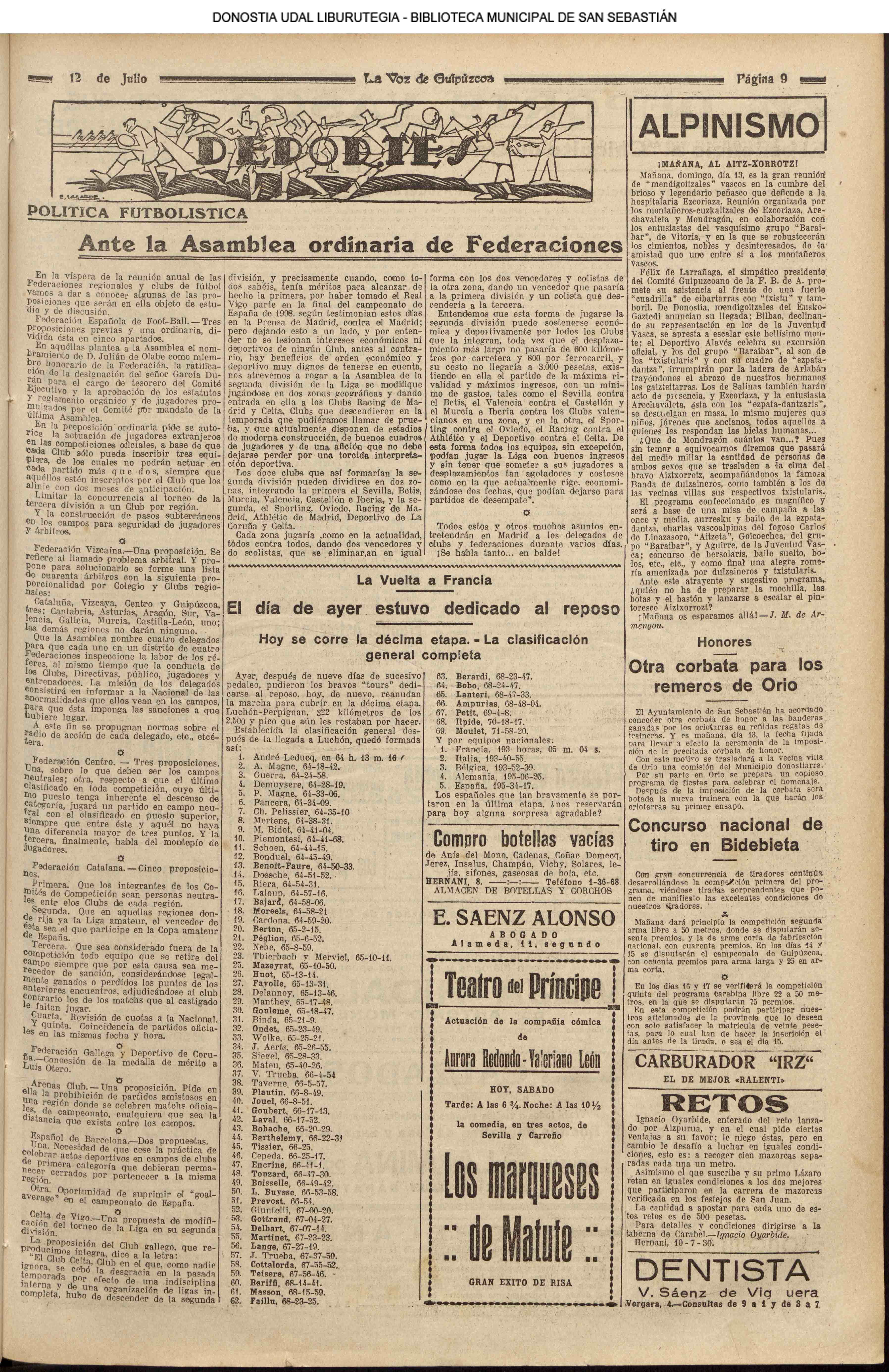 | 1944 Rafael Lataillade (1942-5-28, 1947-12-15) | (MARTES) (*).- DEPORTES # Interesante reunión preliminar de las Regatas de traineras # Orio, Fuenterrabía, Pasajes de San Pedro y San Sebastián concurrirán a la Concha # Importantes modificaciones en el Reglamento # Ampliación hasta 25.000 pesetas el primer premio #¿ Se conseguirá la representación única donostiarra? (DV) (*).- Simpático homenaje a un gran deportista. # Amaikak Bat expresó su admiración al popularísimo Aniceto Zabala (DV)