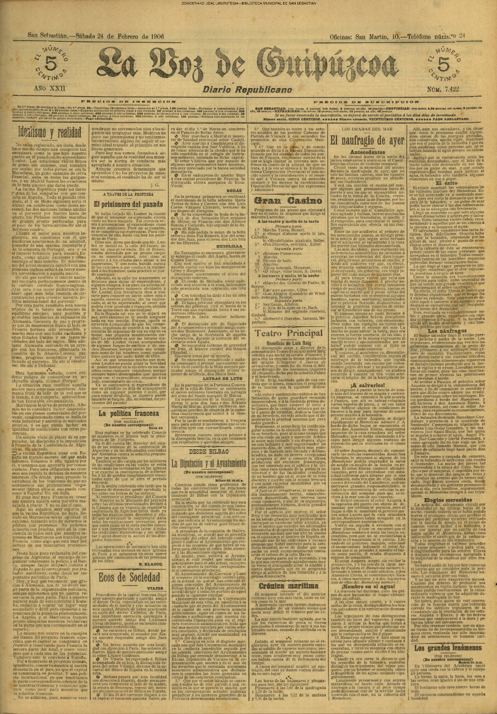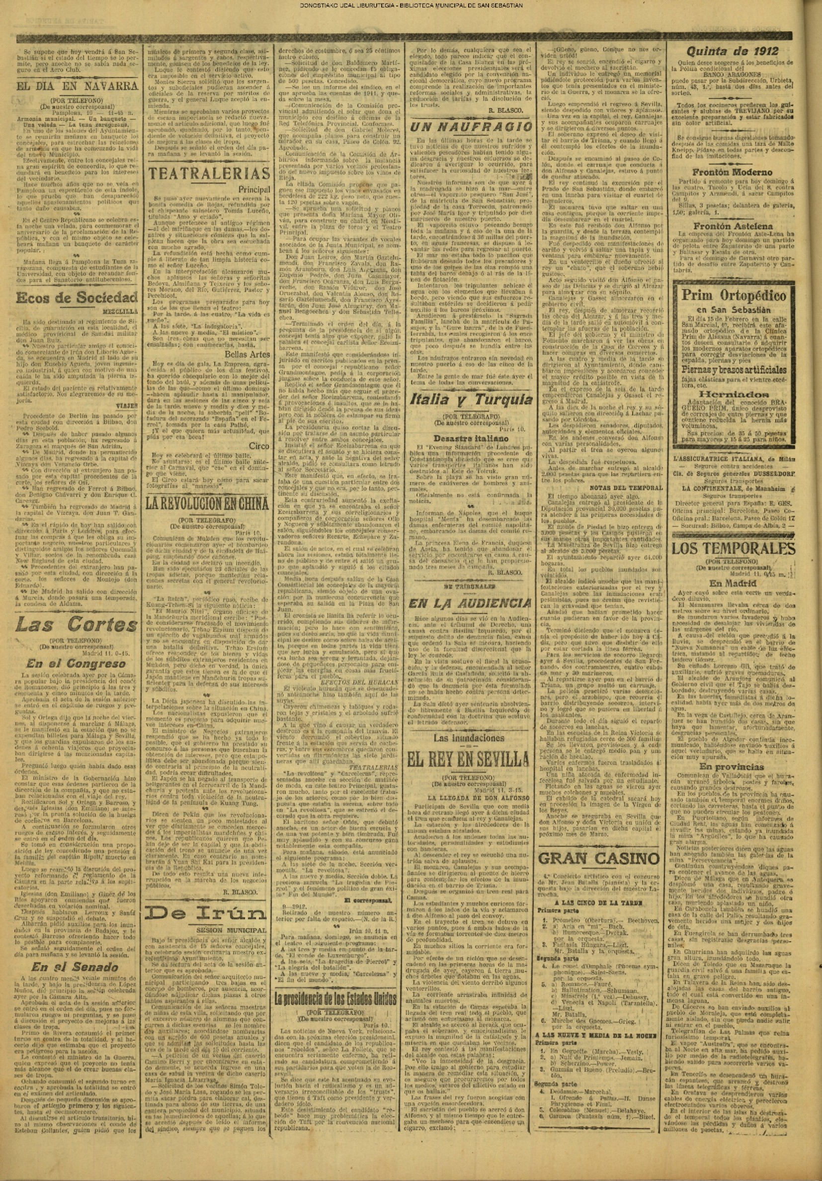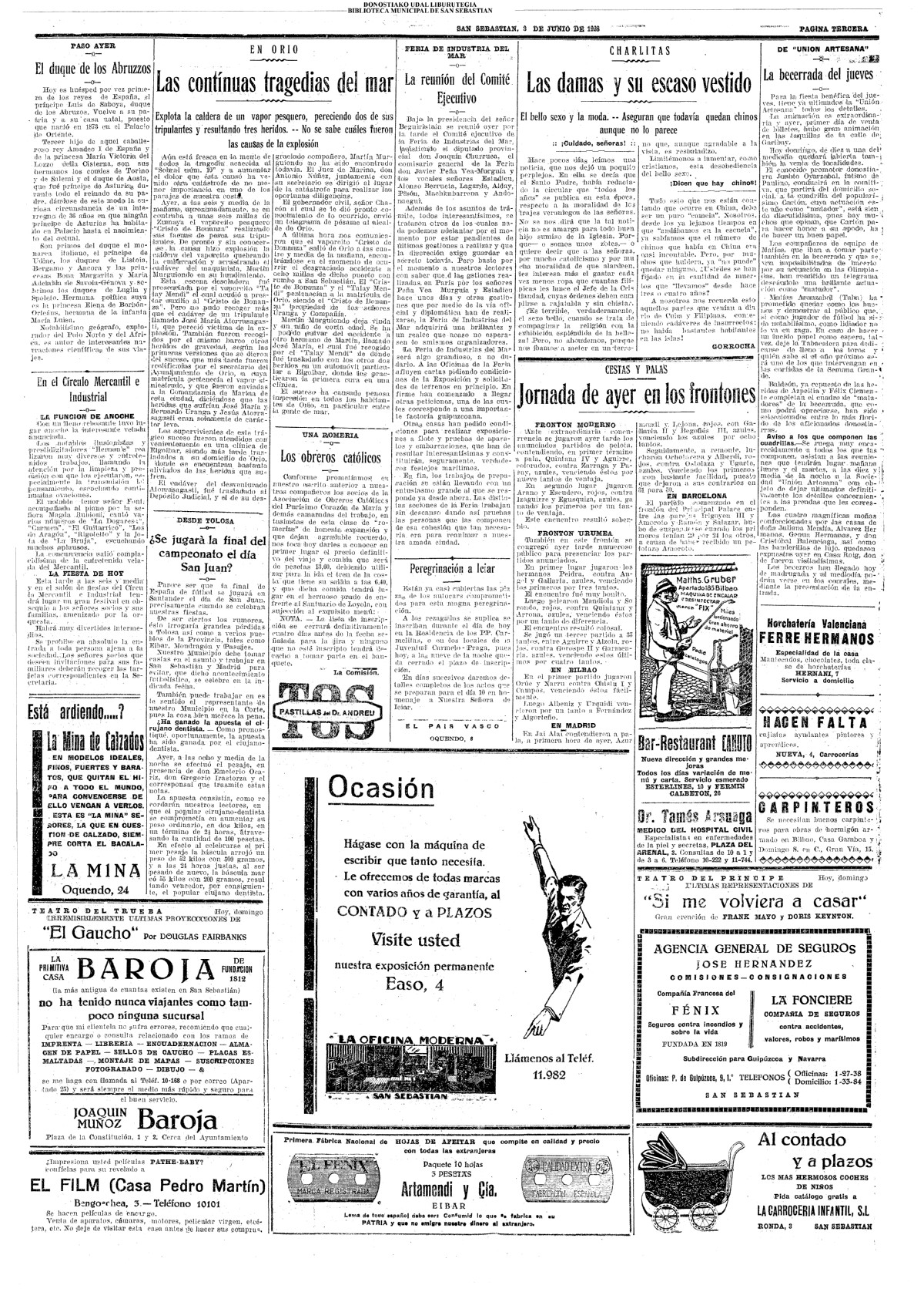 | @ - 1913 /27.02 - Se incendia por completo el Palacio de Bellas Artes, situado en la calle Euskalerria, de San Sebastián |
